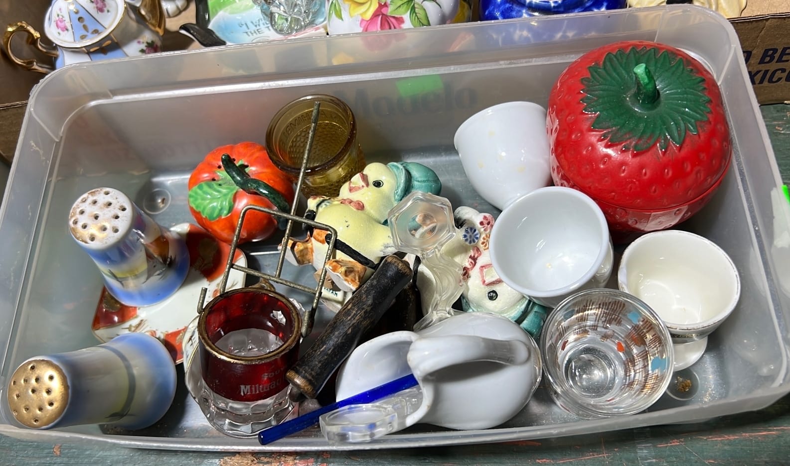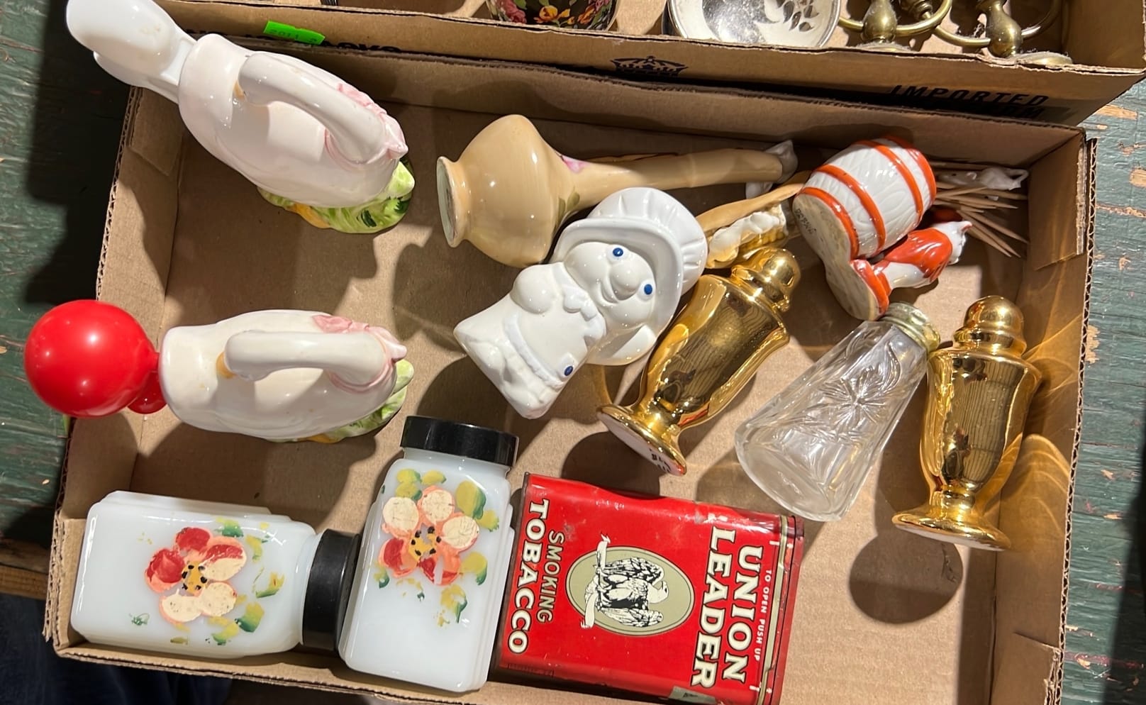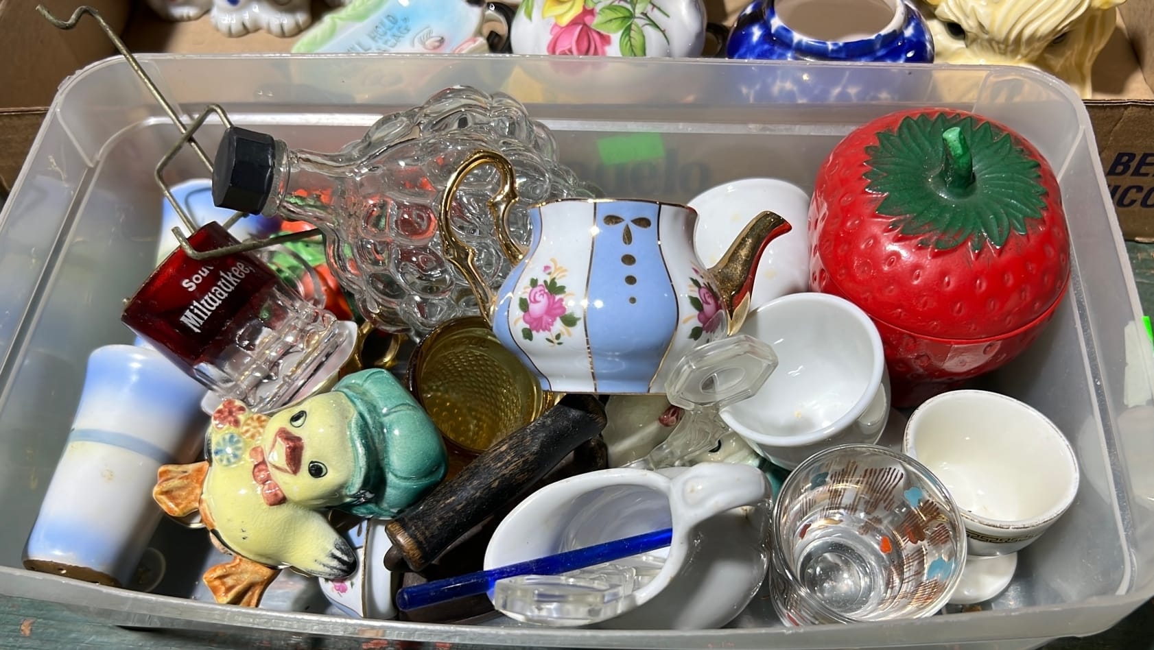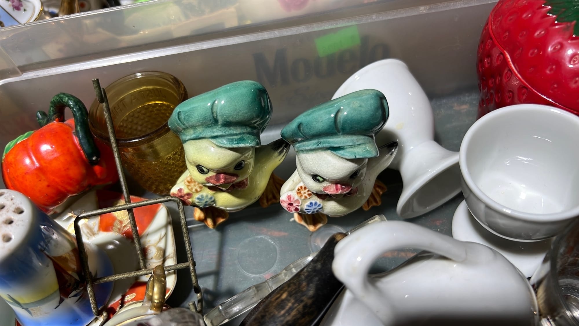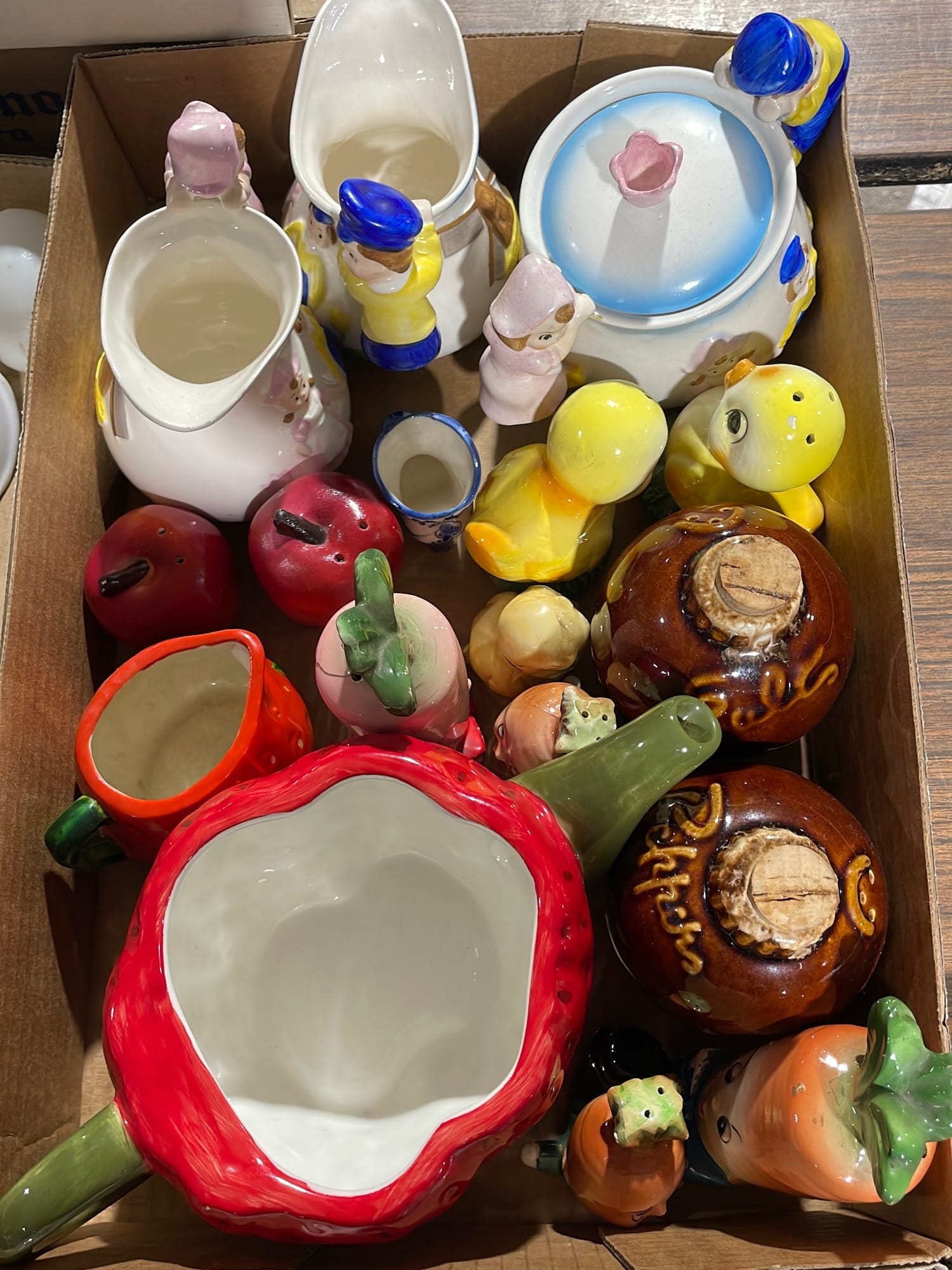 2011 Salt and pepper shakers , tobacco tin, 2- goose measuring spoon holders , tooth pick holders , cream and sugars , tea sets , miscellaneous