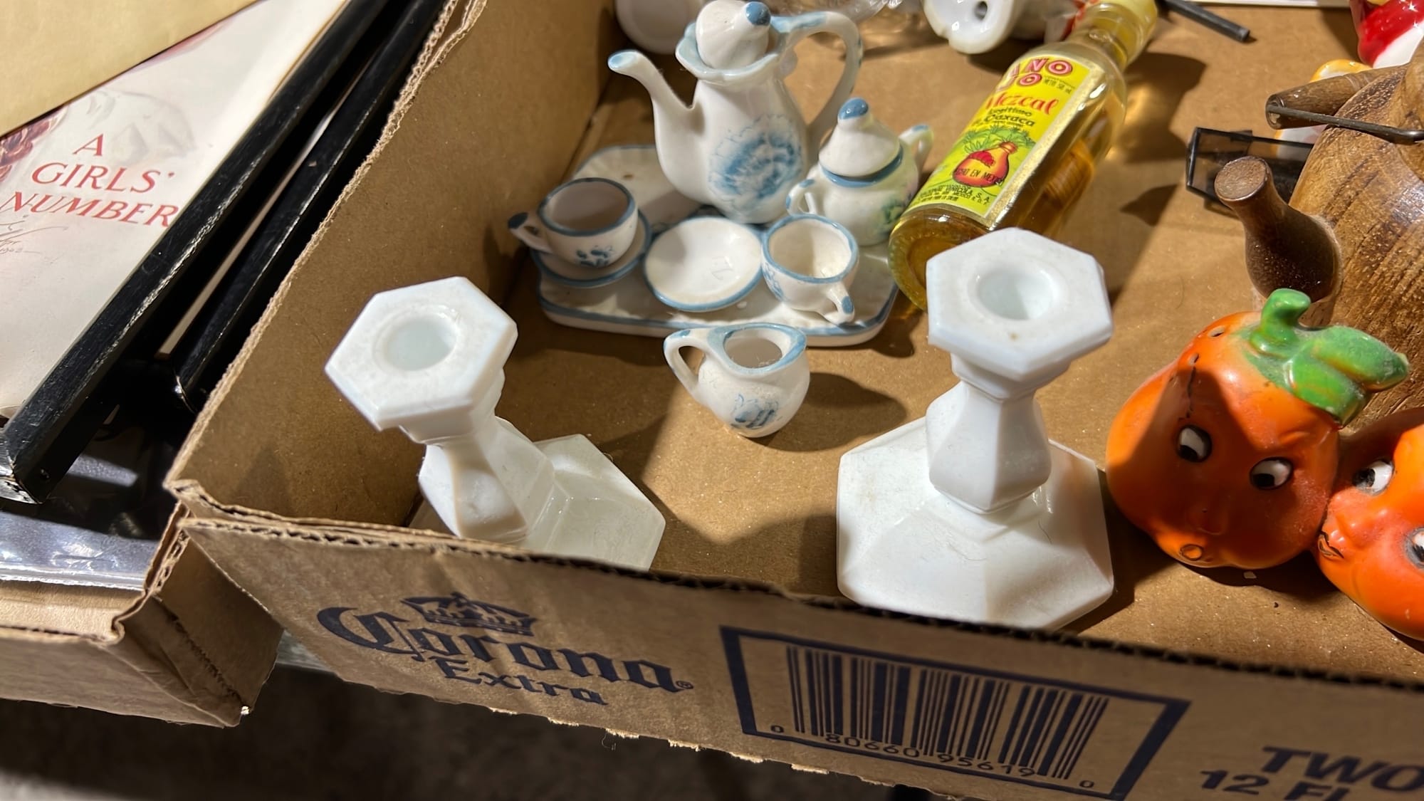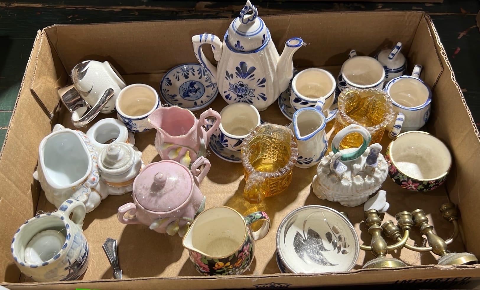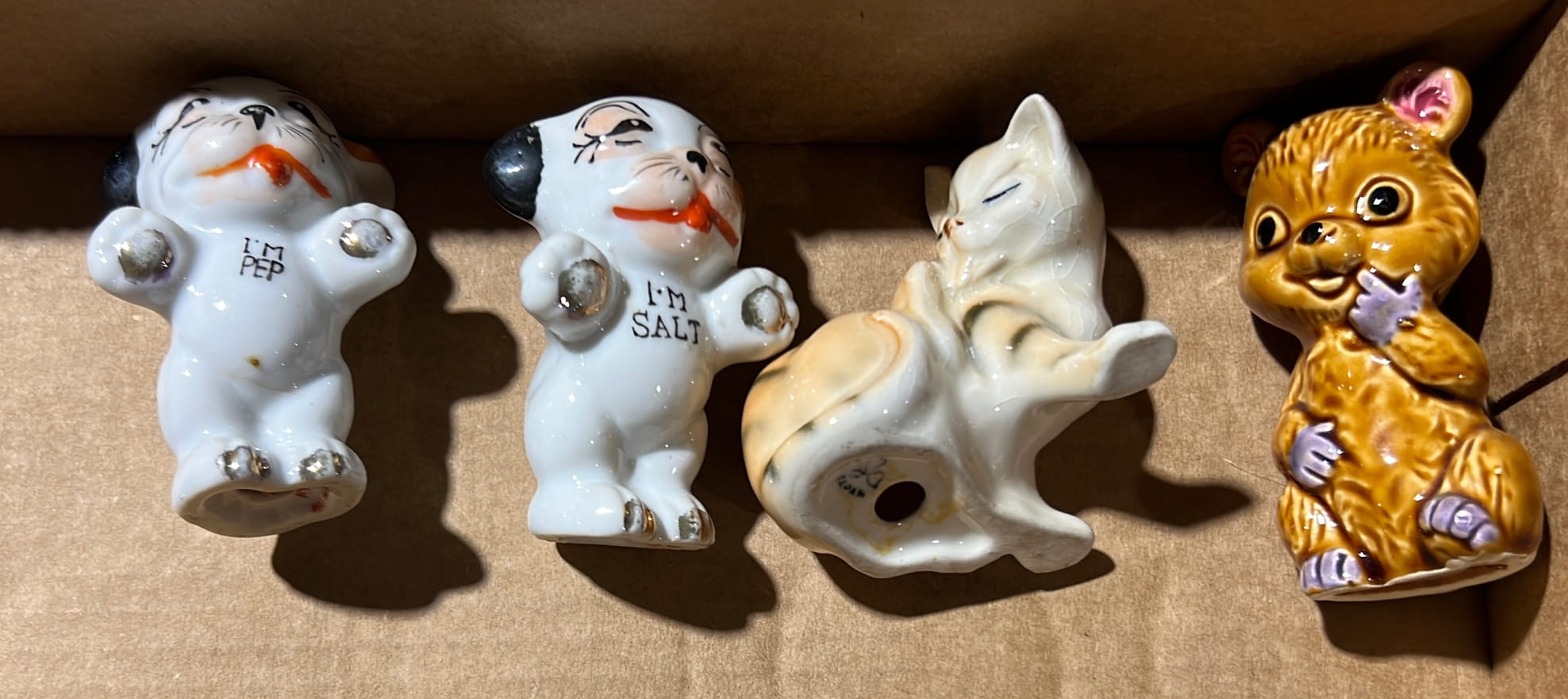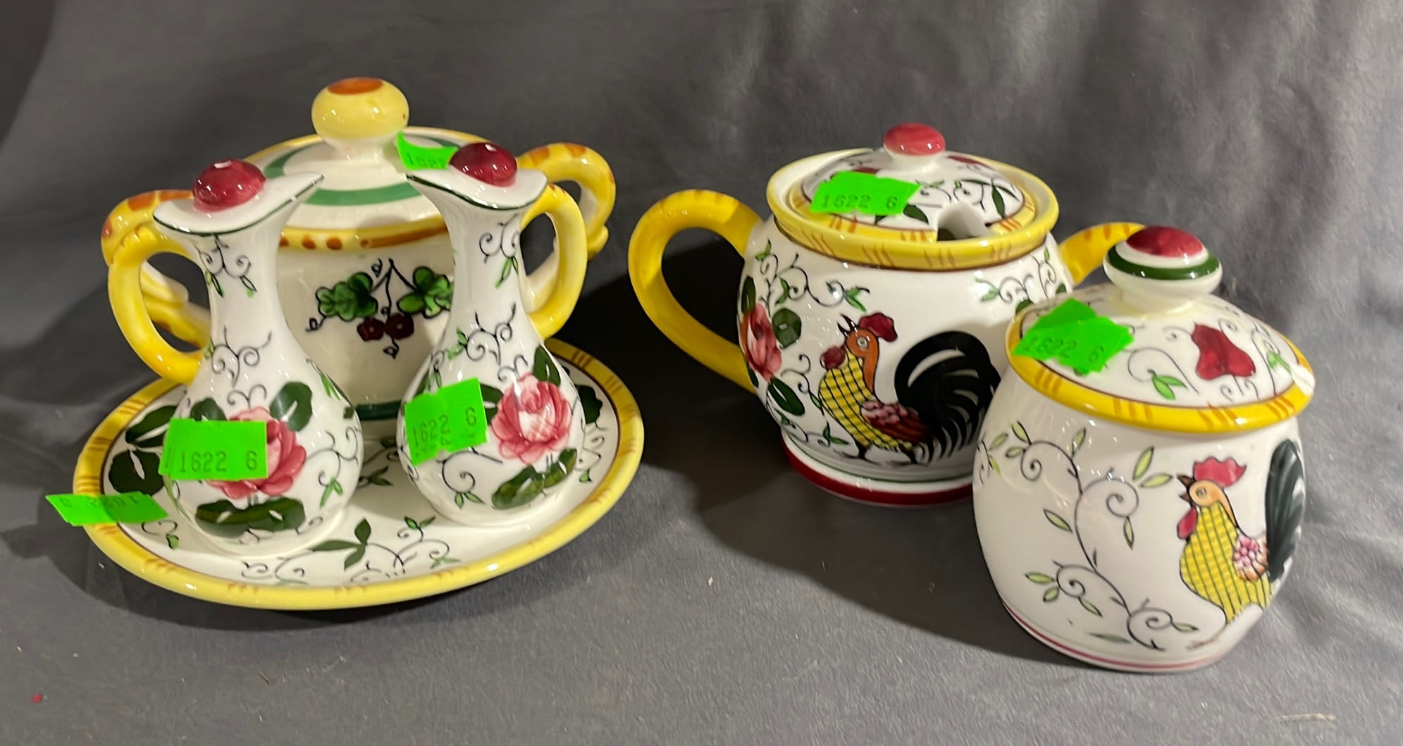 2011 Salt and pepper shakers , tobacco tin, 2- goose measuring spoon holders , tooth pick holders , cream and sugars , tea sets , miscellaneous