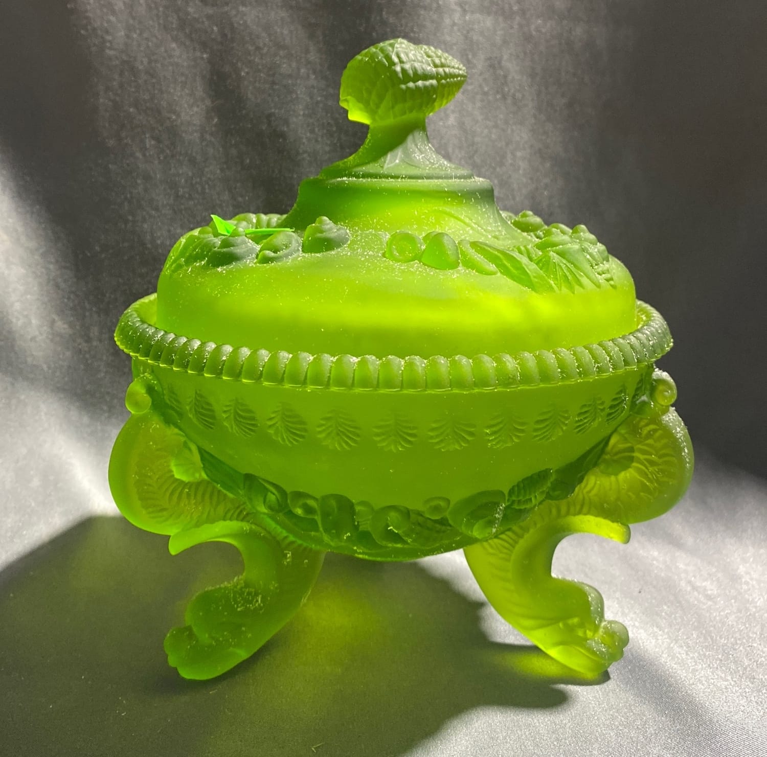 1249 Northwood daisy vaseline glass bowl 3"x4"
