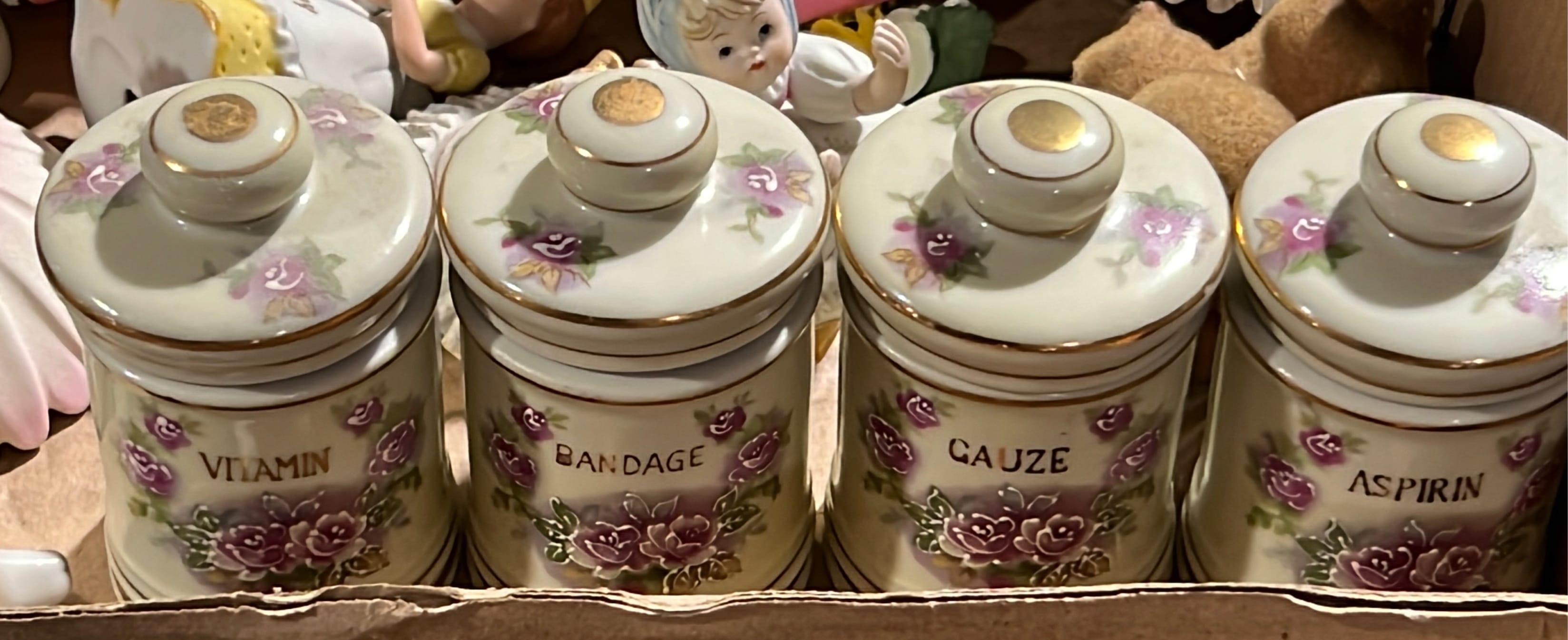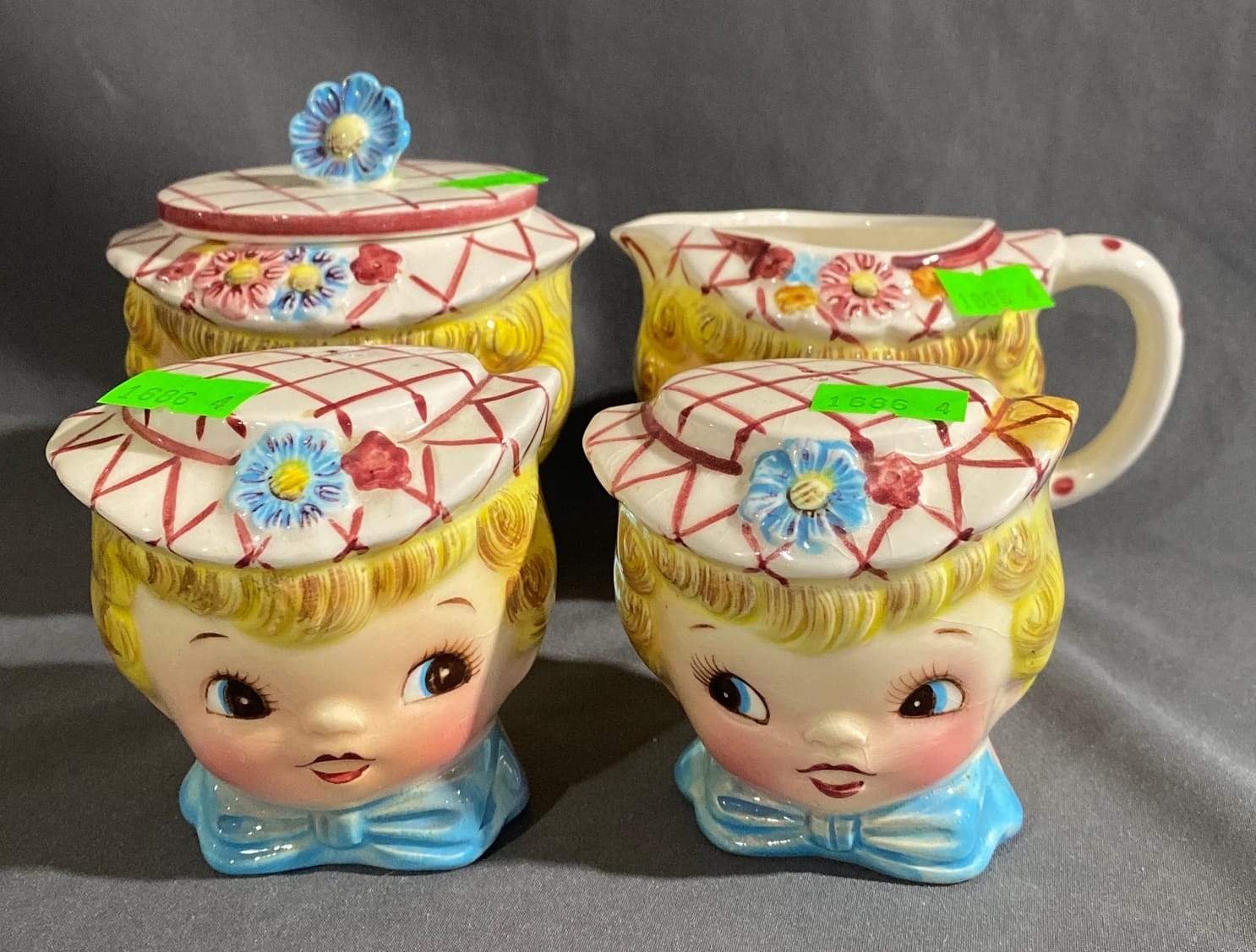 2009 4- piece Lefton canister set , 3.5”, Lefton figurines , porcelain figurine assortment