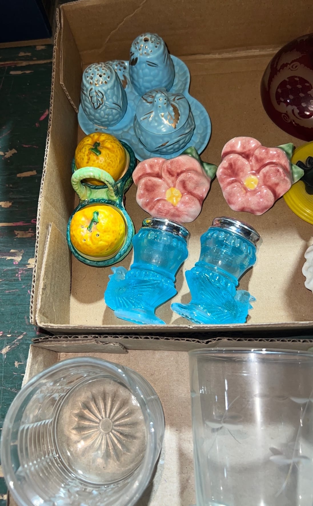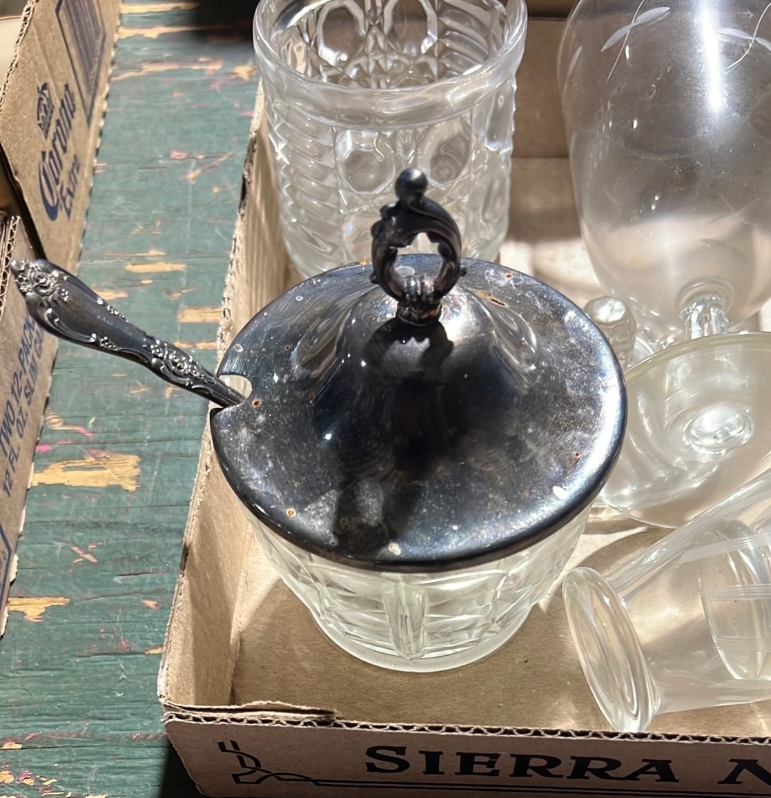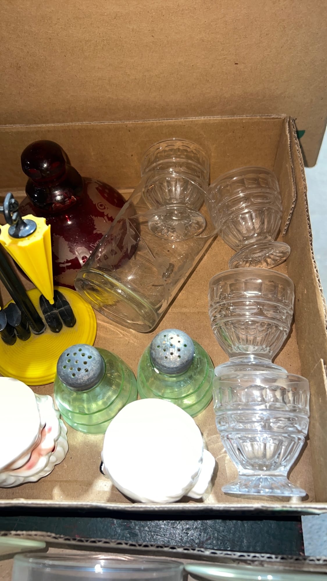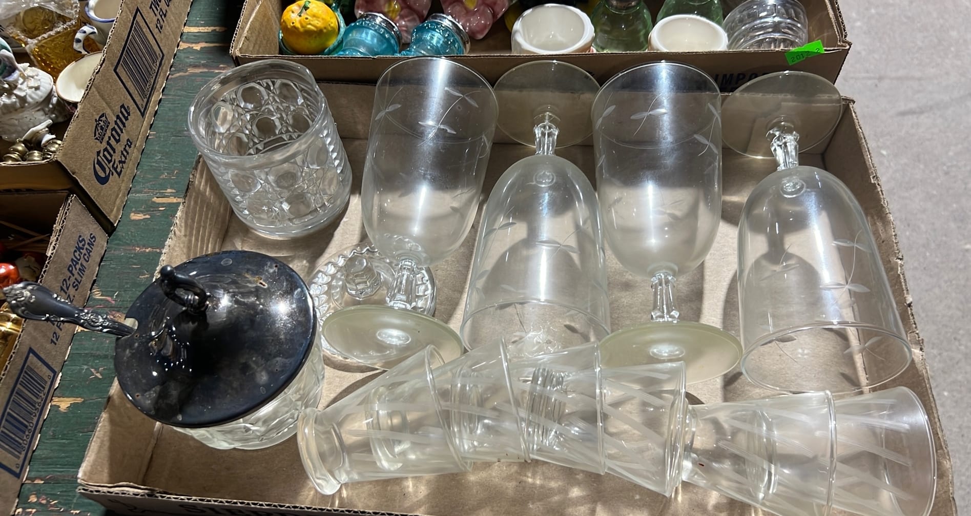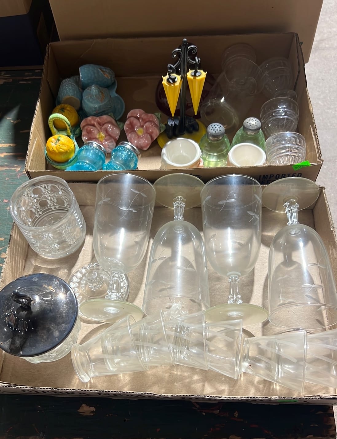 2012 Stemware , vintage sugar dish with lid and spoon , salt and pepper shakers , miscellaneous