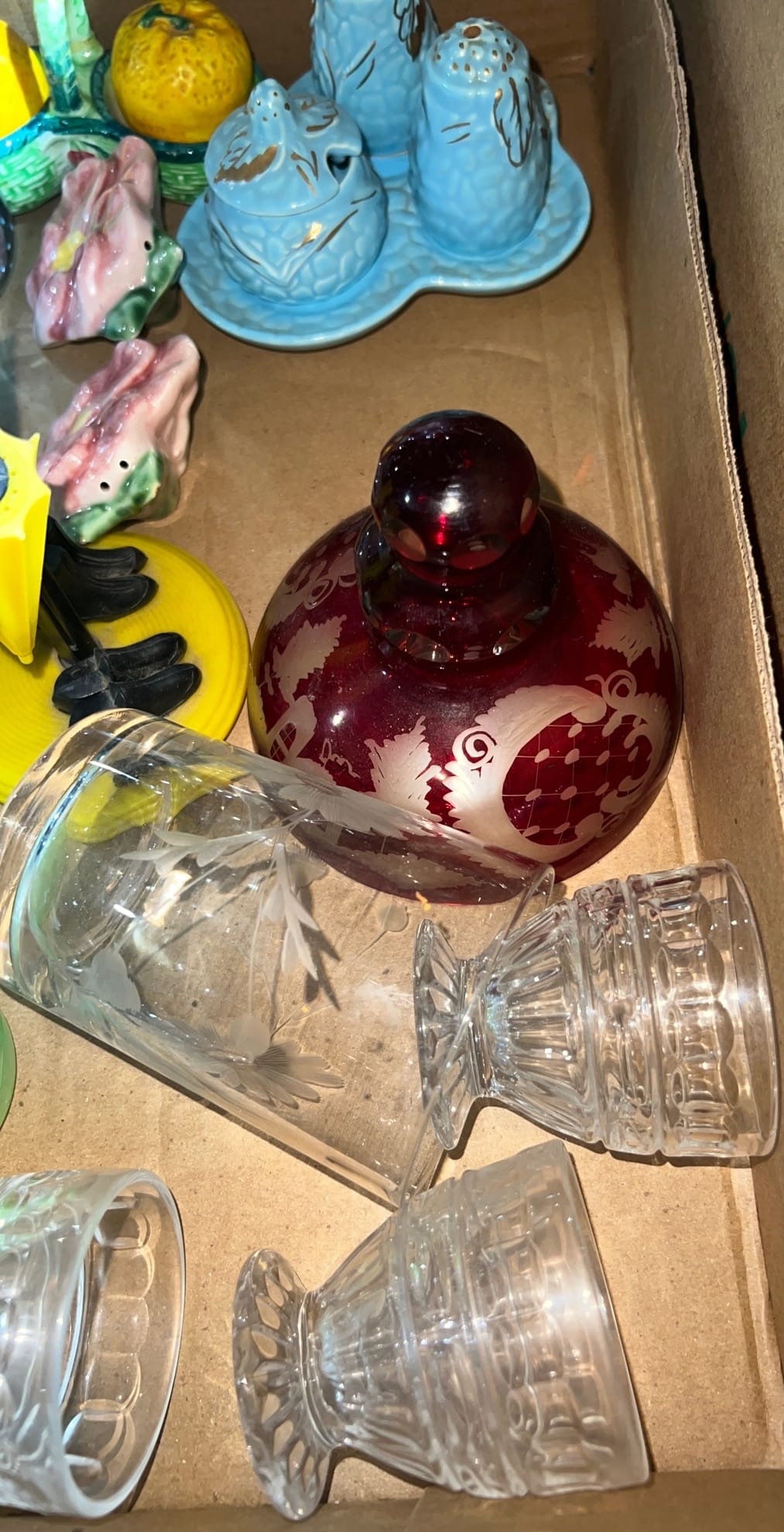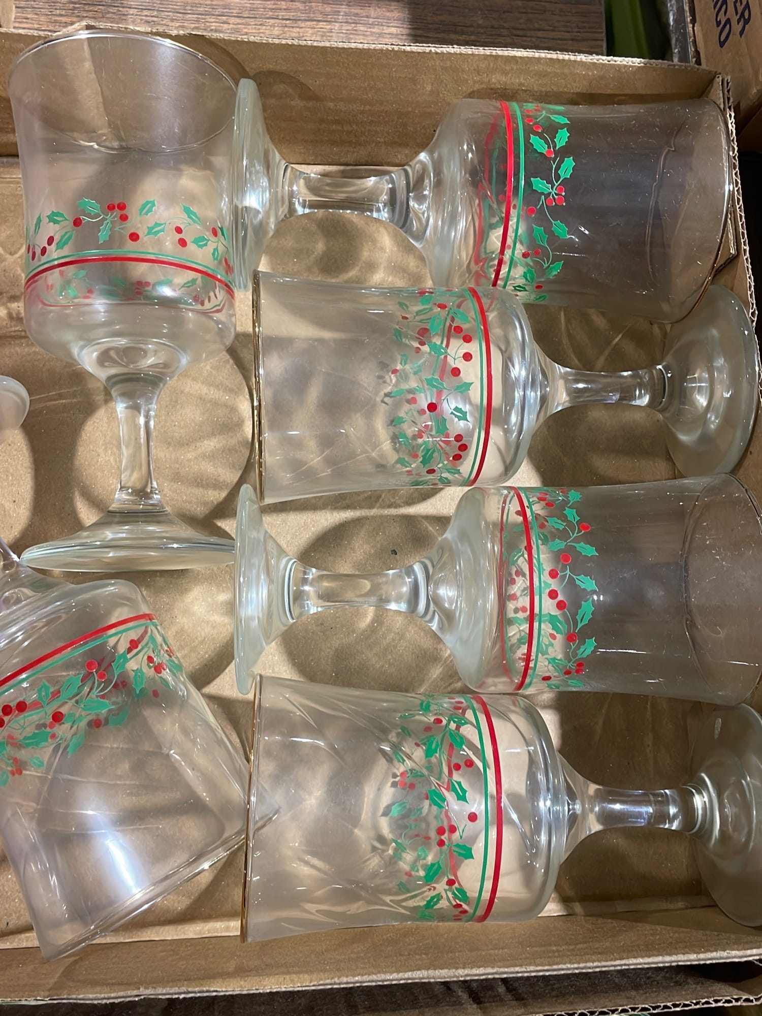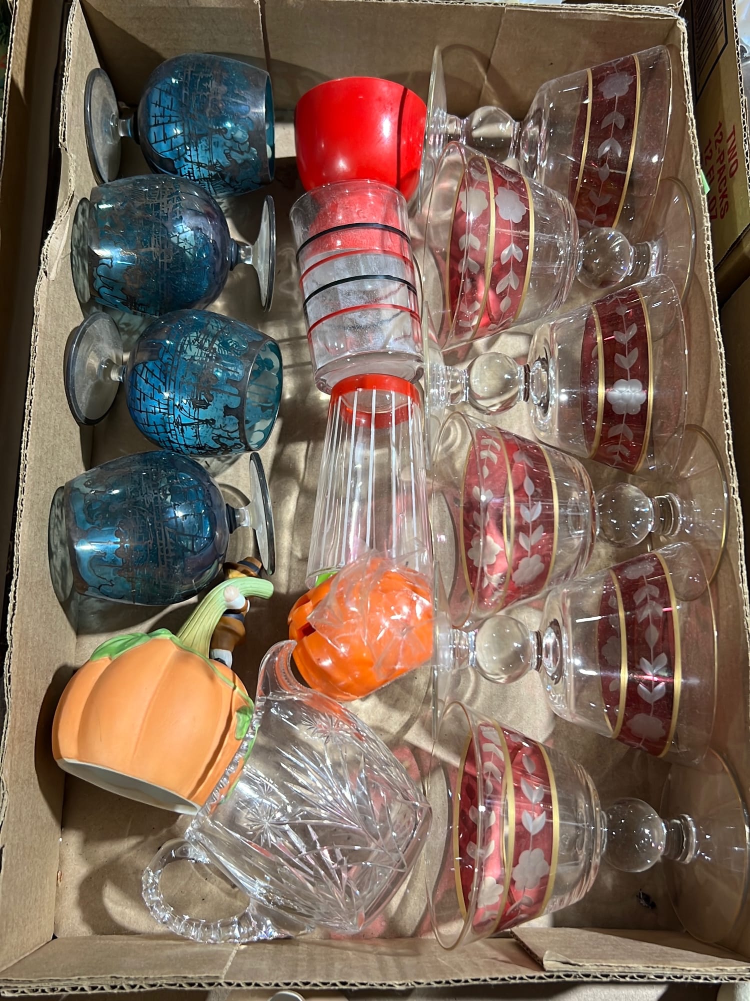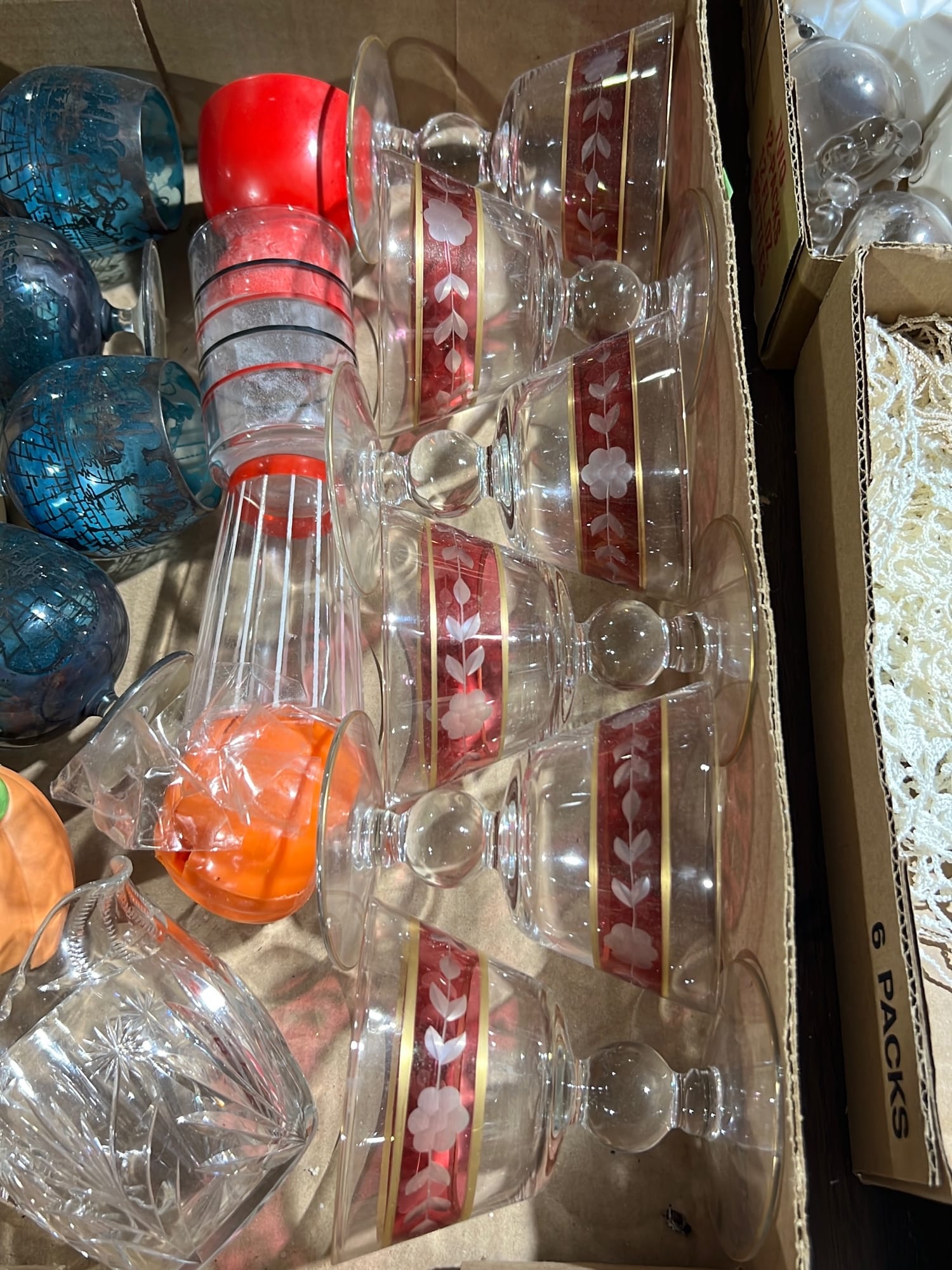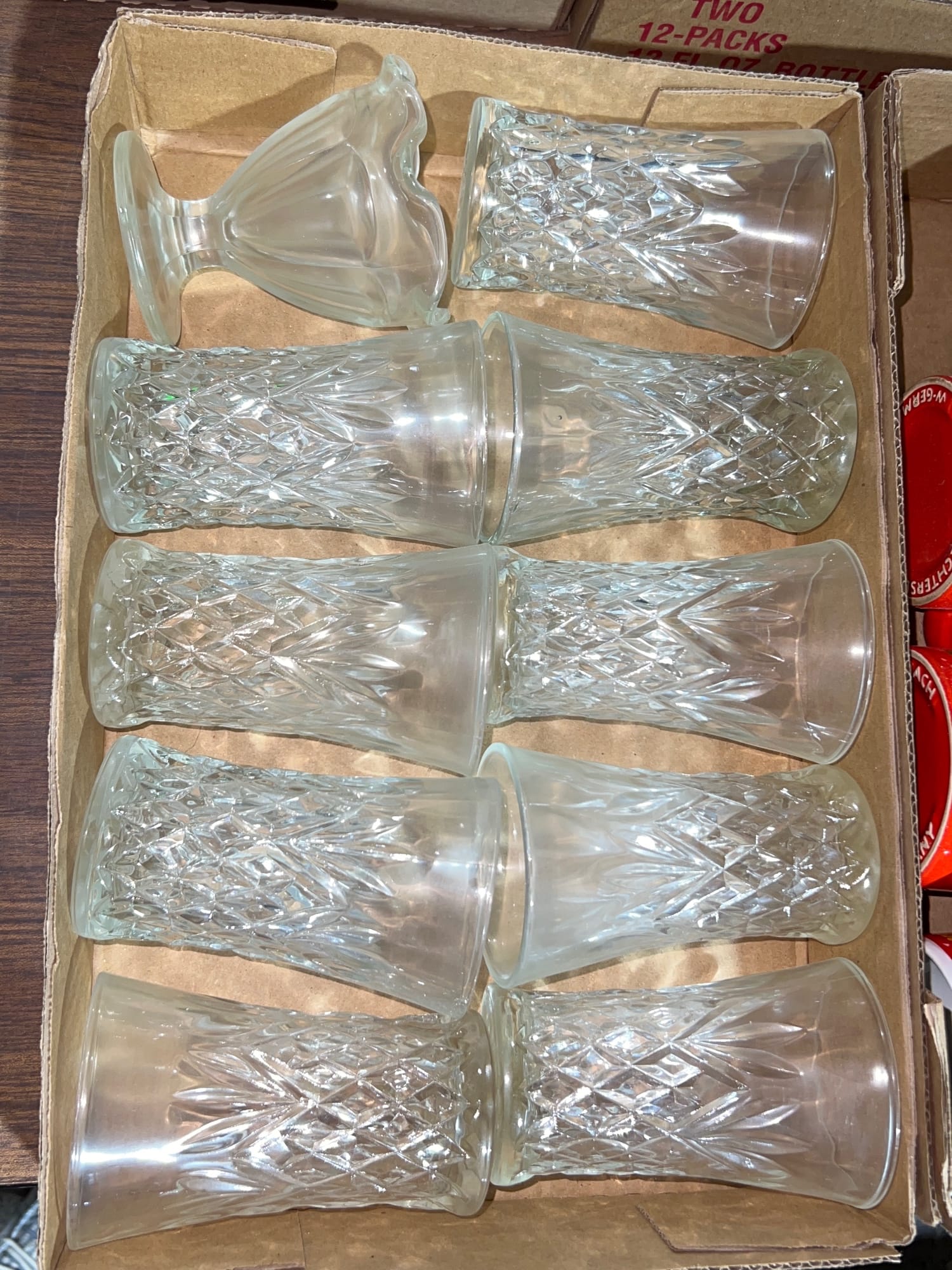 2012 Stemware , vintage sugar dish with lid and spoon , salt and pepper shakers , miscellaneous