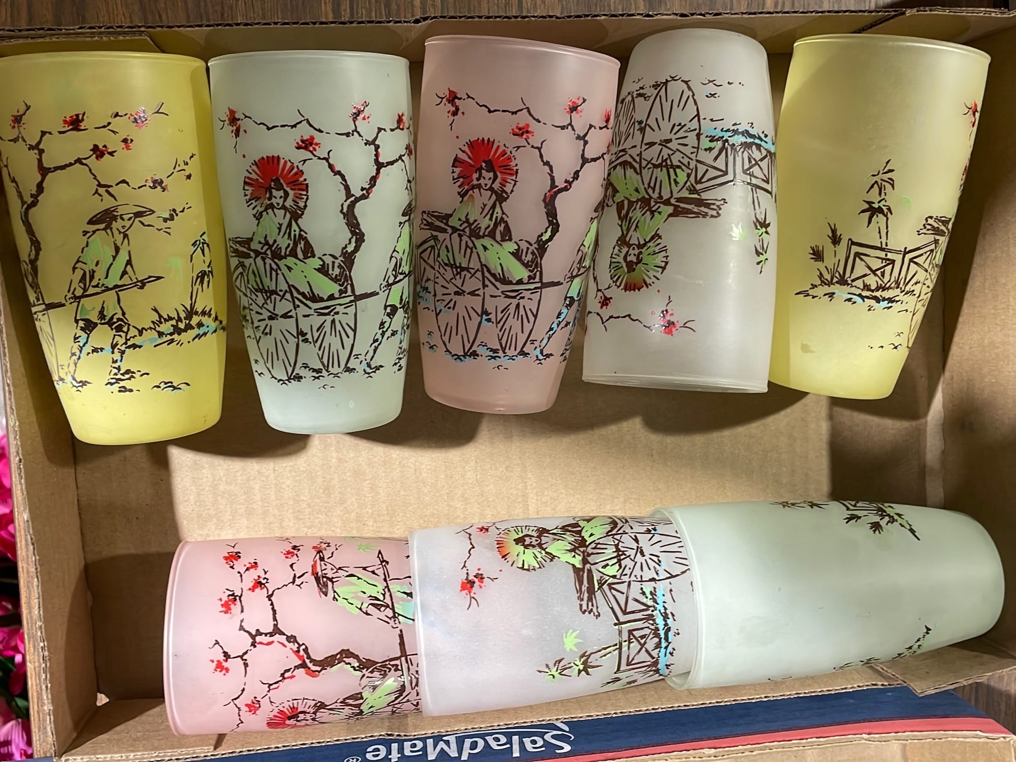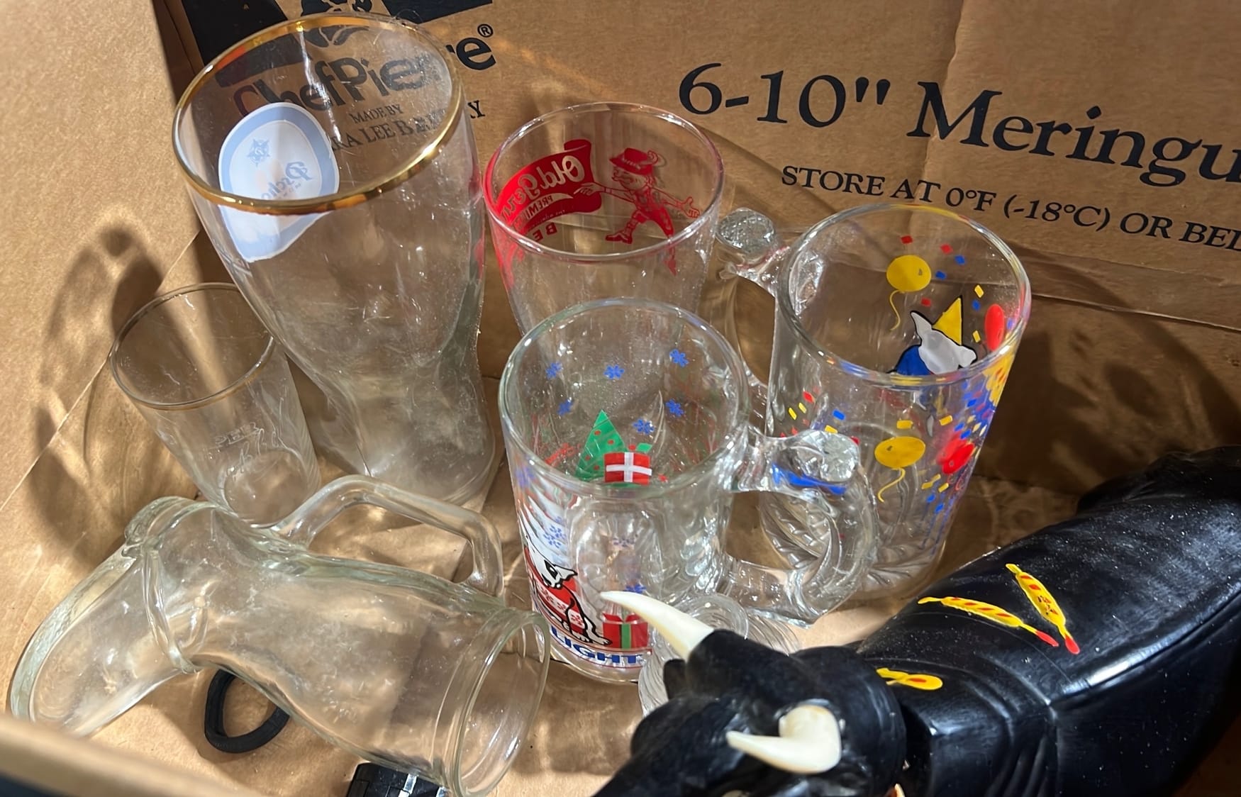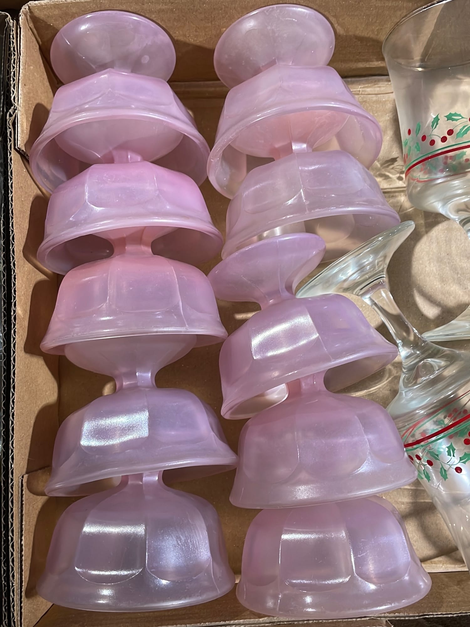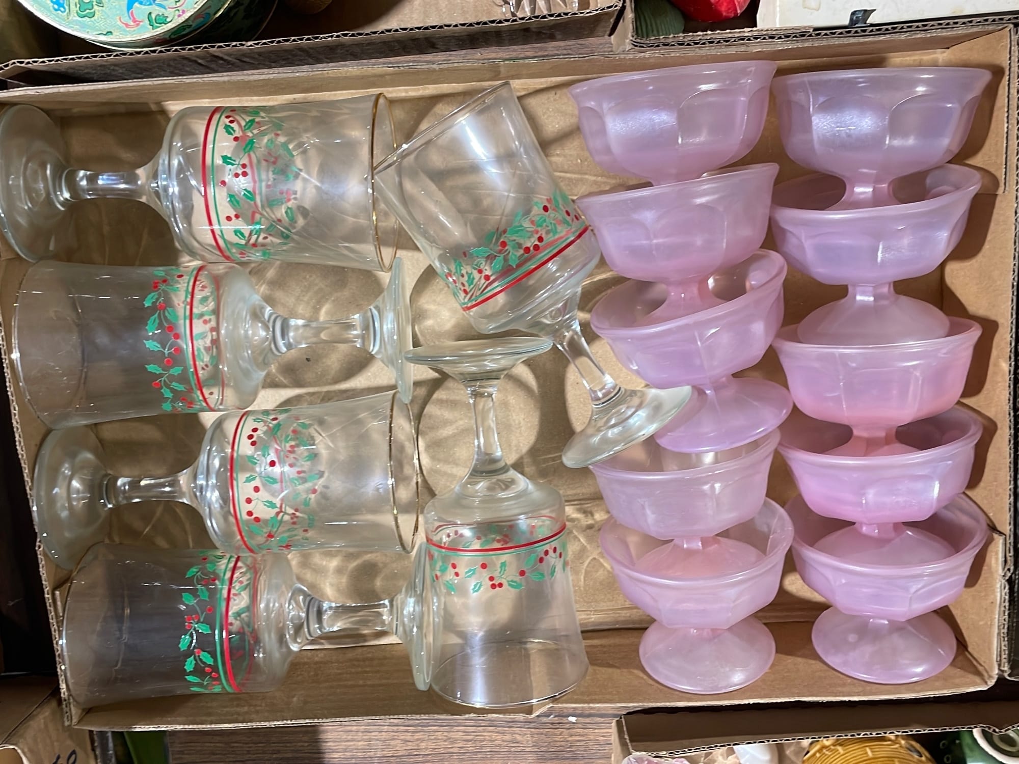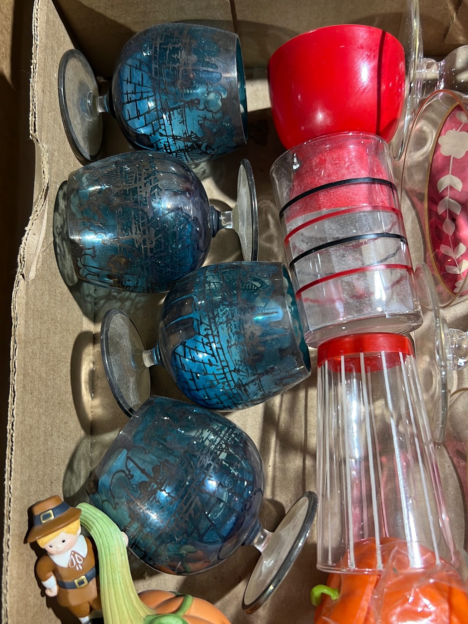 2012 Stemware , vintage sugar dish with lid and spoon , salt and pepper shakers , miscellaneous
