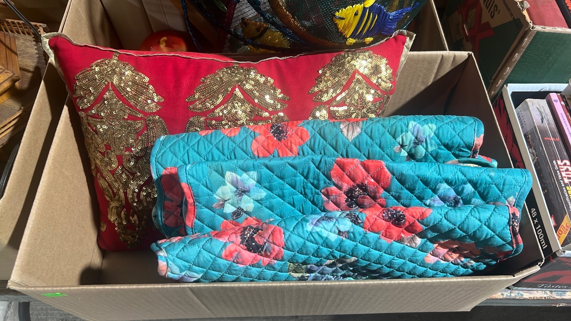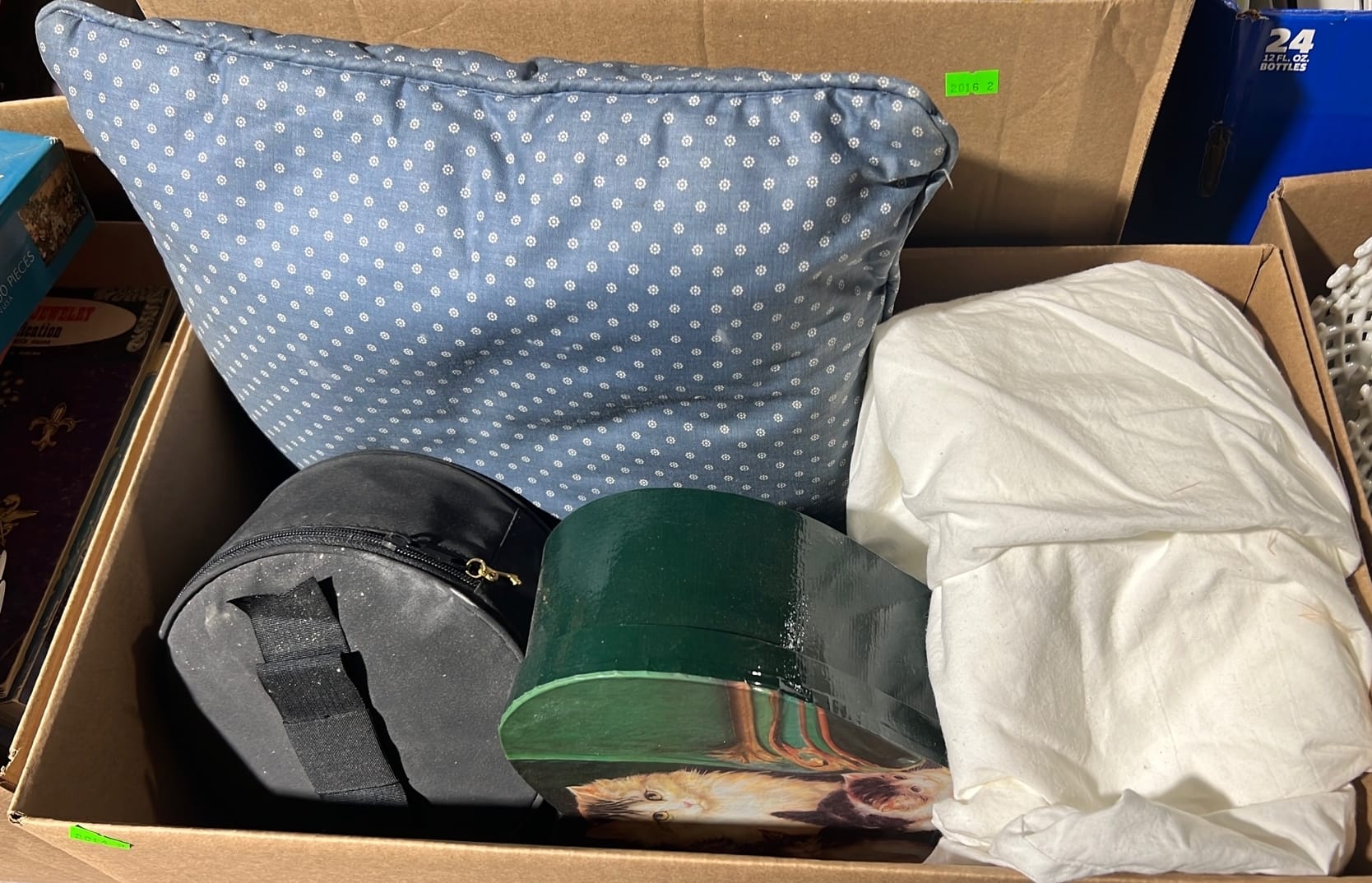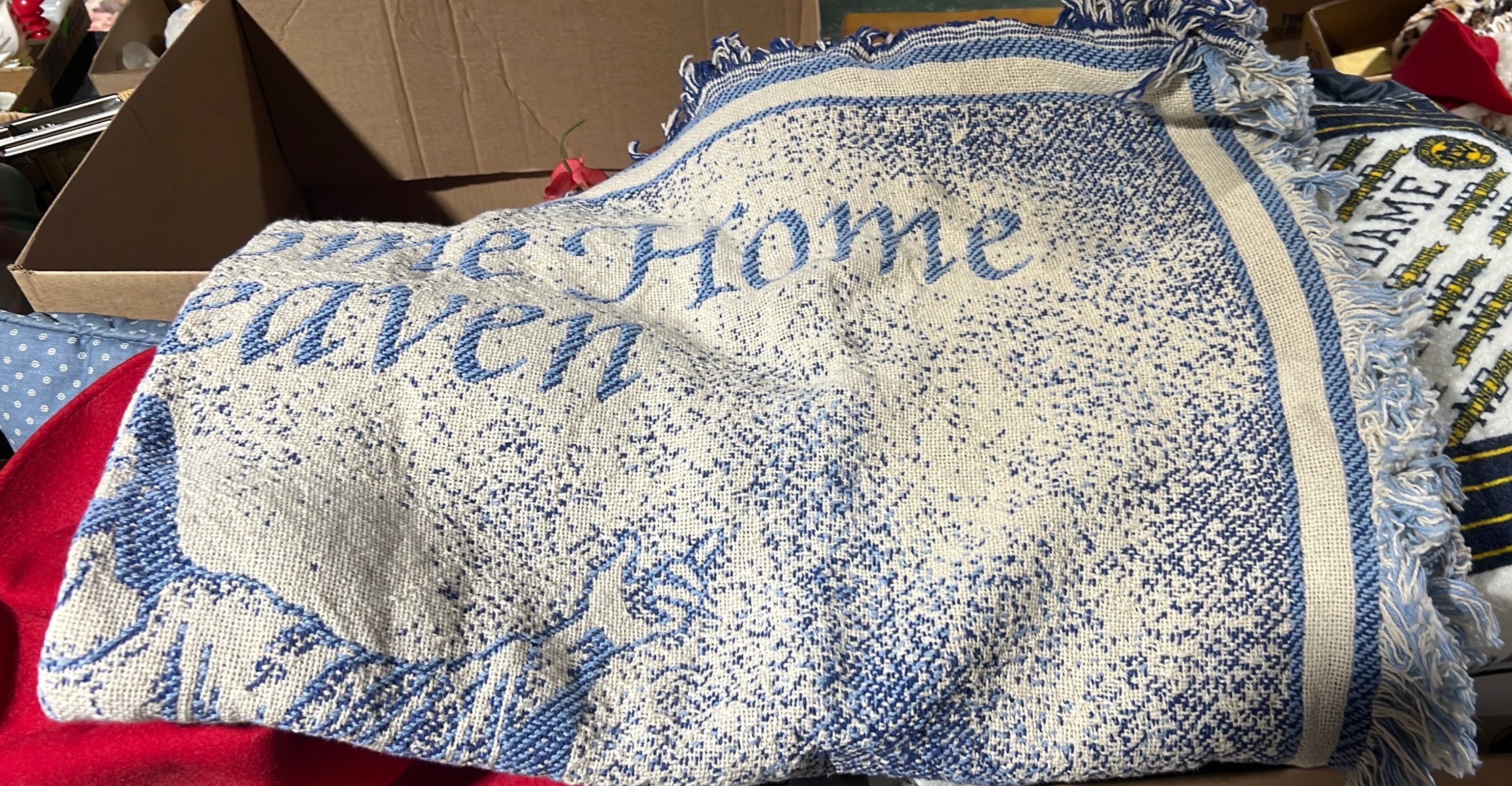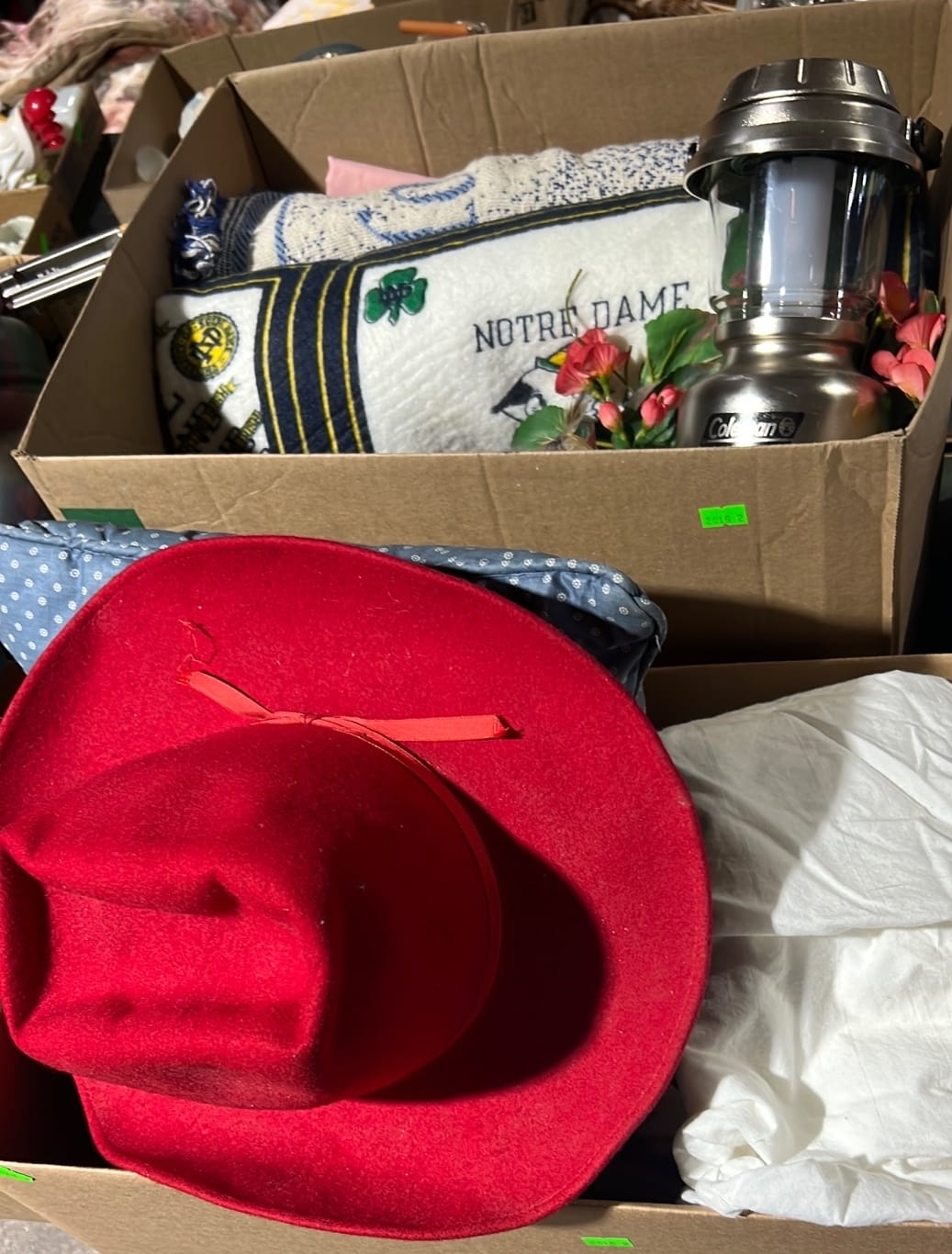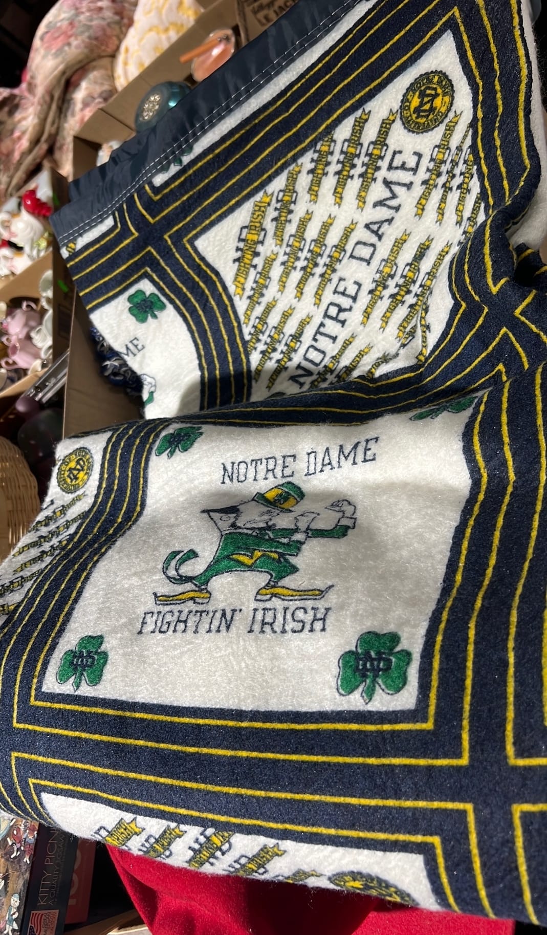 2016 Notre Dame blanket, throw blanket, hats, battery operated Coleman lantern, pillows, miscellaneous