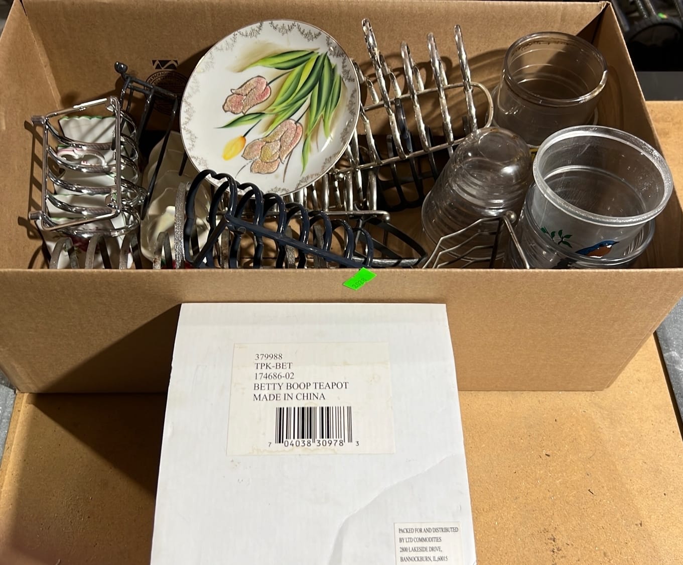 2028 Betty Boop teapot, assorted racks, plastic tumblers, miscellaneous