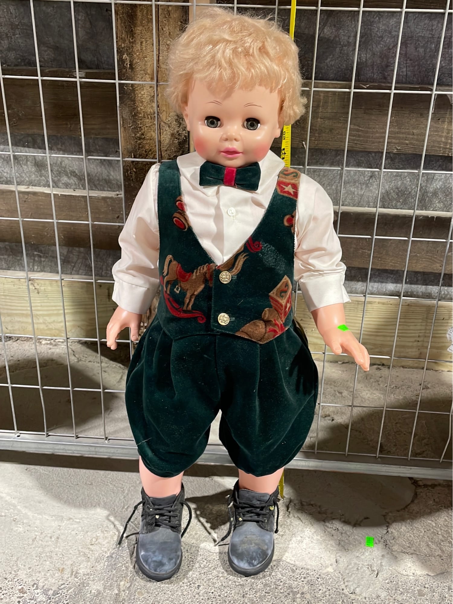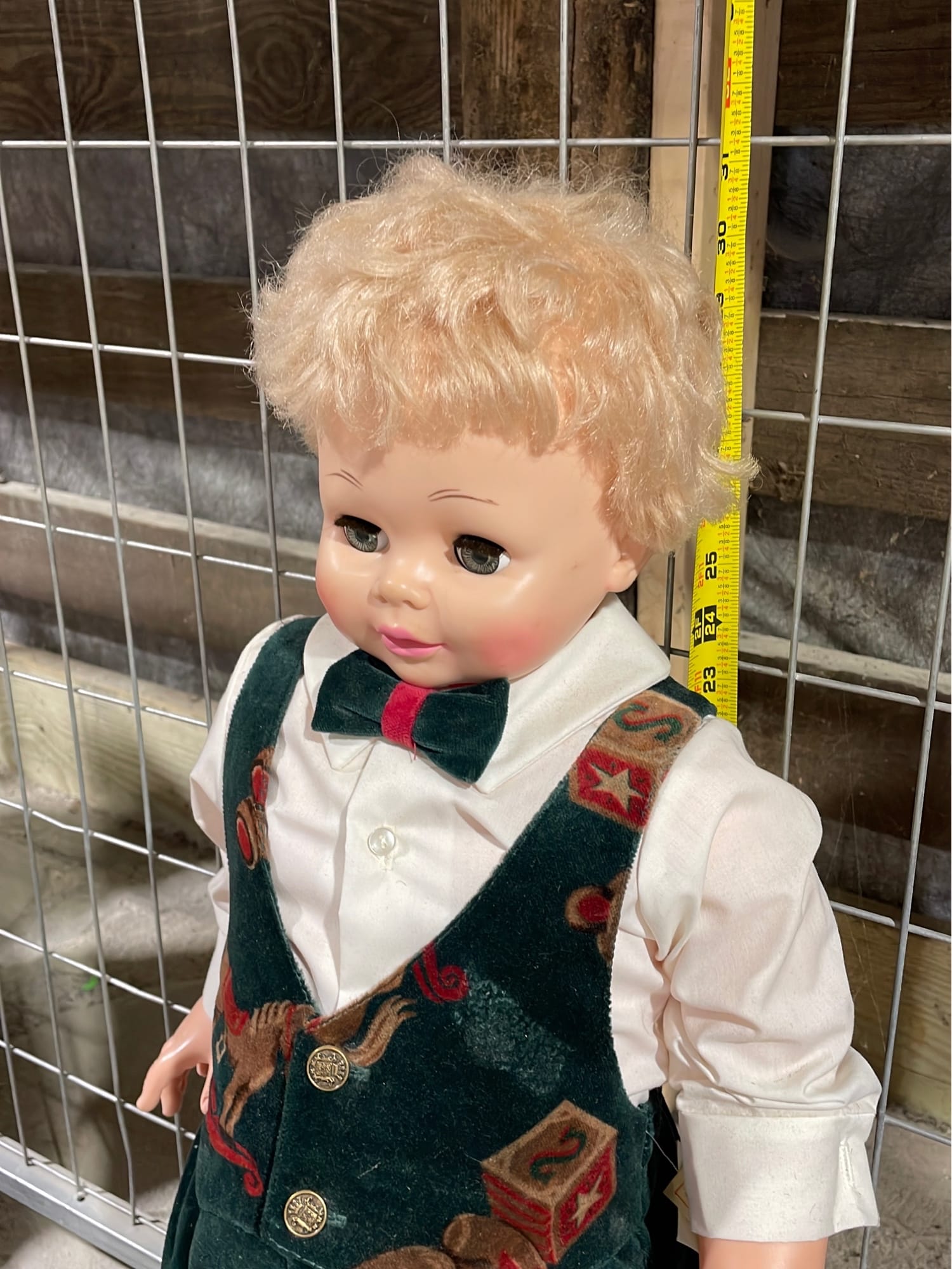 2047 Life Sized Little Boy Doll in Christmas Vest