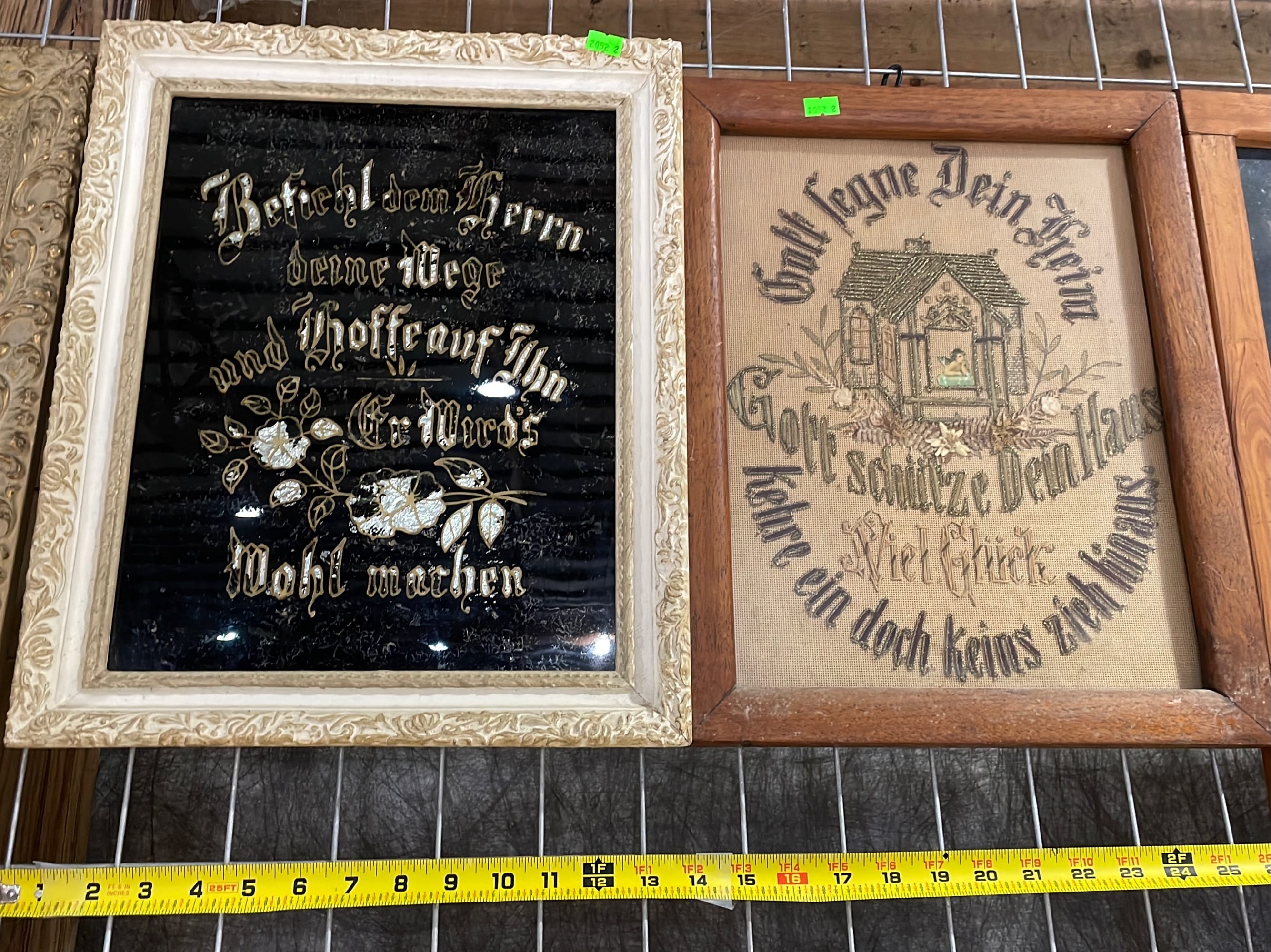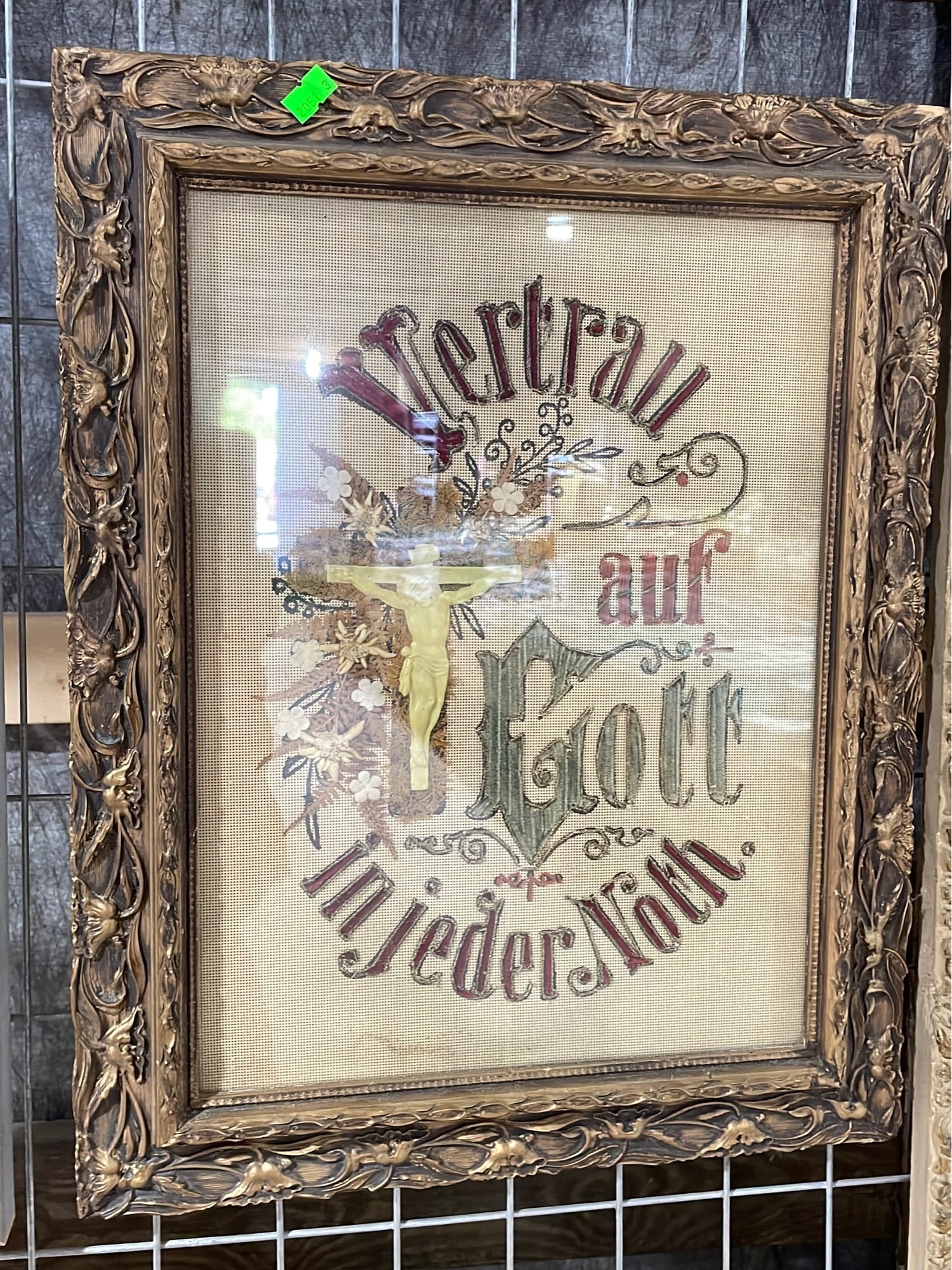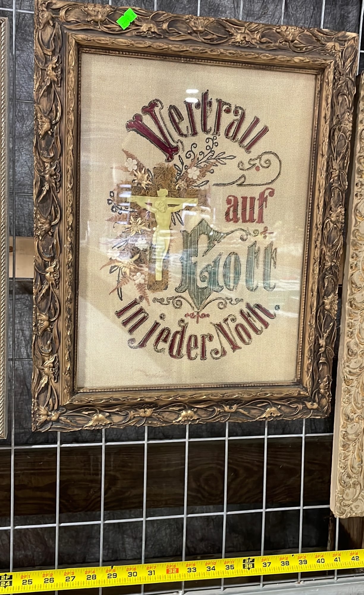 2051 (3) Framed Pictures: framed cards, religious collage (German), religious collage (German)