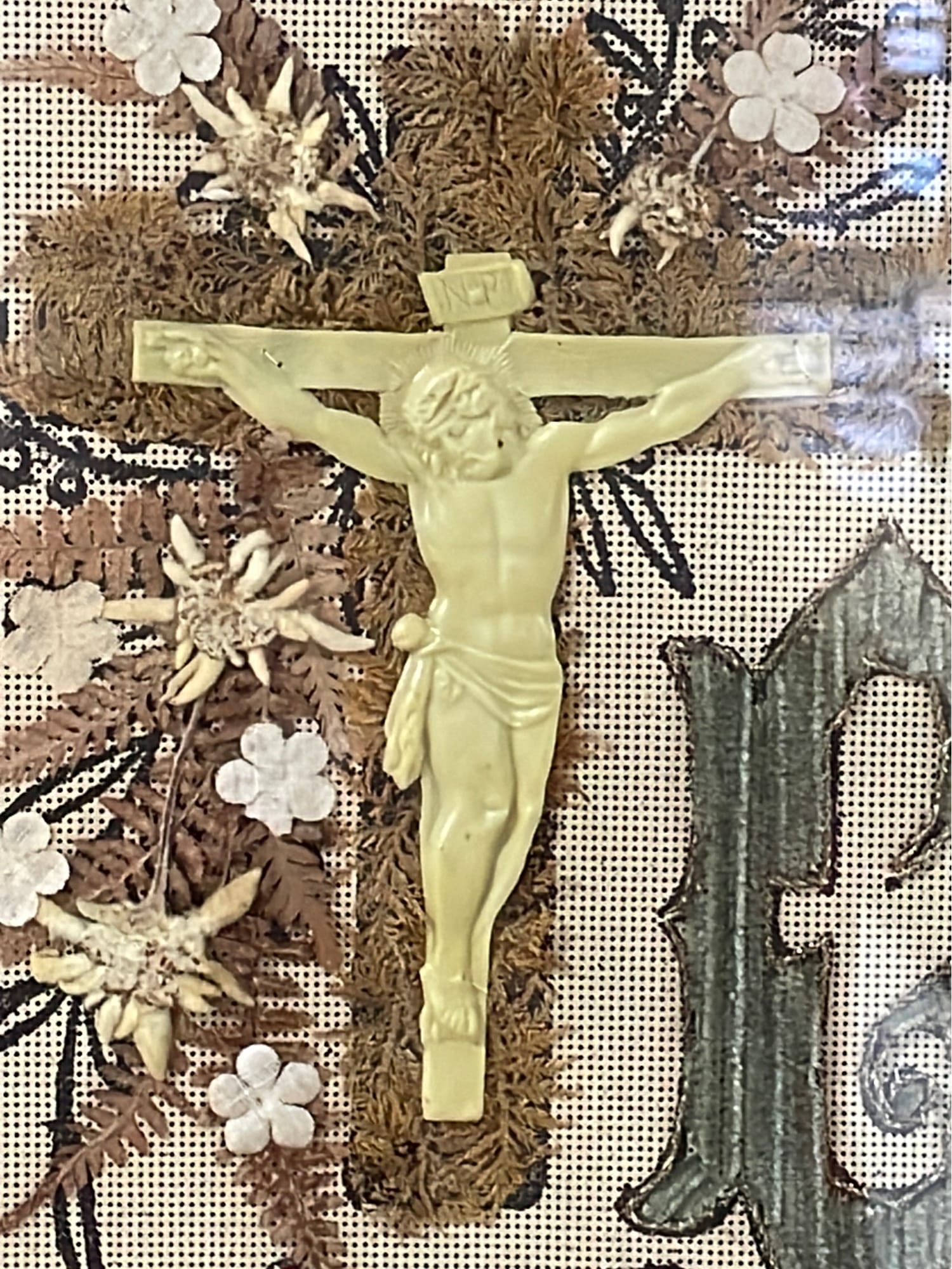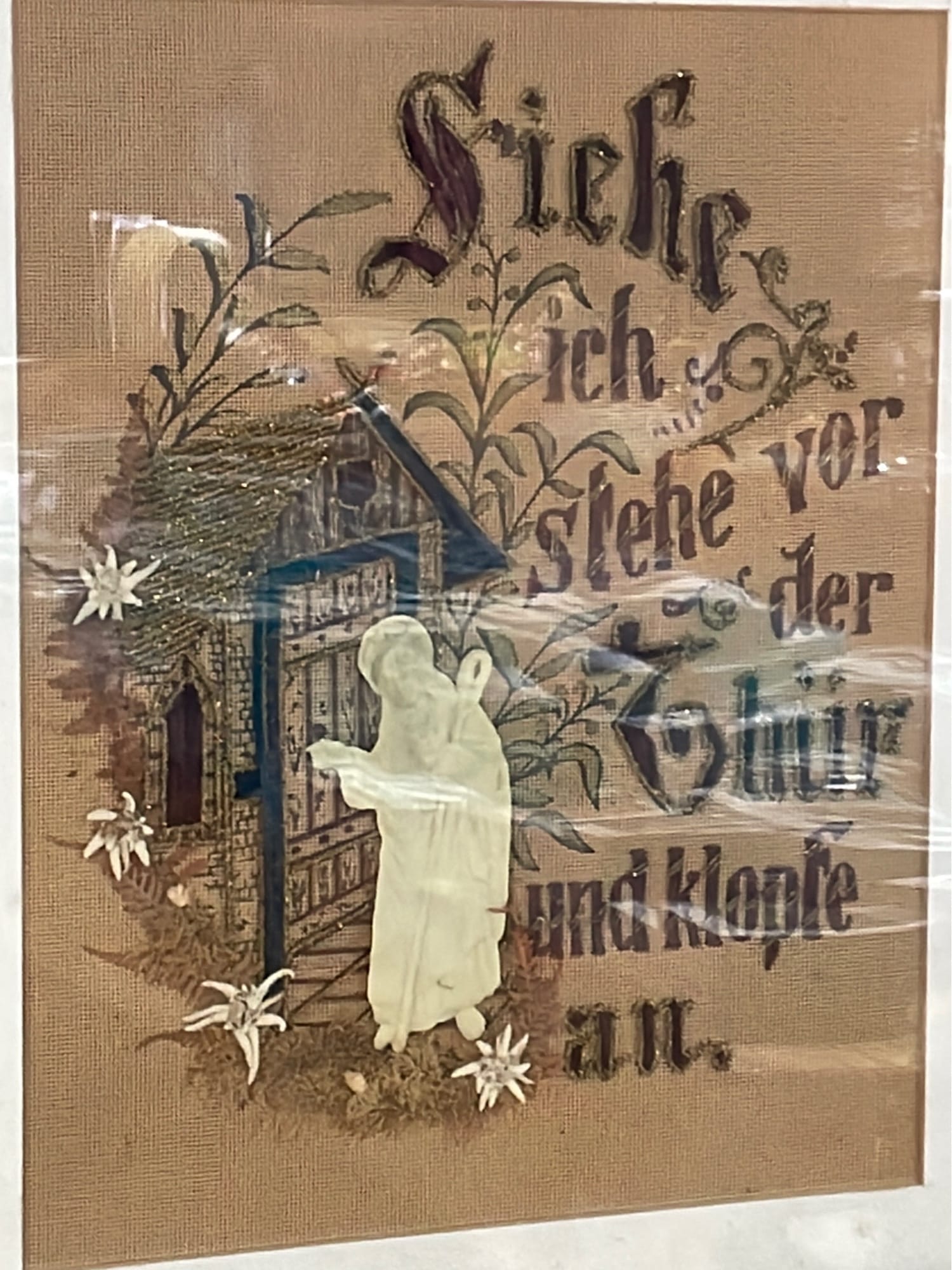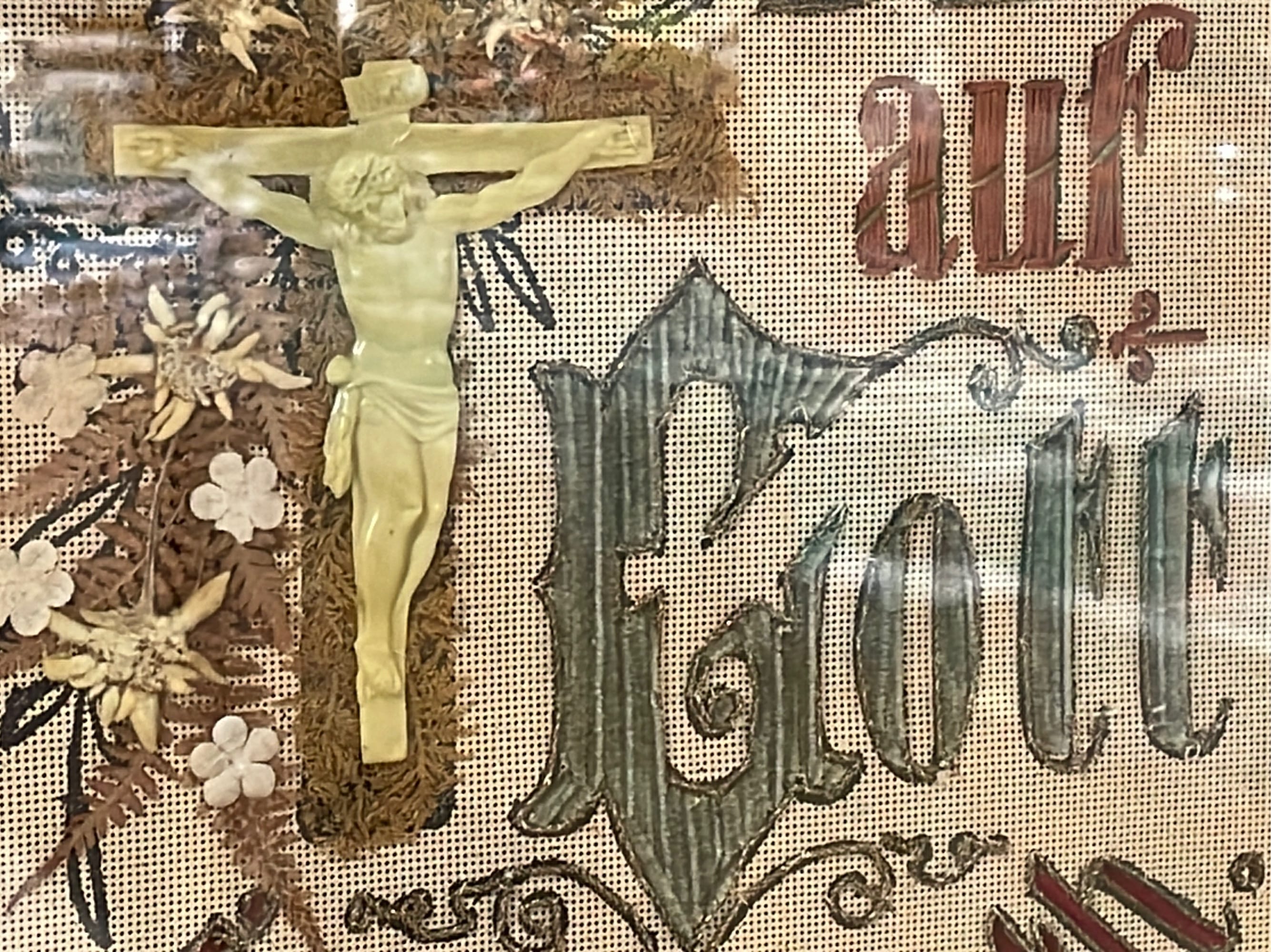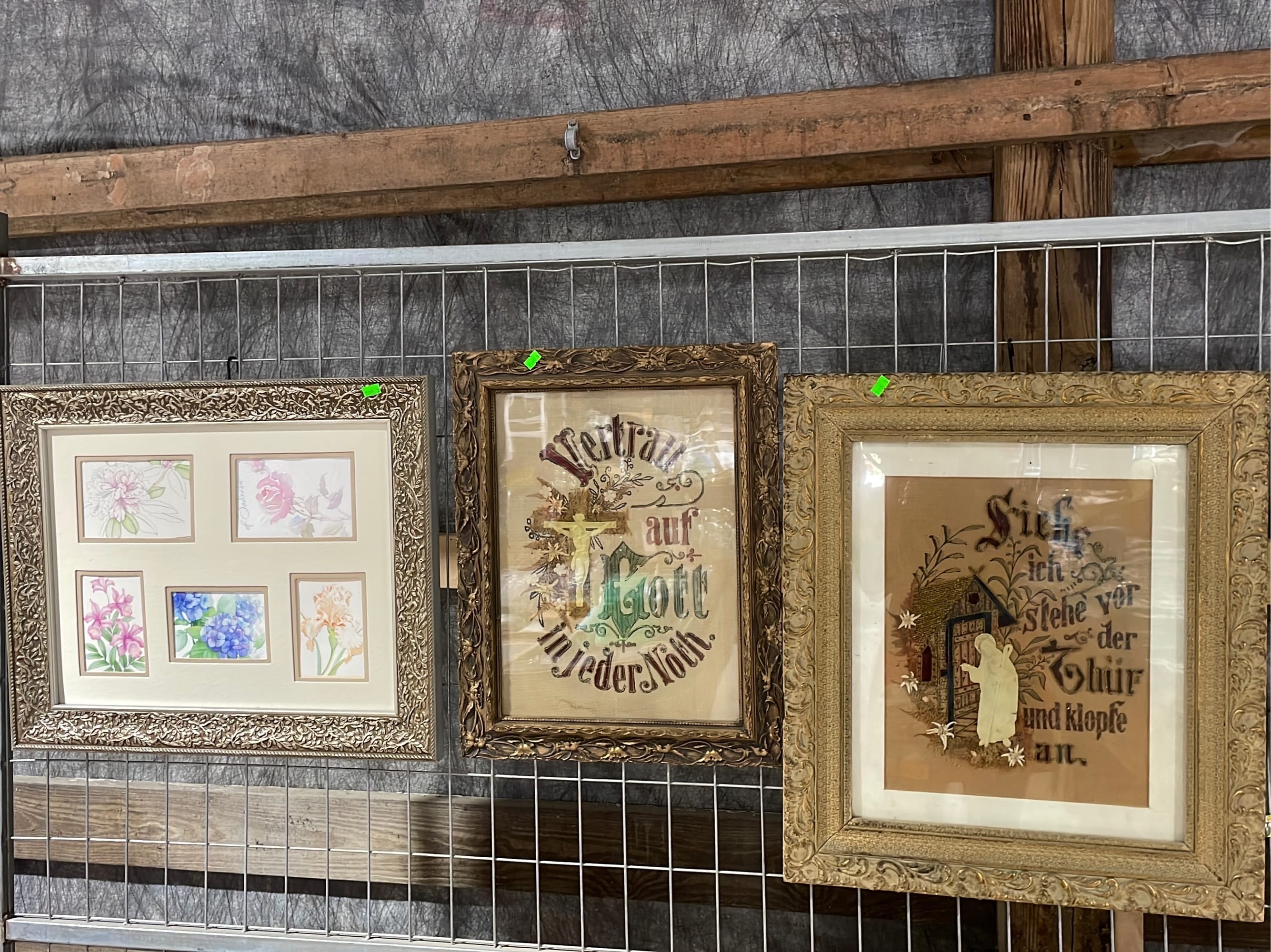 2051 (3) Framed Pictures: framed cards, religious collage (German), religious collage (German)