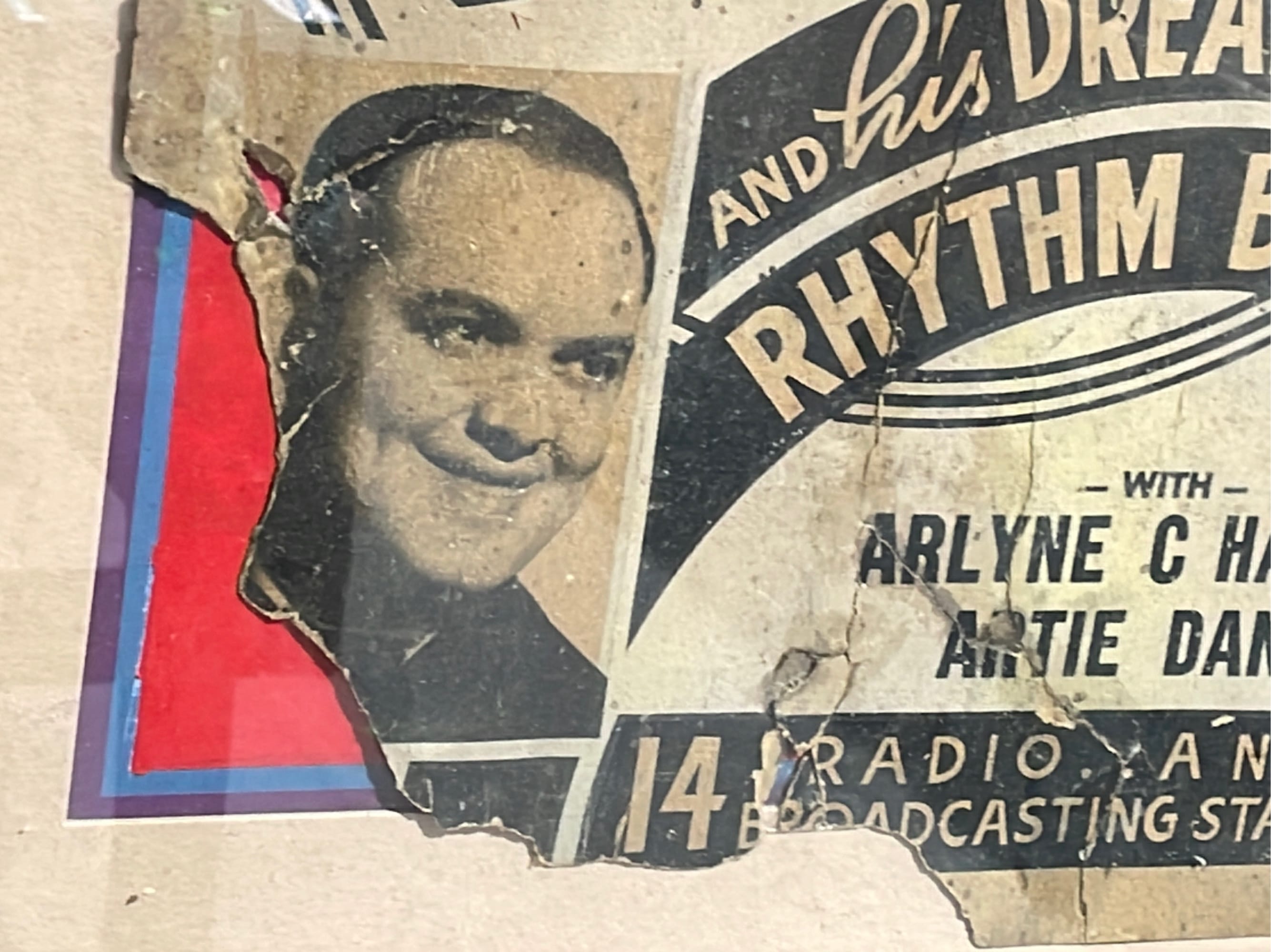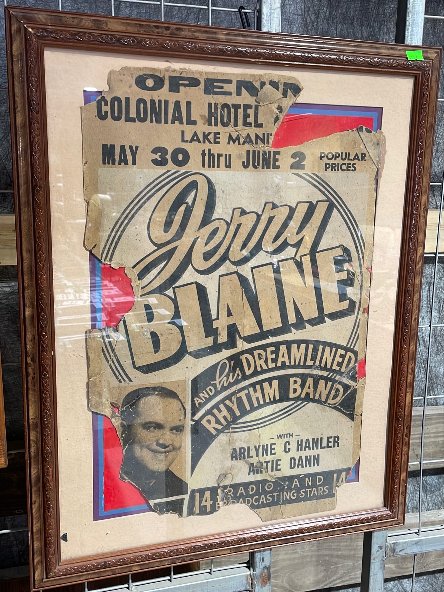 2054 Framed Poster (quite torn): “Jerry Blaine and his Dreamliner Rhythm Band” 19 3/4” x 25 1/4”