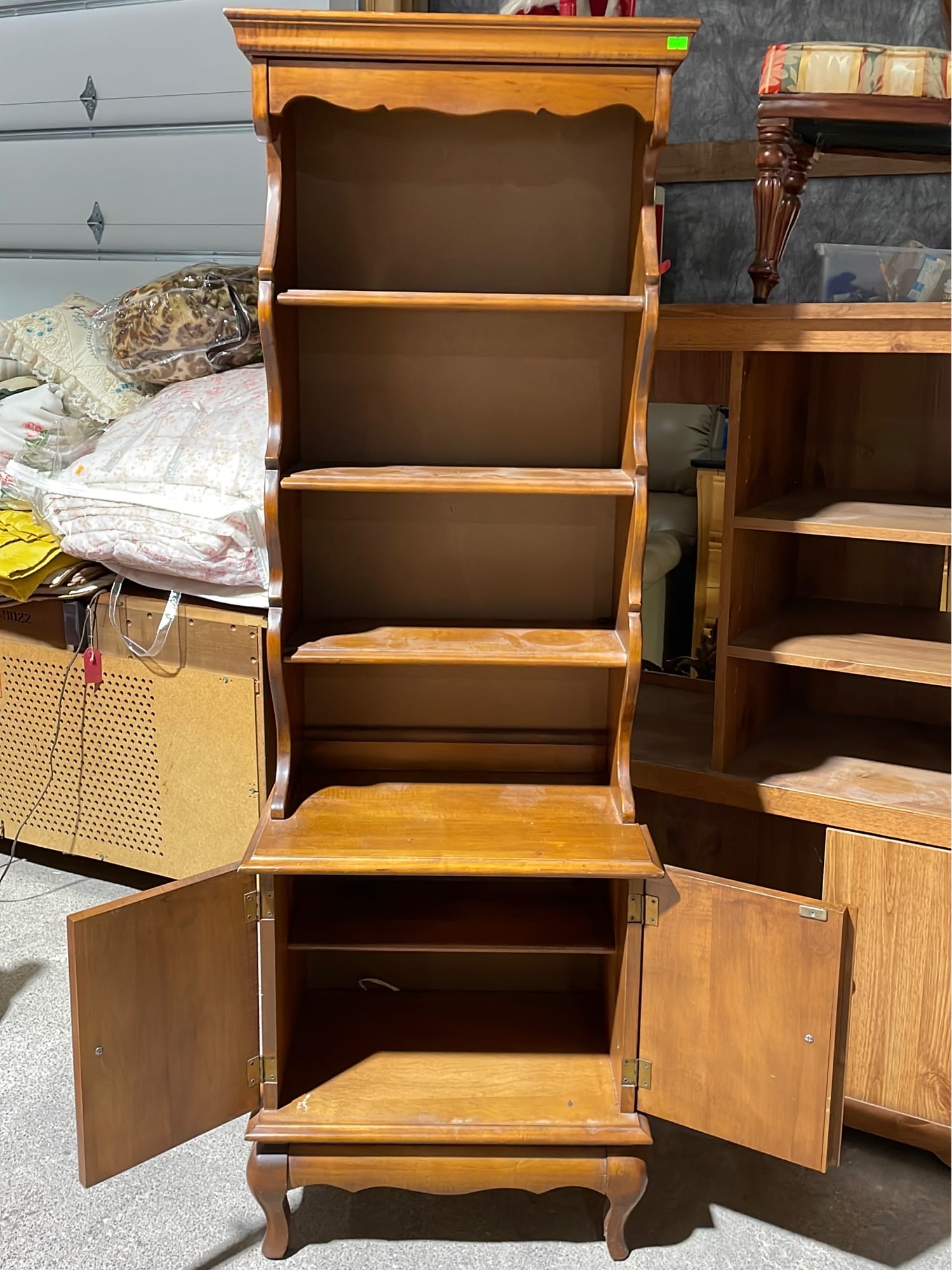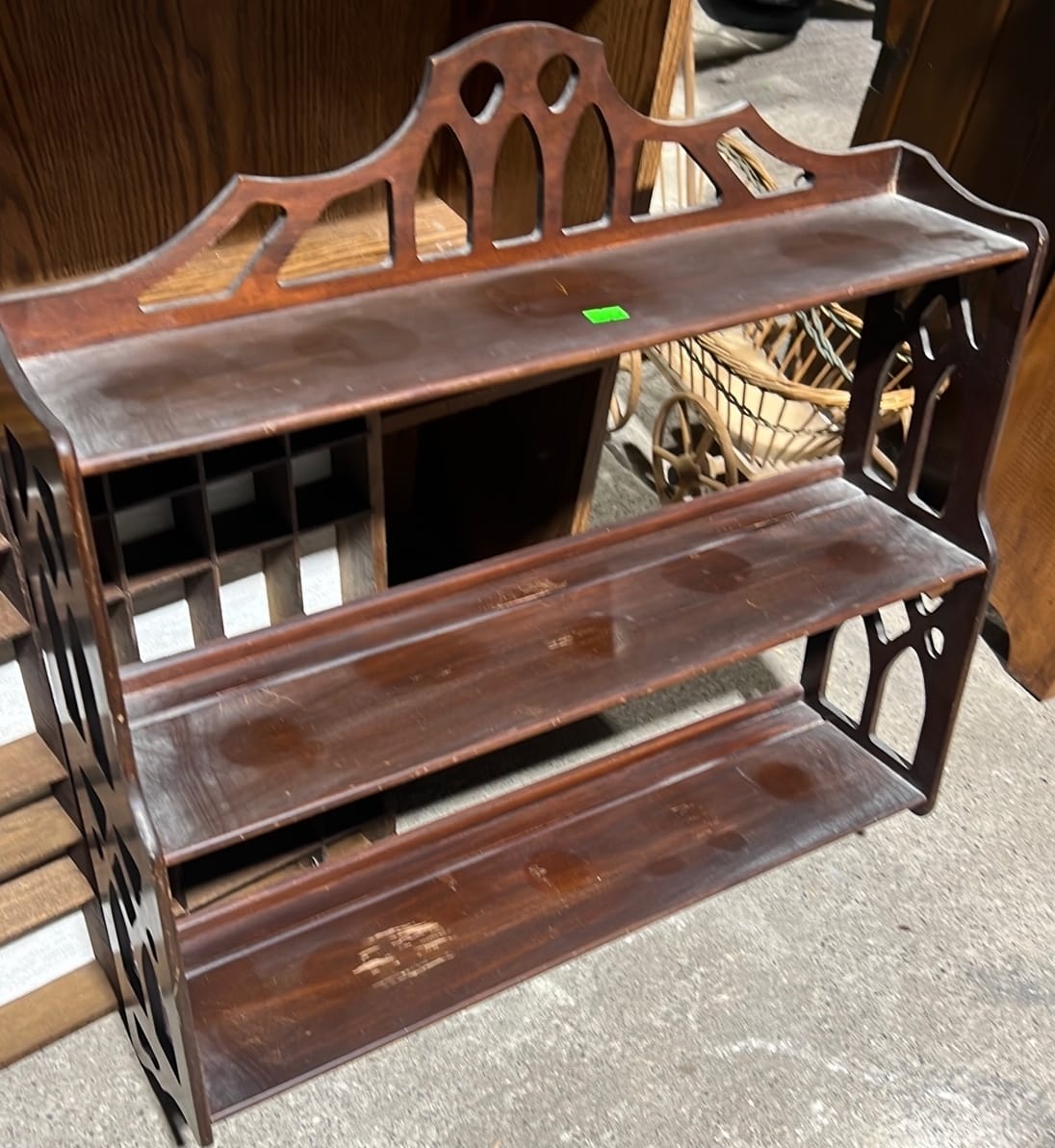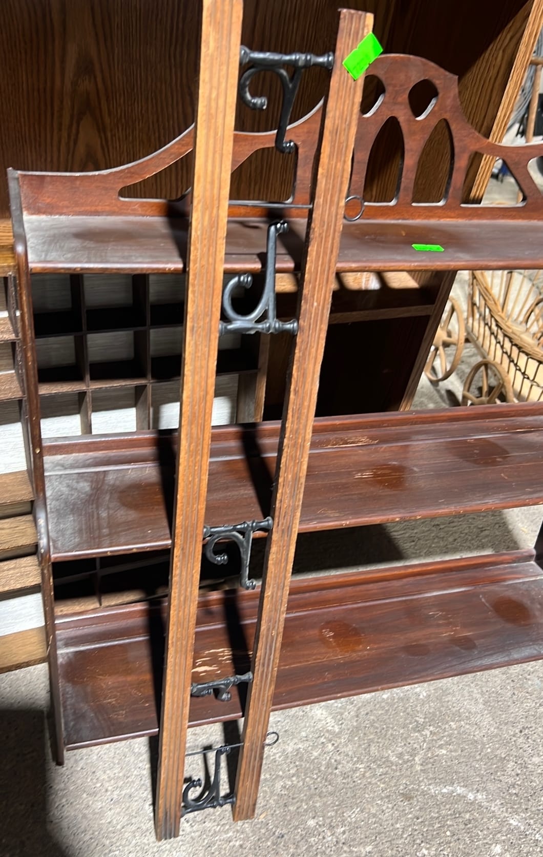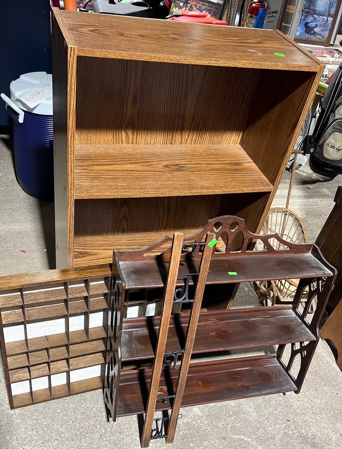 7204 Book Shelf 9”x22.5”x 39.5”, ornate wood shelf 24”x26”, shadow box display 18”x21”, coat hanger 4”x27.5”