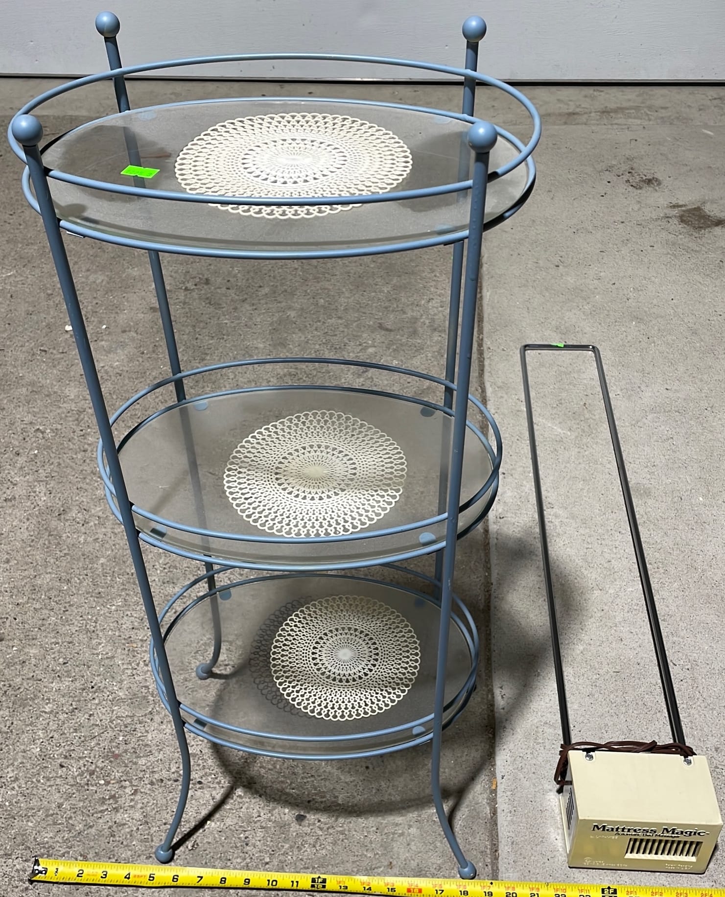 7225 (2) Metal Stands 12"x31", 7"x18"x28" and (1) Mattress Magic Bed Massager