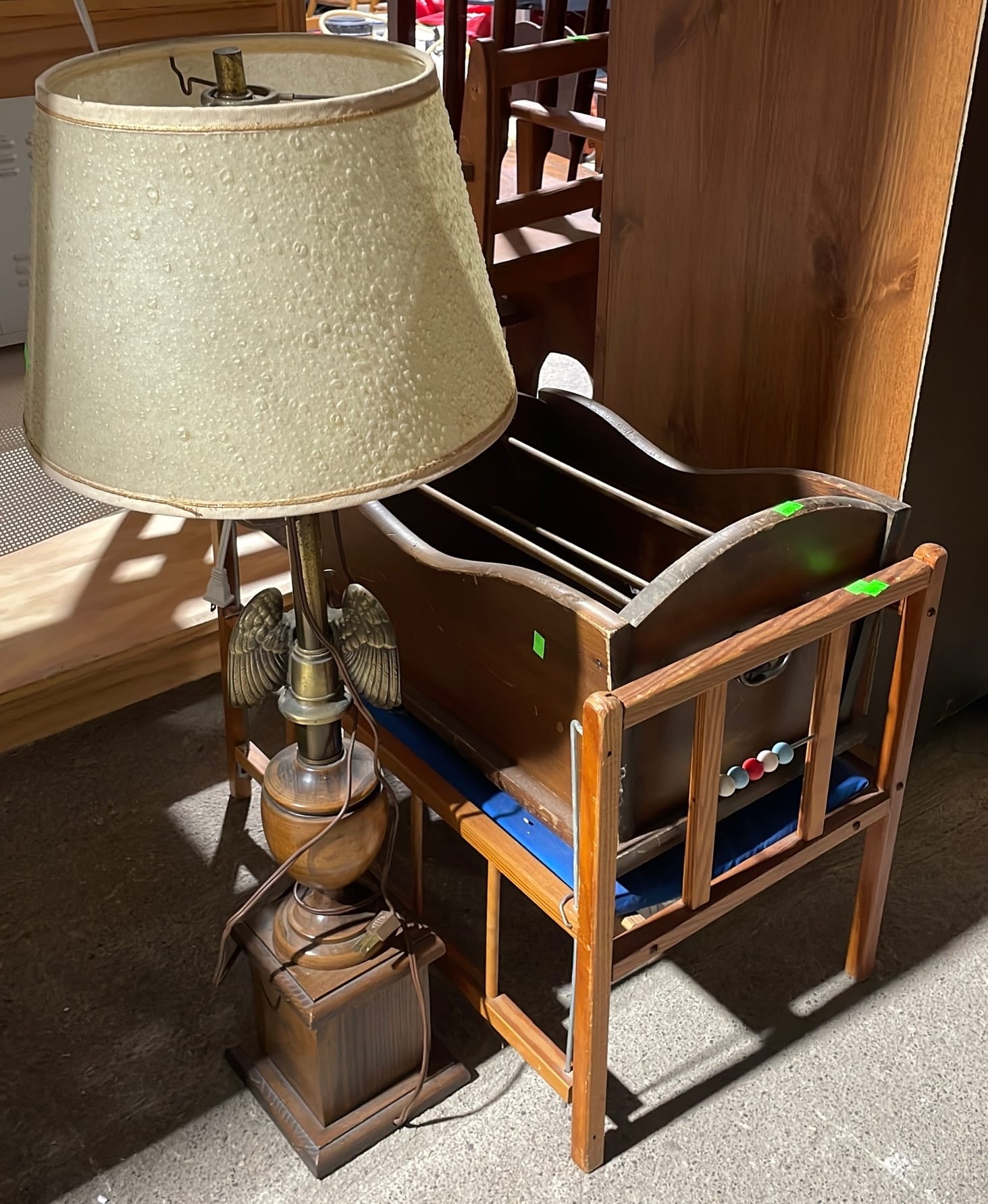 7231 Magazine rack 17", play crib 22.5" & table lamp 30"