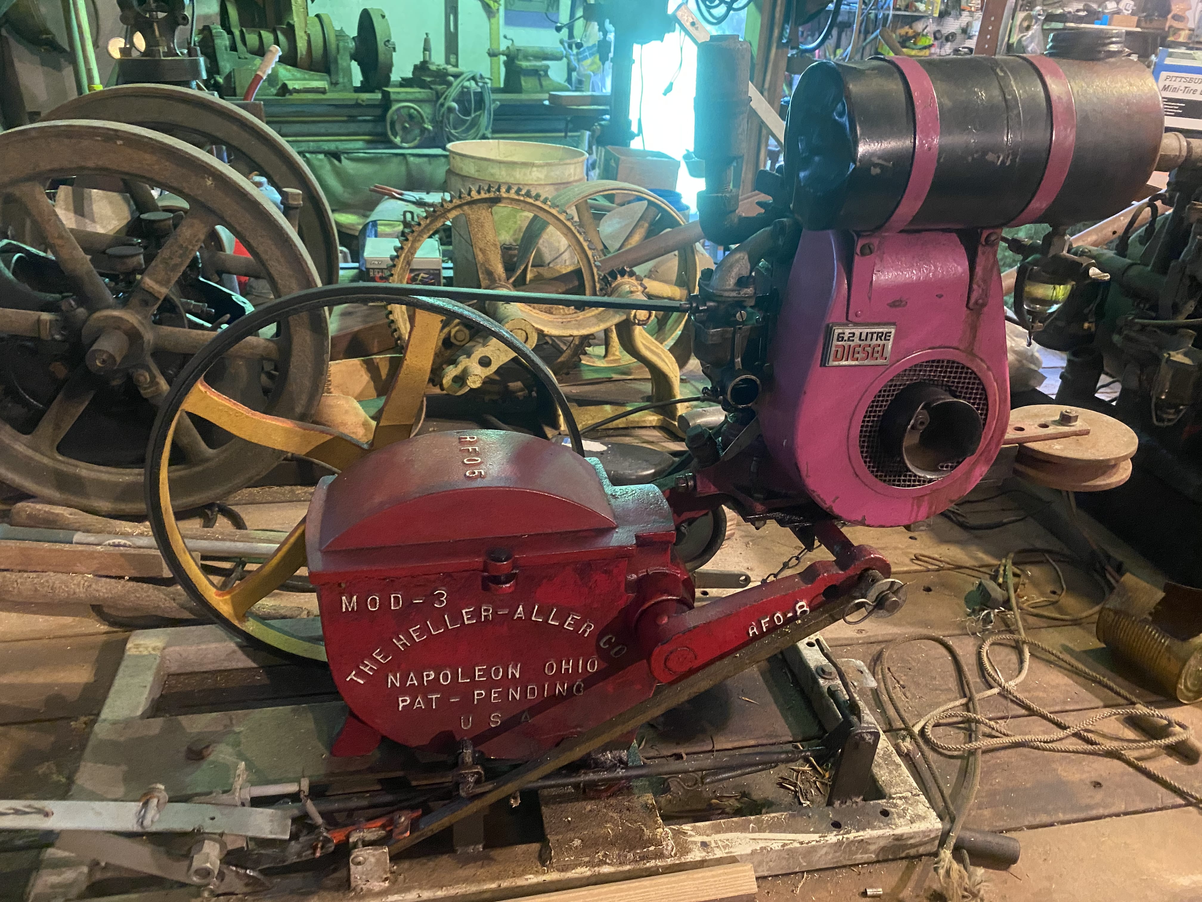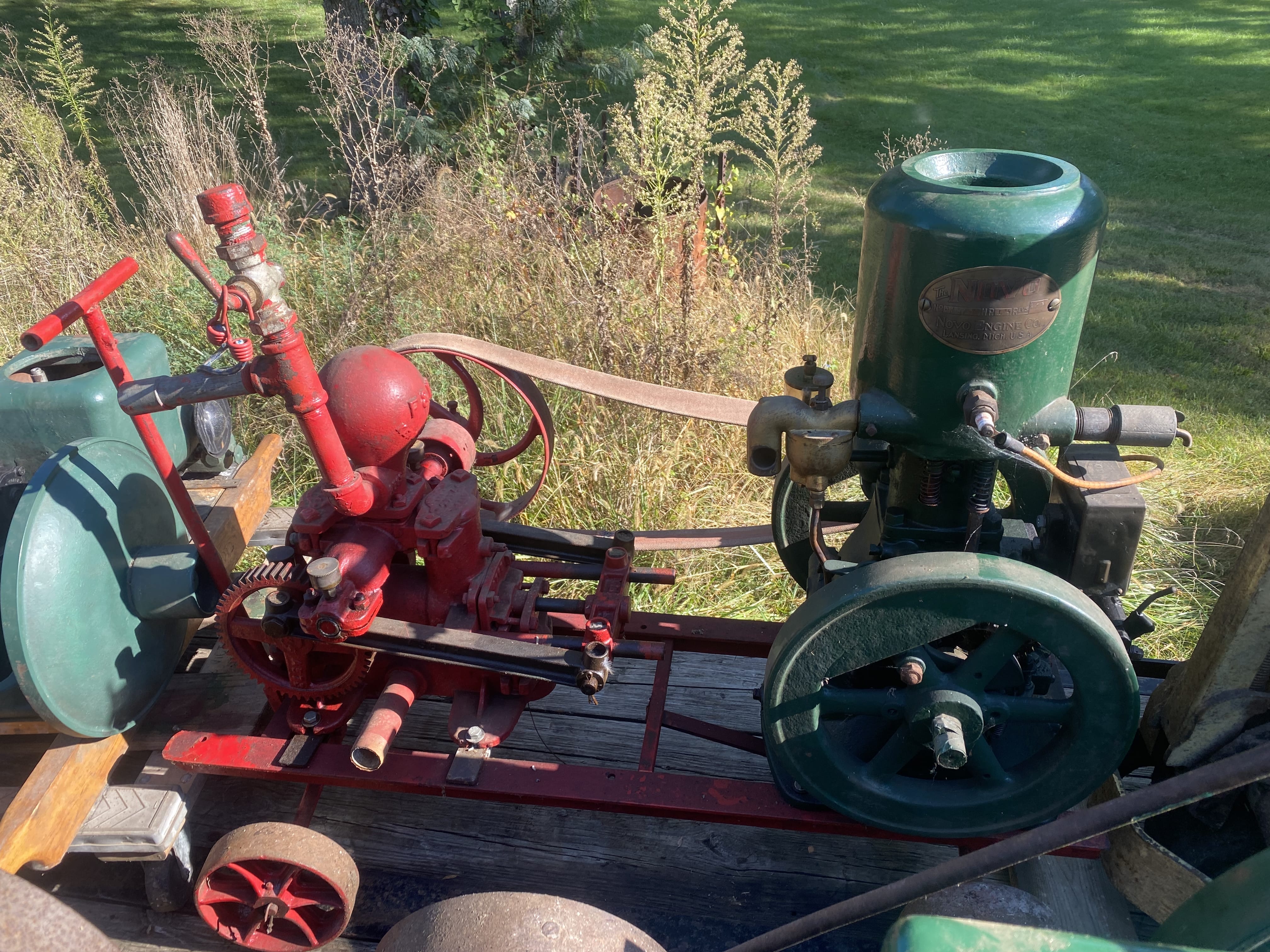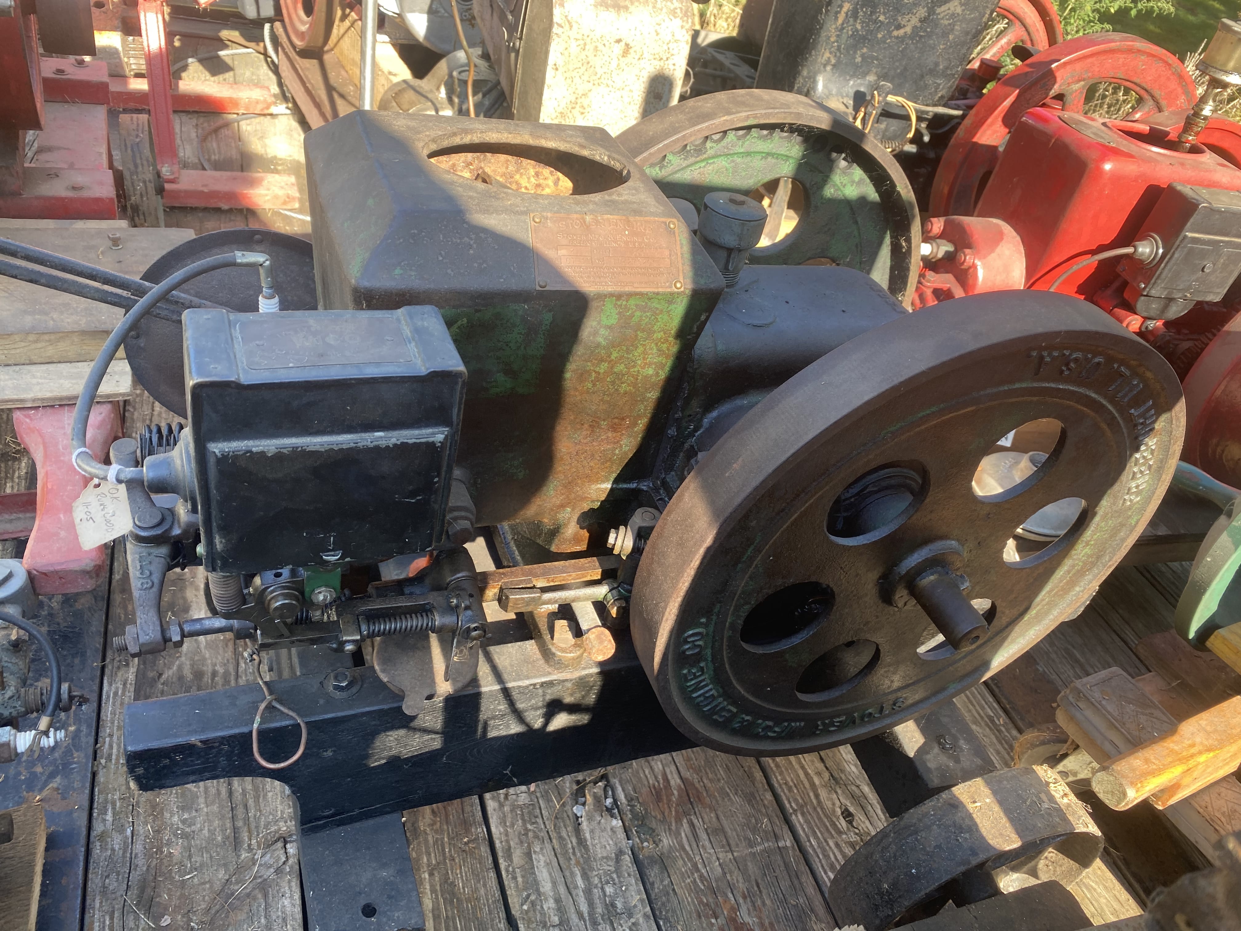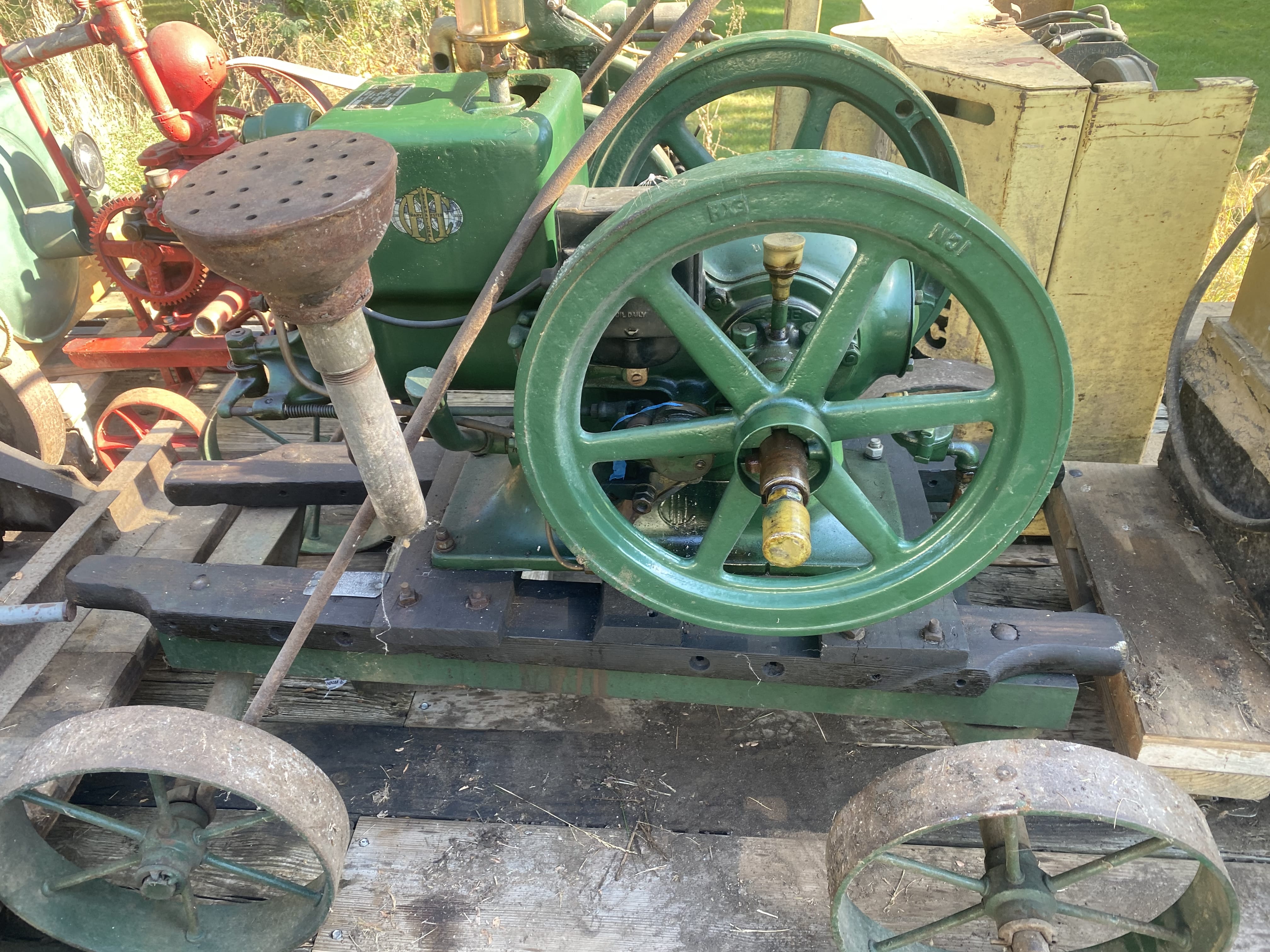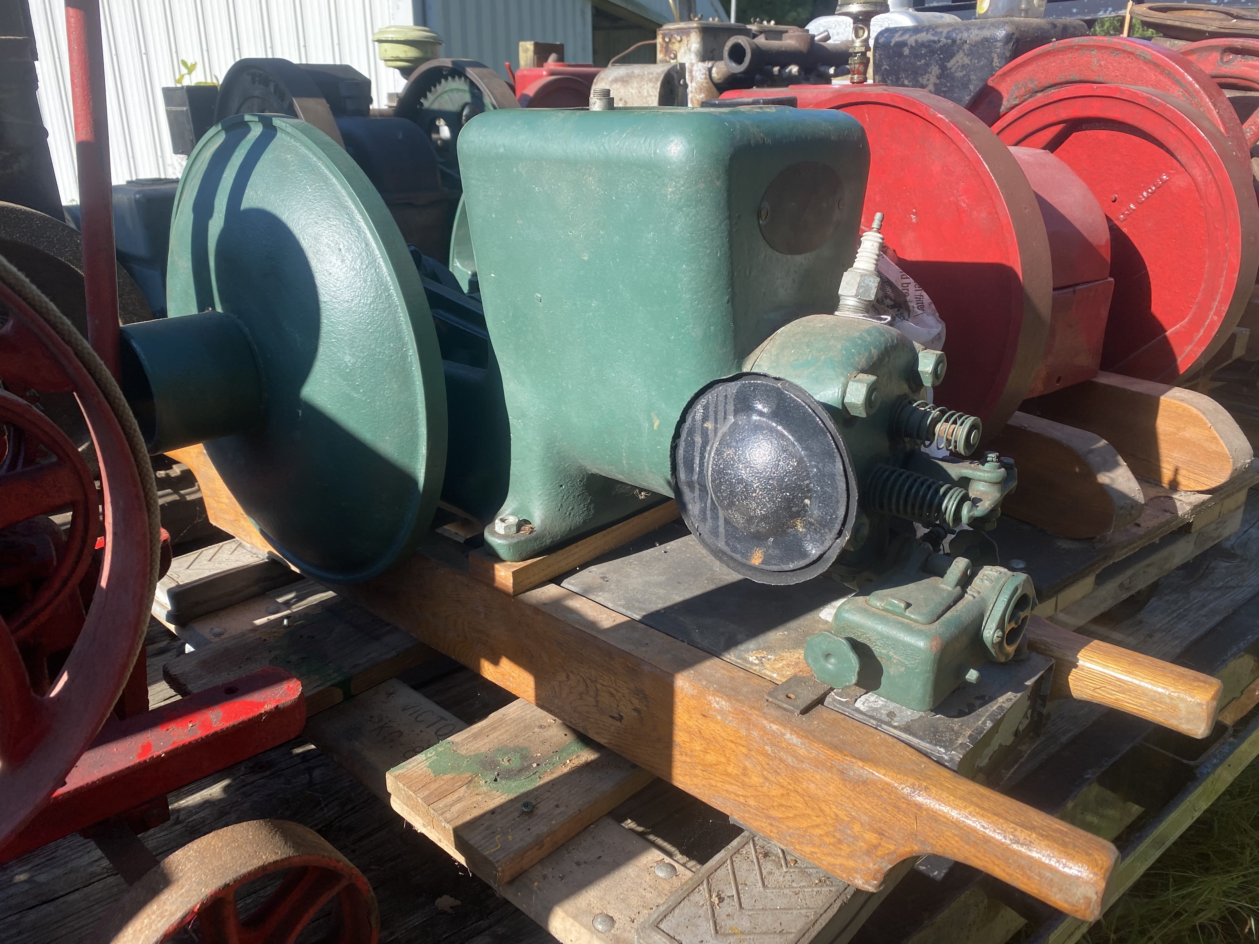 1918 Fairbanks Morse Headless 1 ½ HP; 1915 Fairbanks Morse Handy Jack 1 ½ HP; 1944 Fairbanks 2HP; 1922 Fairbanks Morse Z52 3HP; 1924 Fairbanks Morse Z Dishpan 1 ½ HP; Fairbanks Morse 3H; Fairbanks Morse Z on a truck; Fairmont 2-Cycle Motor Car; 1921 Hercules Webster Mag Ignitor 3HP; Farymann Diesel 20LES 365; Jaeger 3HP Hit & Miss Engine on Truck; McCormick Deering 1 ½ on Truck; IHC LB 1, 1 ½ -2 HP Engines; 1908 IHC 2HP Vertical Famous; 1930 IHC LB 3/6 HP; IHC LA & Pump Jack, 1 ½ HP; 1927 IHC M & Trucks 1 ½ HP; LB International Marine Engine; Breisch Olds Model; Economy 1 ½ HP; Satterly Montgomery Ward 1 ½ HP; Ideal 1HP on Cart; Upright Novo 1 ½ HP; The Heller-Aller Co. Md. 3; Stover CT1 2 HP; Ervin Model Hit & Miss Engine; Wisconsin AC 4 Engine; 1945 Kohler md. 1M21-U 1500-watt Electric Plant; Kohler Engines; Briggs& Stratton; Maytag Motors inc. Kick Start; 1935 Maytag Wringer Washer; Fuel Tank; IH Starters & Generators; Coleman Generator; Cast Iron 1 ½, 2, & 3 Grinders on Plank; Coffee/Grist Mill & Grinders; Enterprise Grinder; Keystone RR Grinder;