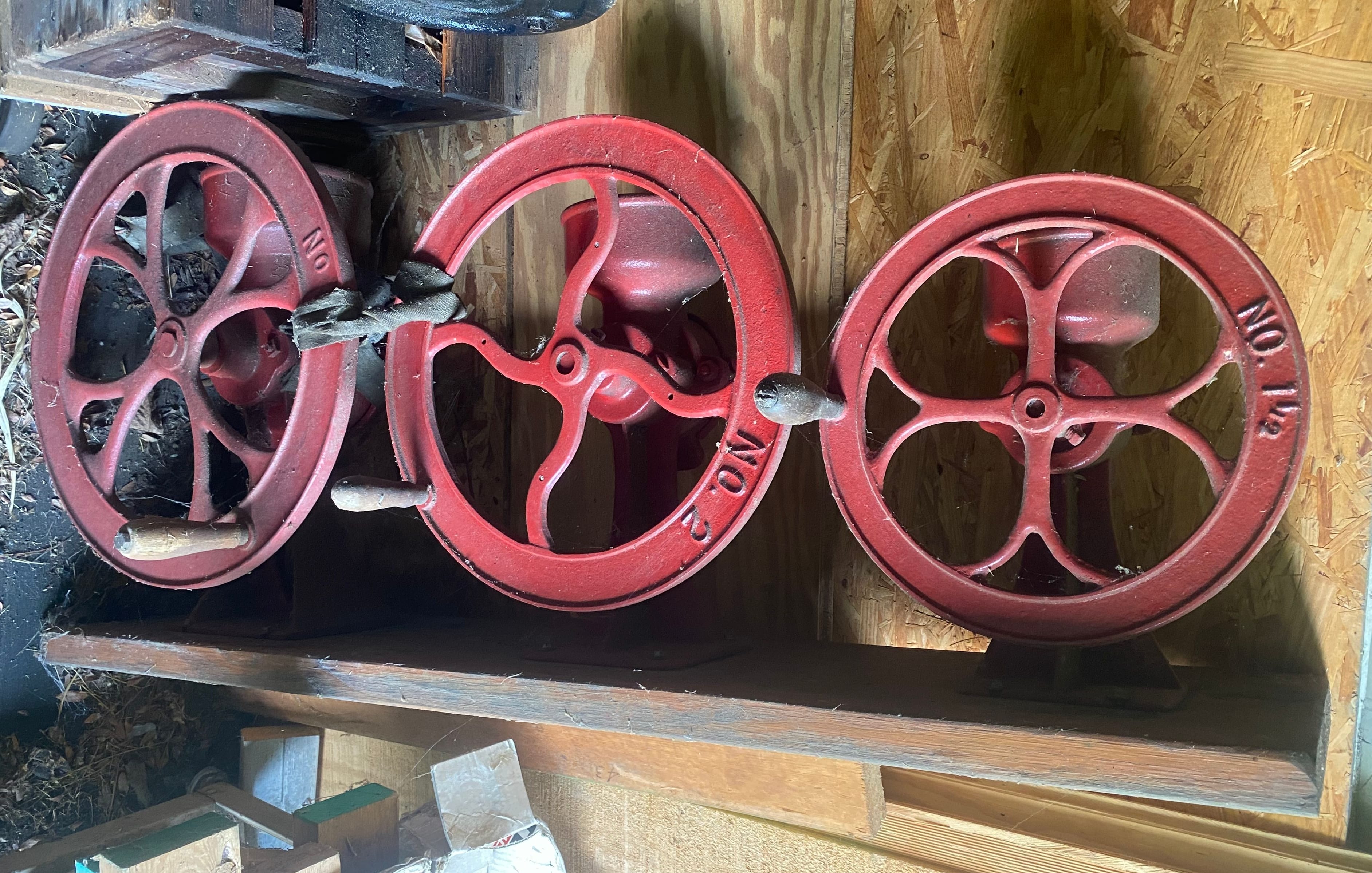 77 Cast Iron 1 ½, 2, & 3 Grinders on Plank