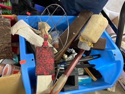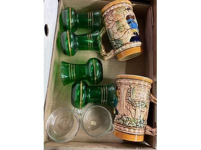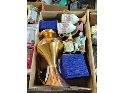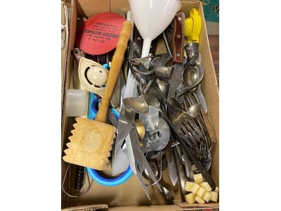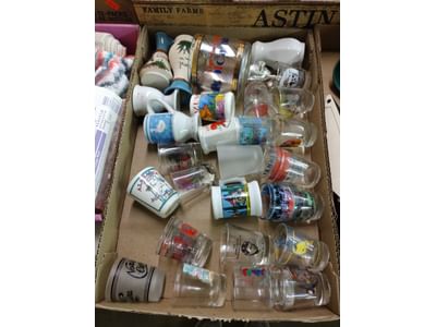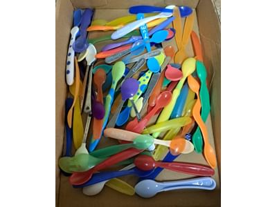 5000 Baby spoons, glass cordials, mugs, acrylic paint, misc
