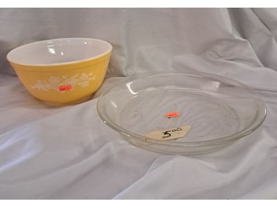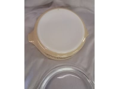 5042 Pyrex 9 inch pie plate, Pyrex butterfly gold mixing bowl 402 1.5 liter