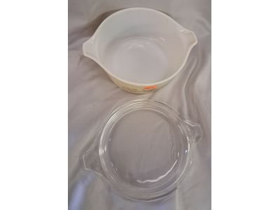 5046 Corningware country festival 1 quart dish with lid( chipped handle)