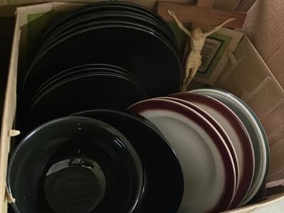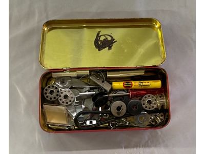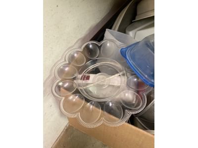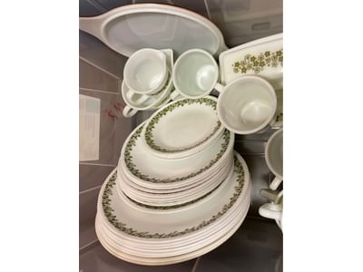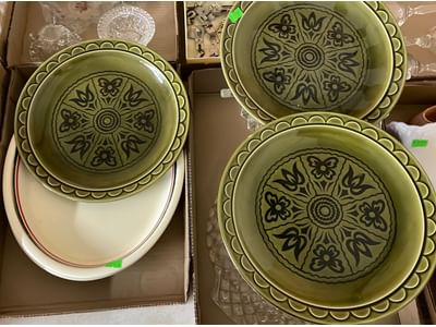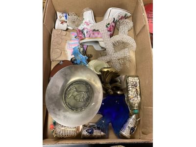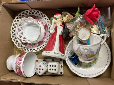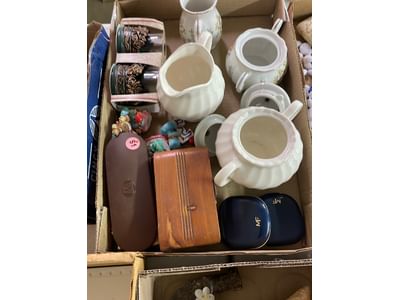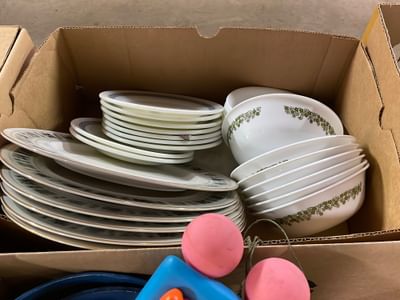 5076 Ceramic Dish and Glassware Assortment Including Sewing Machine Attachments
