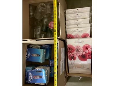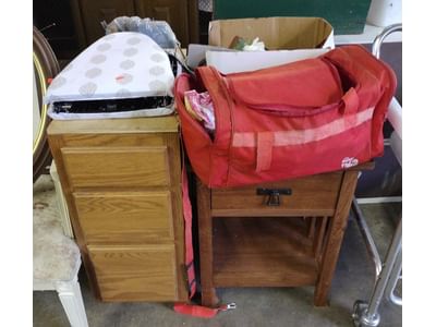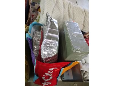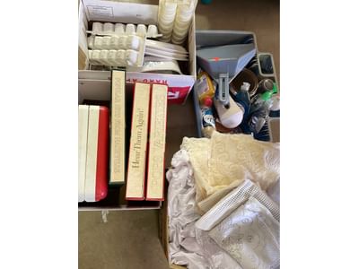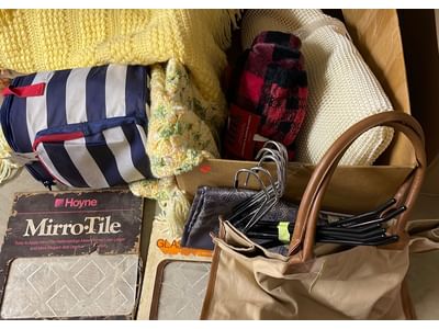 5080 Household Assortment Including Wine Cooler, Afghans, Throw, Carpet Underlayment, Mirror Tiles, Canvas Bag and Hanging File Folders