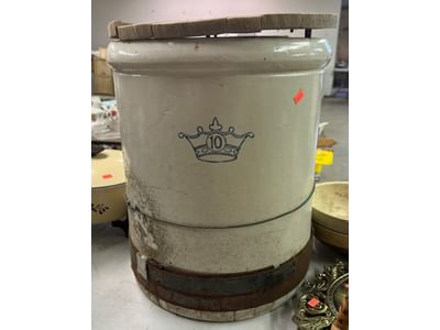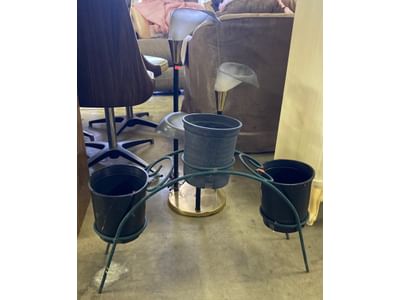 6188 Stool 14"x16", bucket with contents, planter 9"x18"