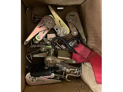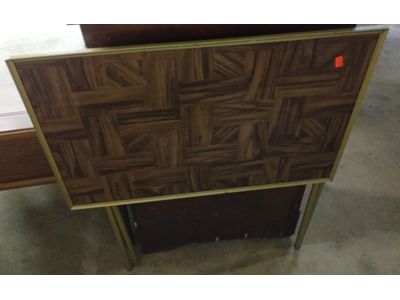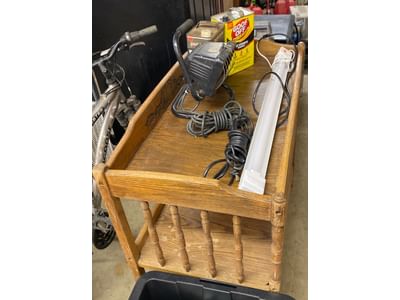 6207 Hardware assortment, folding ironing board, end table 16"x24", cabinet section 13"x31"