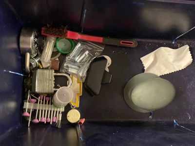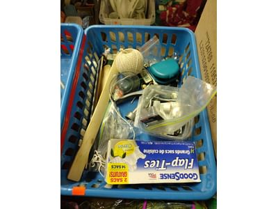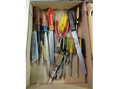5004 Knife assortment, mugs, Ryobi drill gun, seed assortment