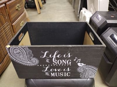 6151 Crate with twin comforter, totes, decorative wall hanging