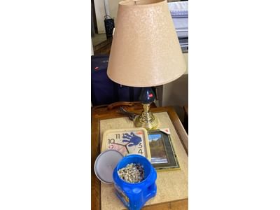 6190 Garden box 8"x21", trash baskets, tea light decor, table lamps 32"