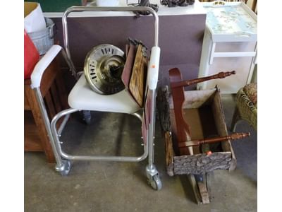 6206 Wheelbarrow garden decor, ceiling fan, rolling commode