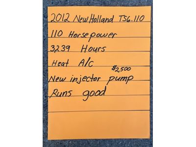 7 2012 New Holland RS6.110, 110 HP, 3,239 Hours, Heat and AC, New Injector Pump Runs Good - PICK UP AT ALTERNATE WARSAW LOCATION