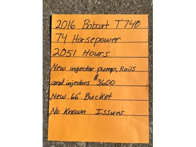 8 2016 Bobcat T740 740 HP 2051 Hours, with 66” Tomahawk Bucket, New Injector Pump, Injectors, and Rails, Runs Good - PICK UP AT ALTERNATE WARSAW LOCATION