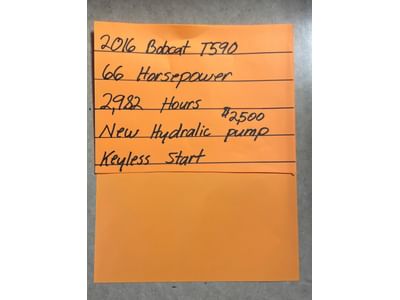 10 2016 Bobcat T590 66 HP 2,982 Hours New Hydraulic Pump Keyless Start with 67” bucket Runs Good - PICK UP AT ALTERNATE WARSAW LOCATION