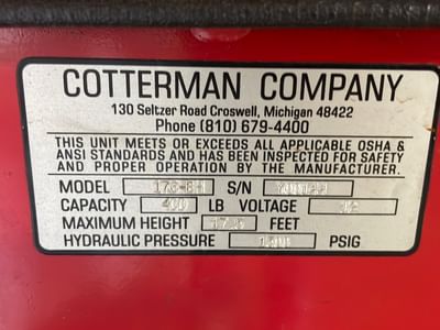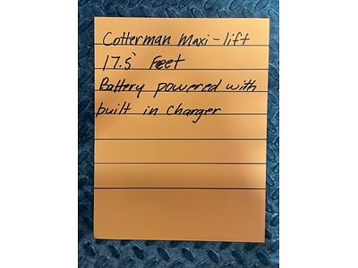 11 Cotterman Maxi Lift Model 175-BH 17.5’ Rise, Battery Powered with Built in Charger - PICK UP AT ALTERNATE WARSAW LOCATION