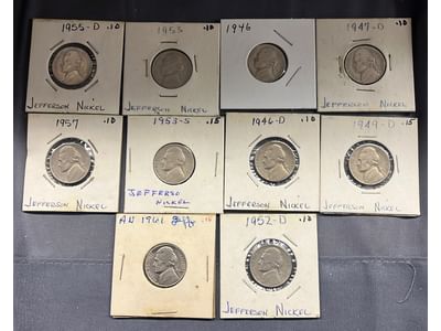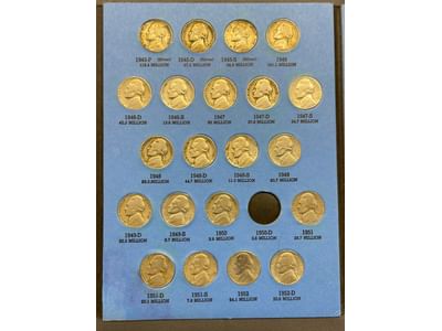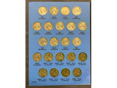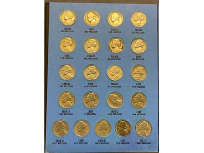 5 1938-1961 Jefferson Nickel Collection Folder (64 Coins)