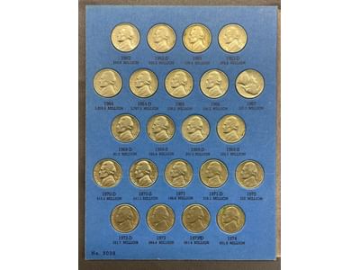 6 1962-1995 Jefferson Nickel Collection Folder (64 Coins)