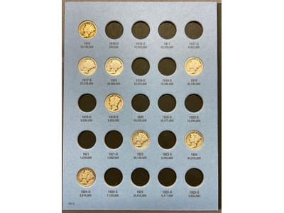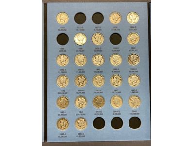 8 1916-1945 Mercury Dime Collection Folder (39 Coins)