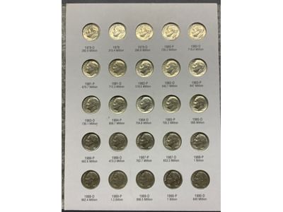9 1965-2003 Roosevelt Dime Collection Folder (75 Coins)