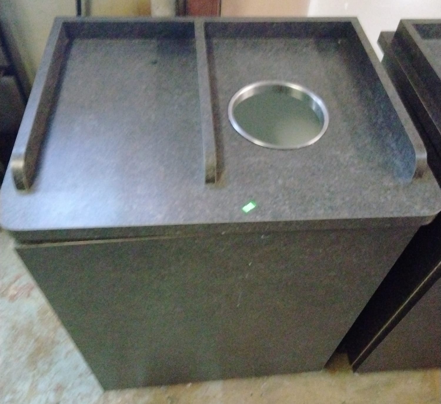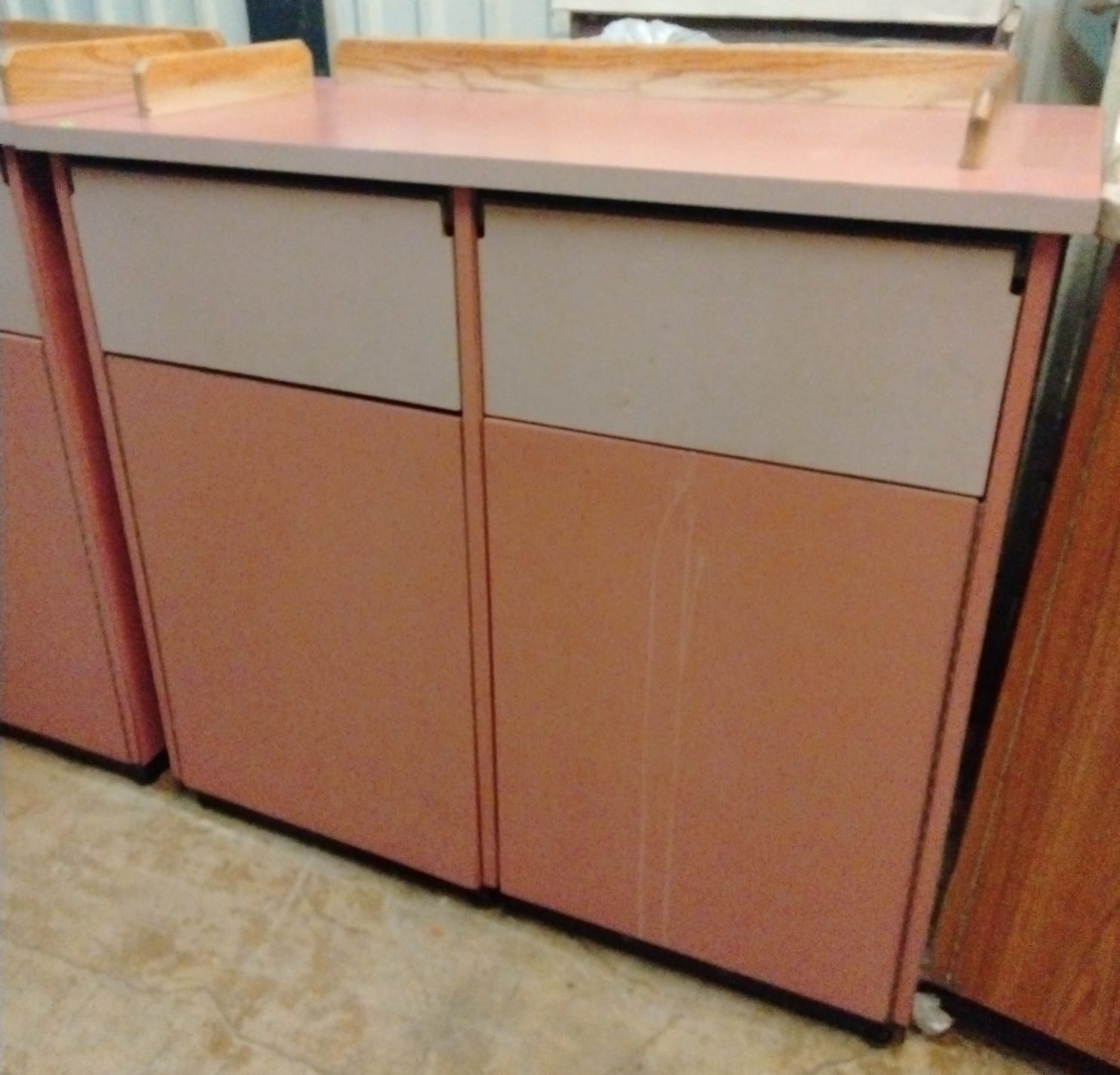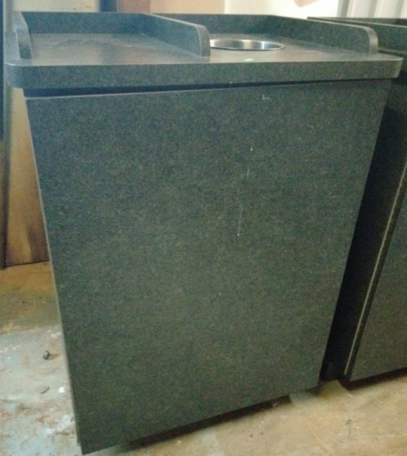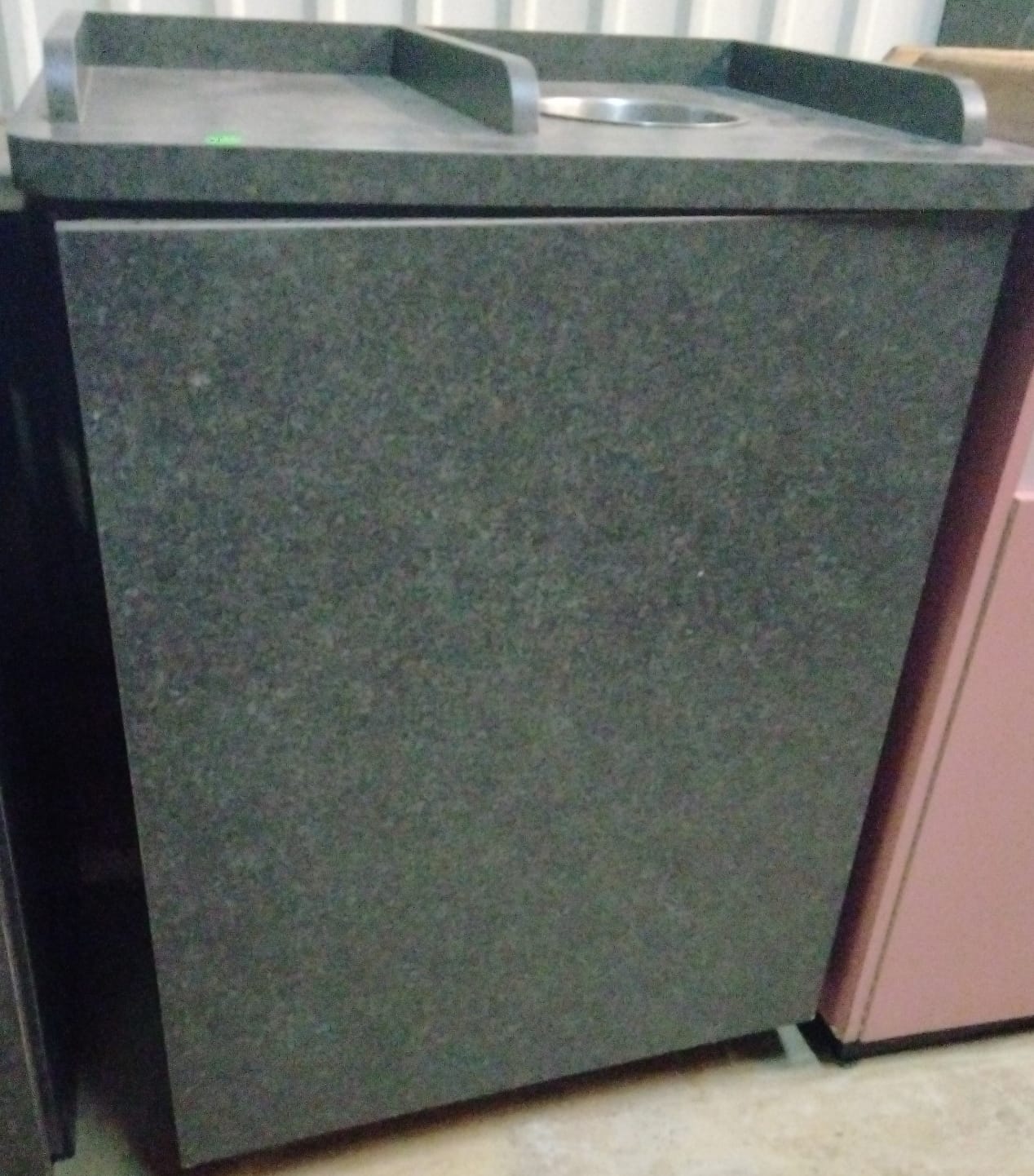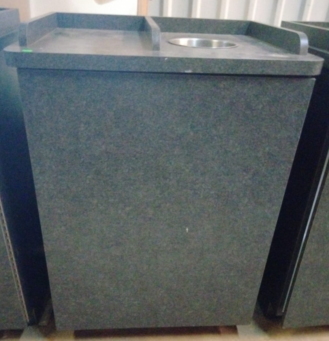107 Tray counter with trash receptacles 24x47x47 door needs repaired