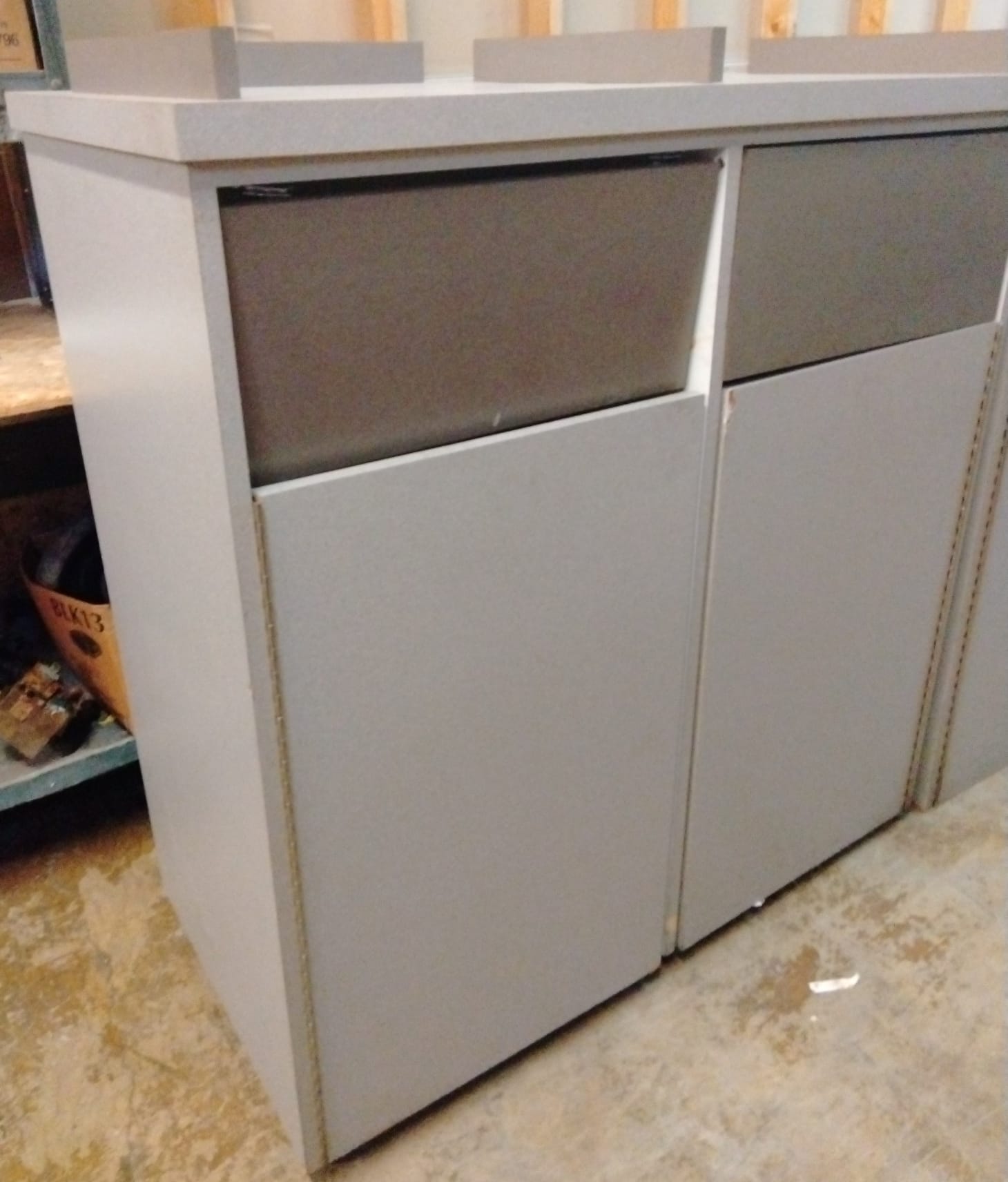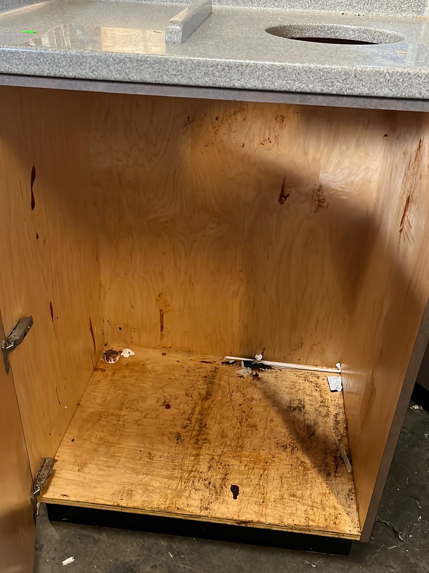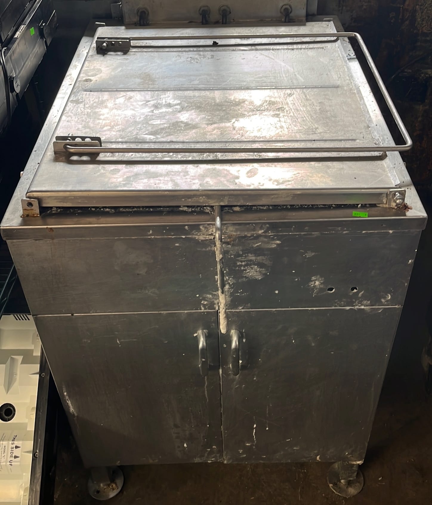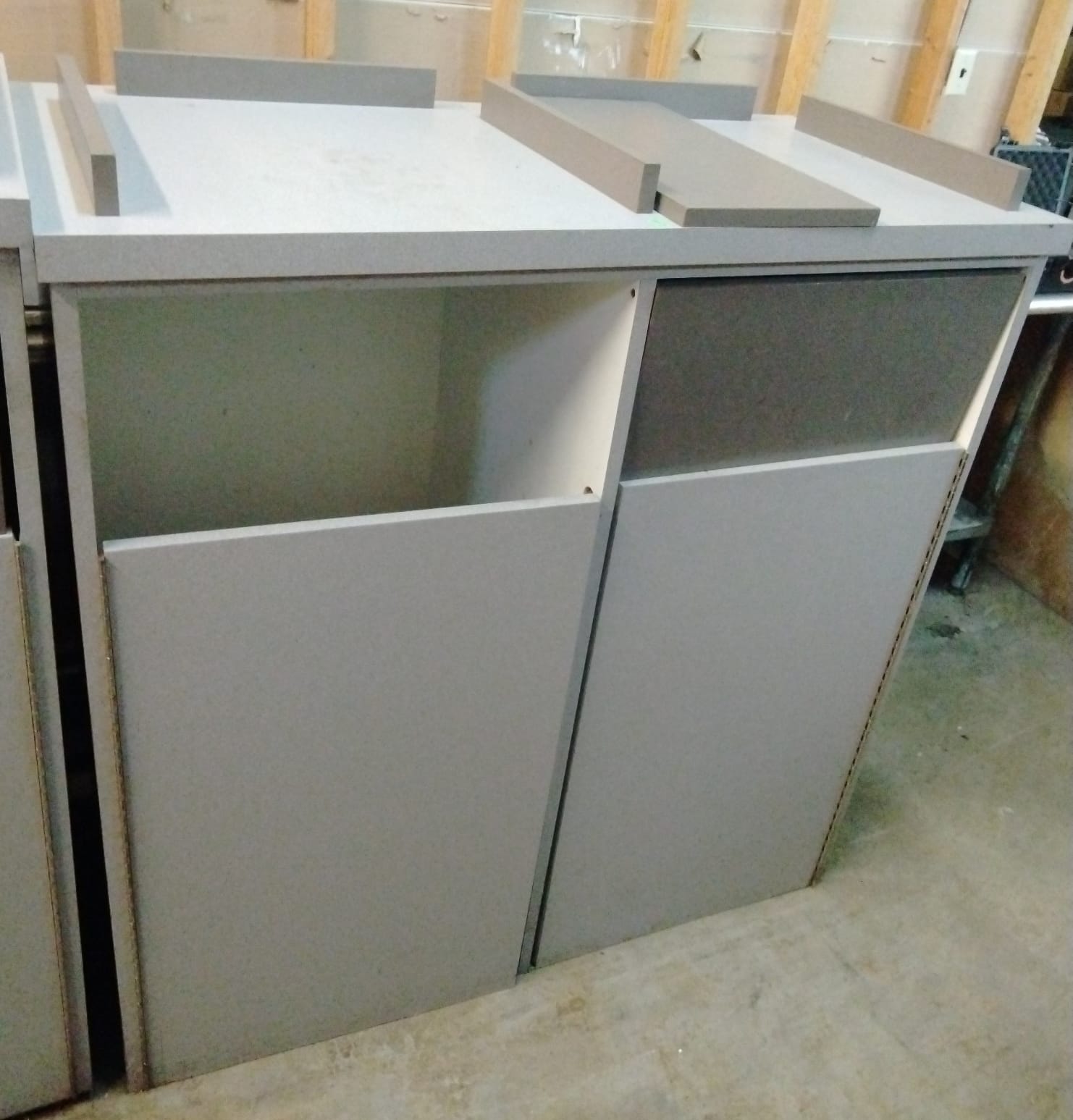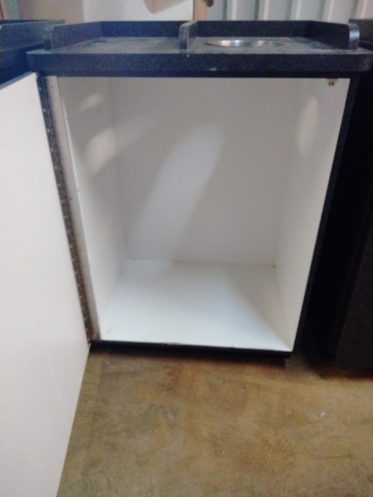 107 Tray counter with trash receptacles 24x47x47 door needs repaired