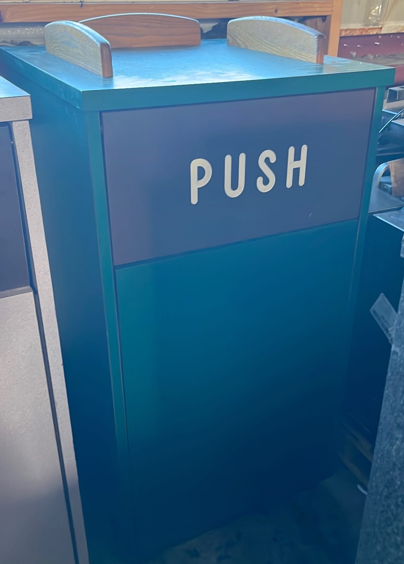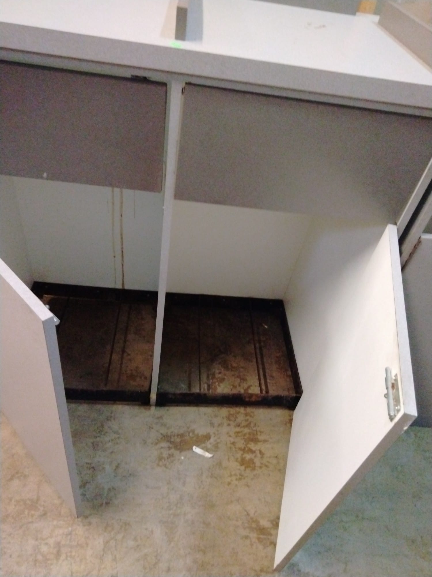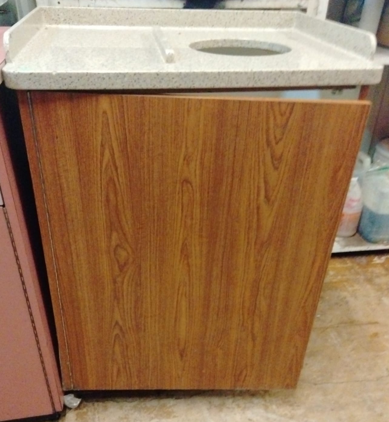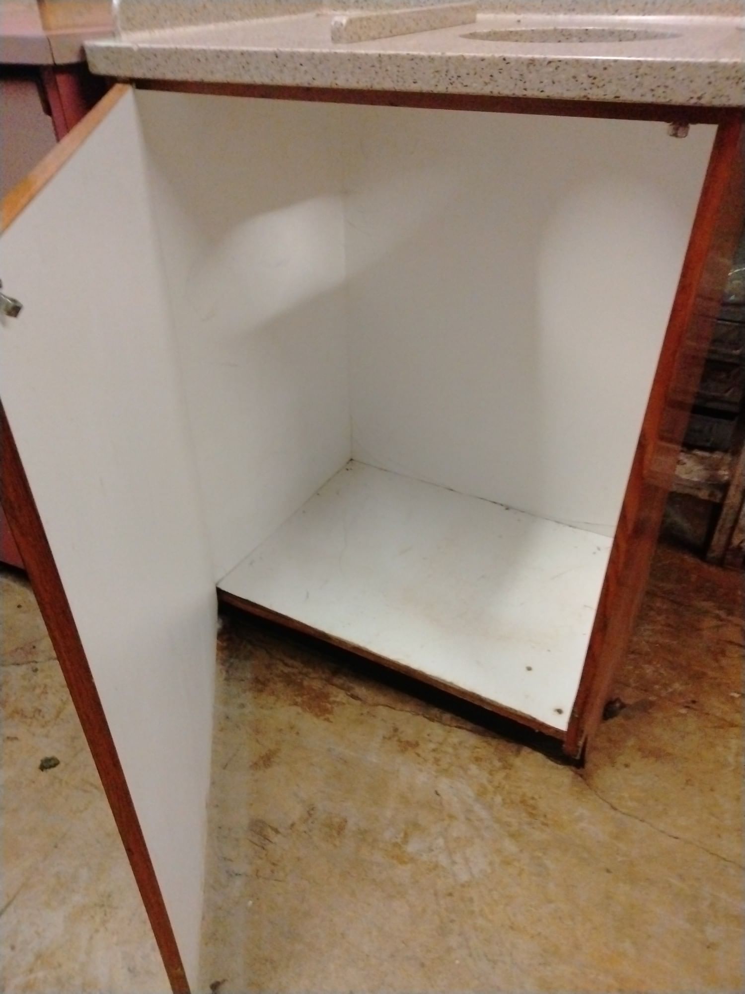 107 Tray counter with trash receptacles 24x47x47 door needs repaired