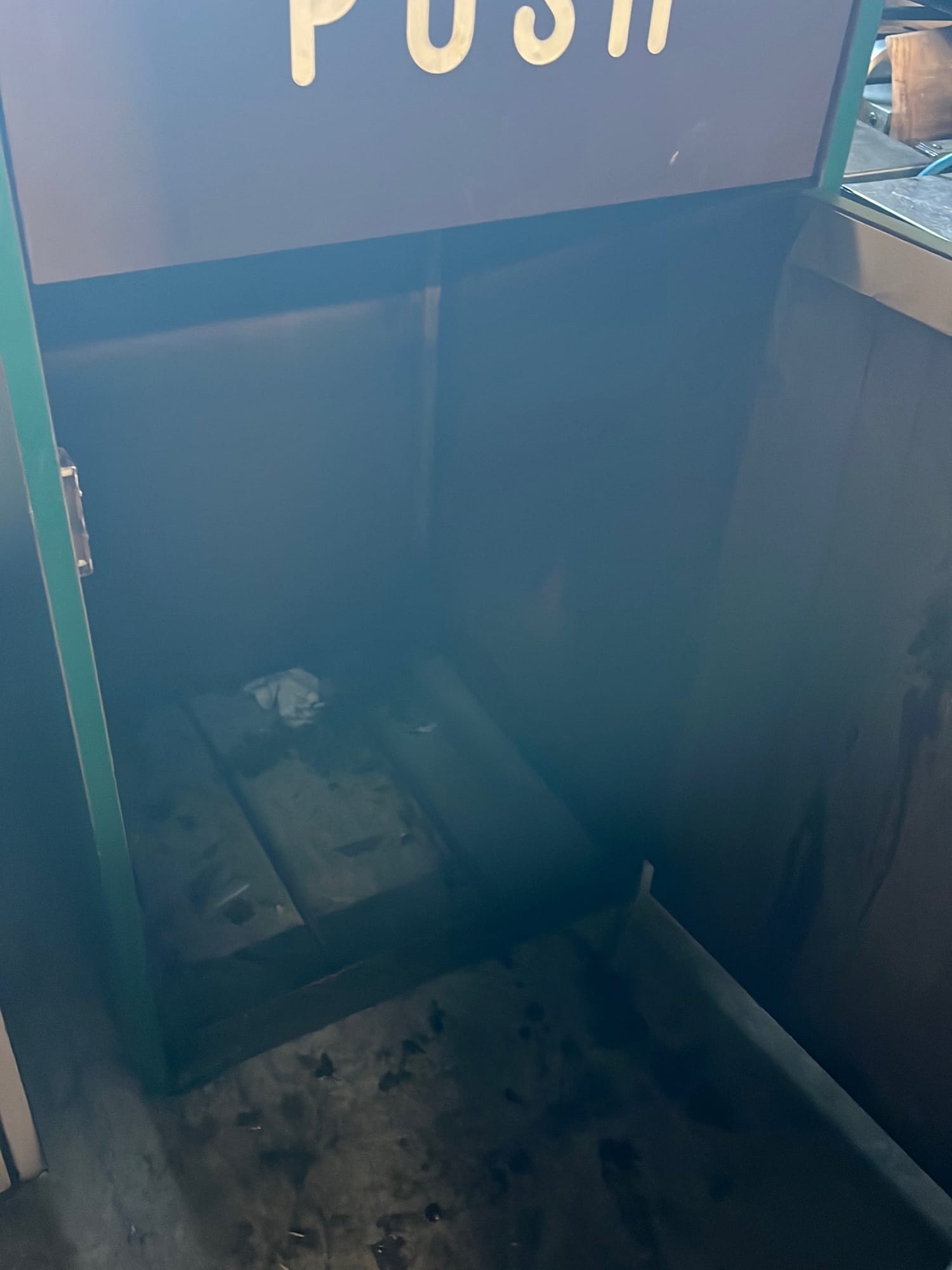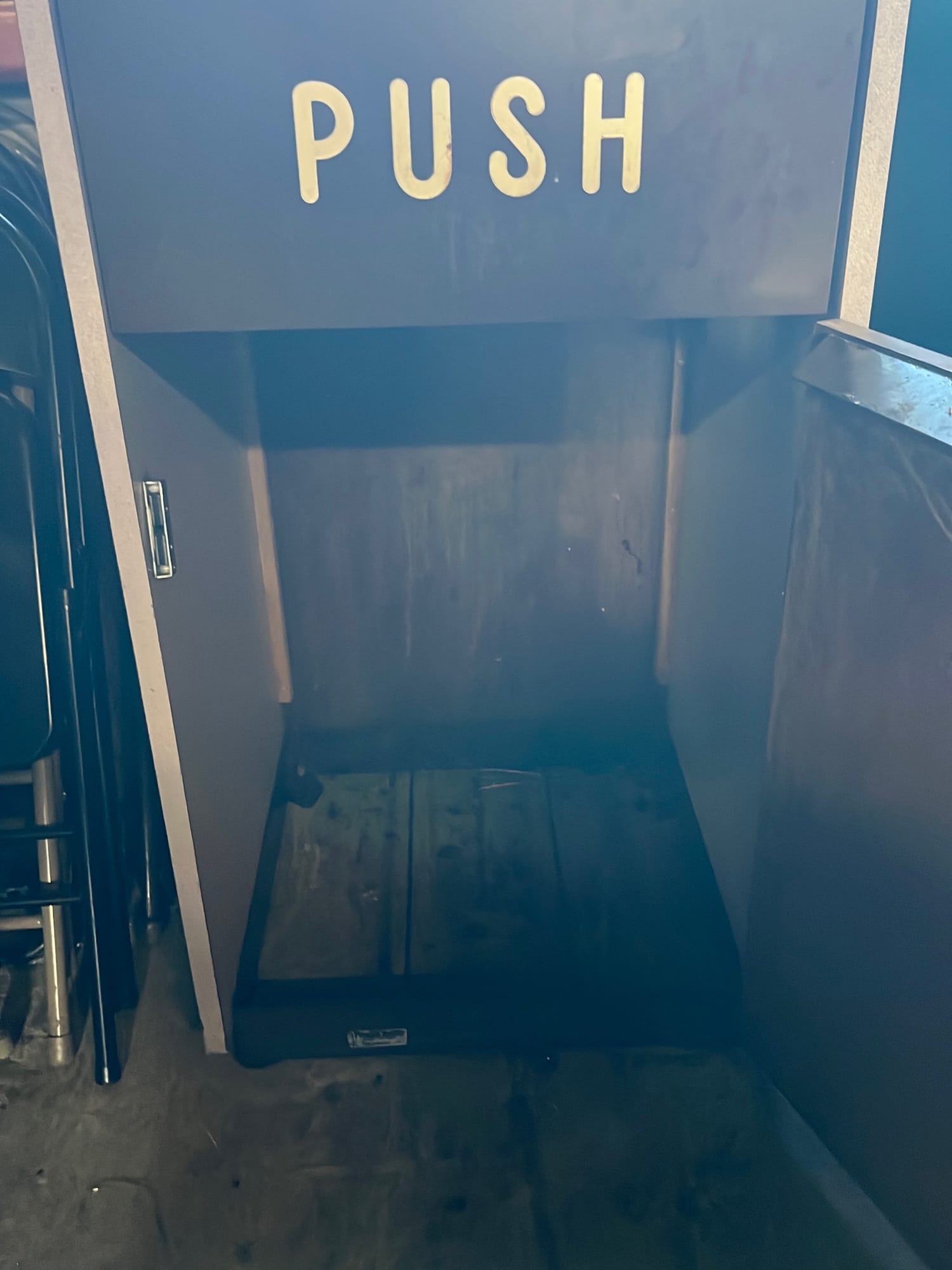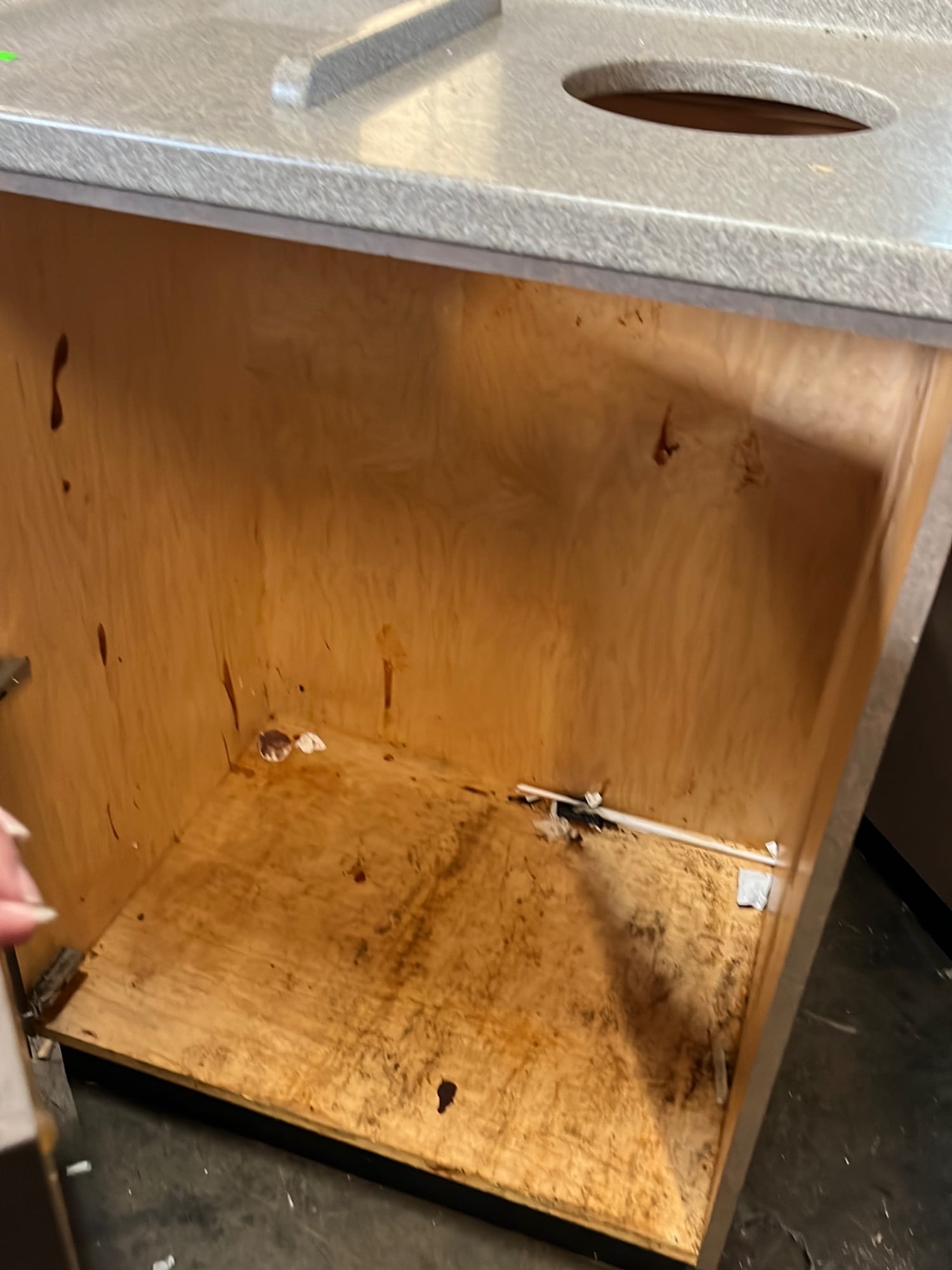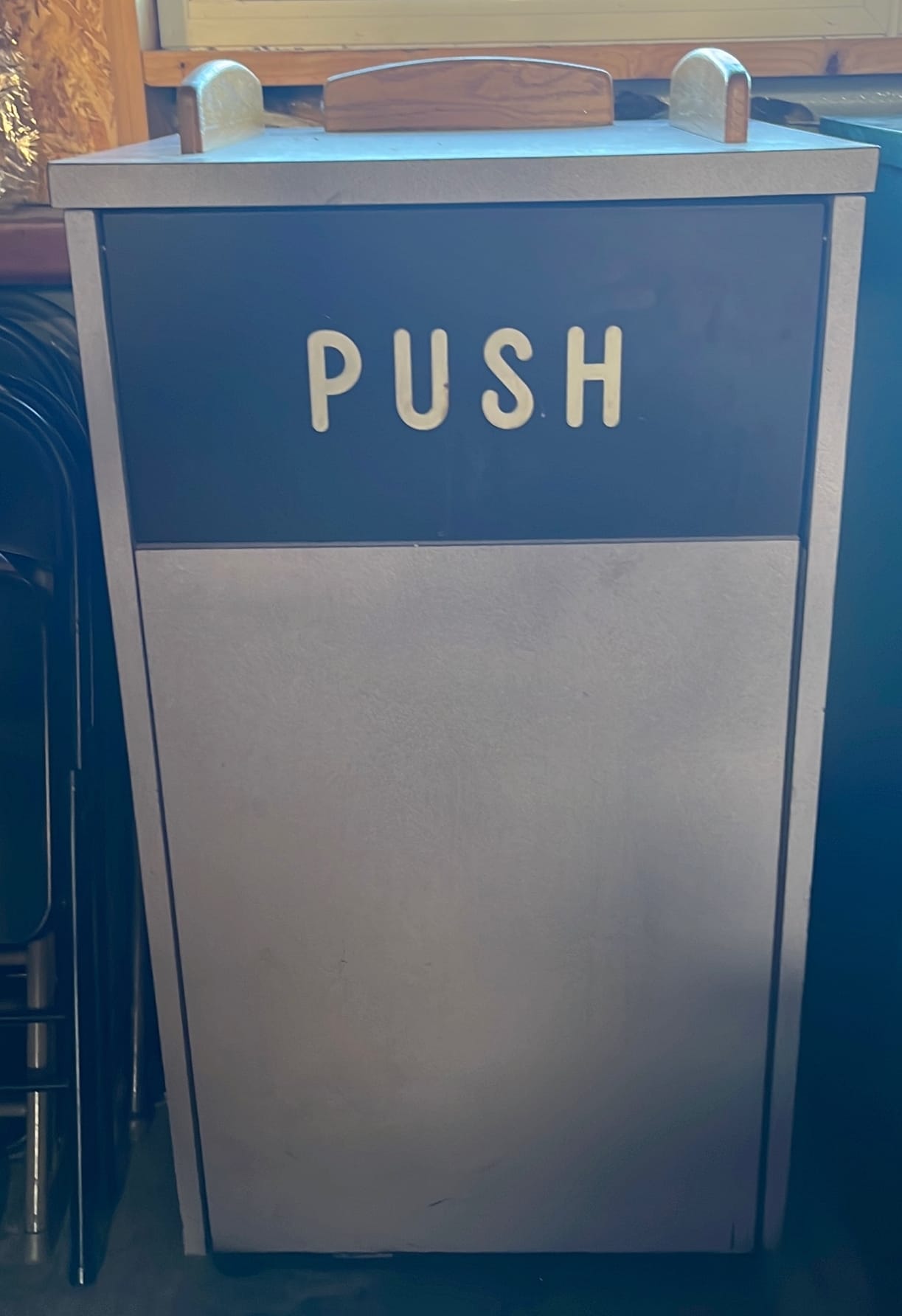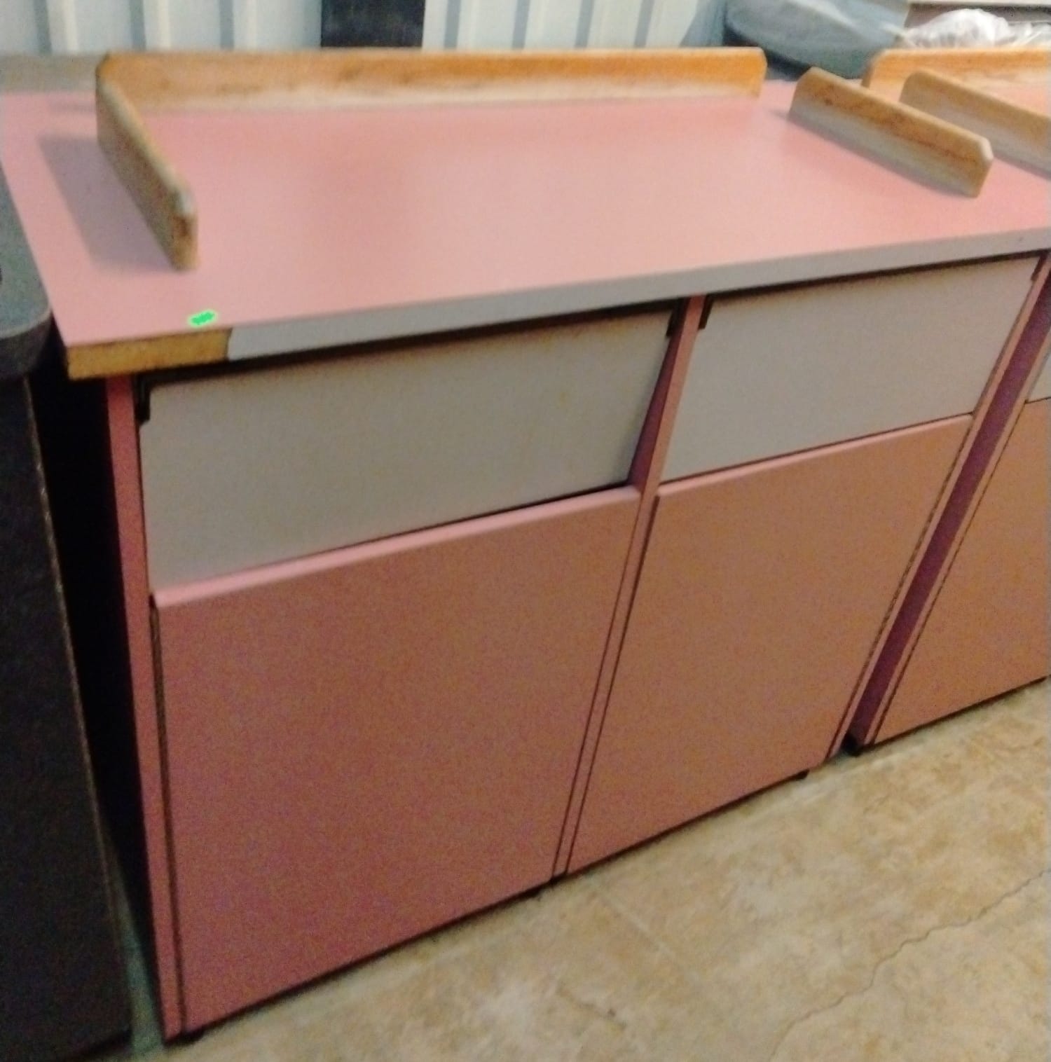 107 Tray counter with trash receptacles 24x47x47 door needs repaired