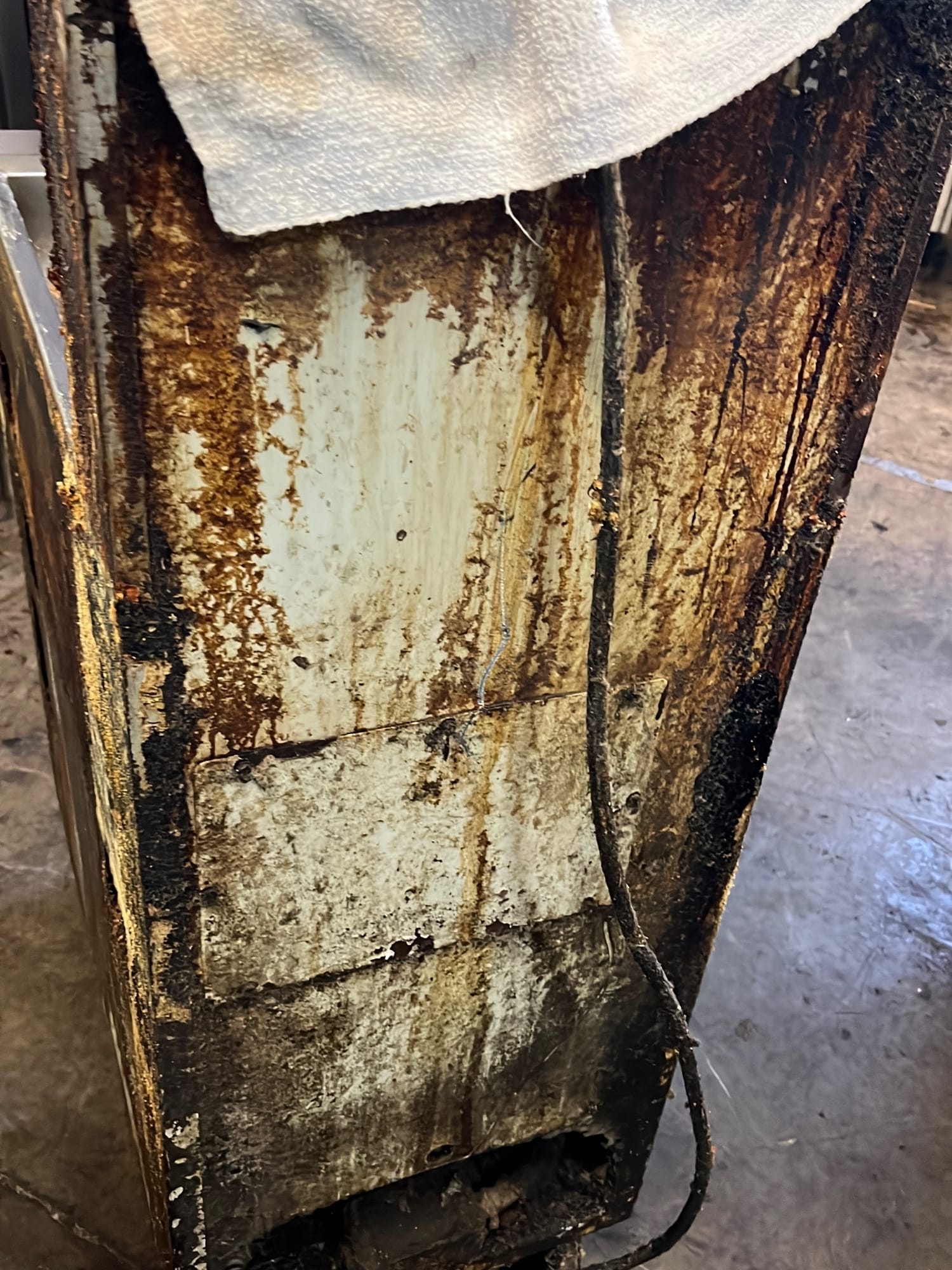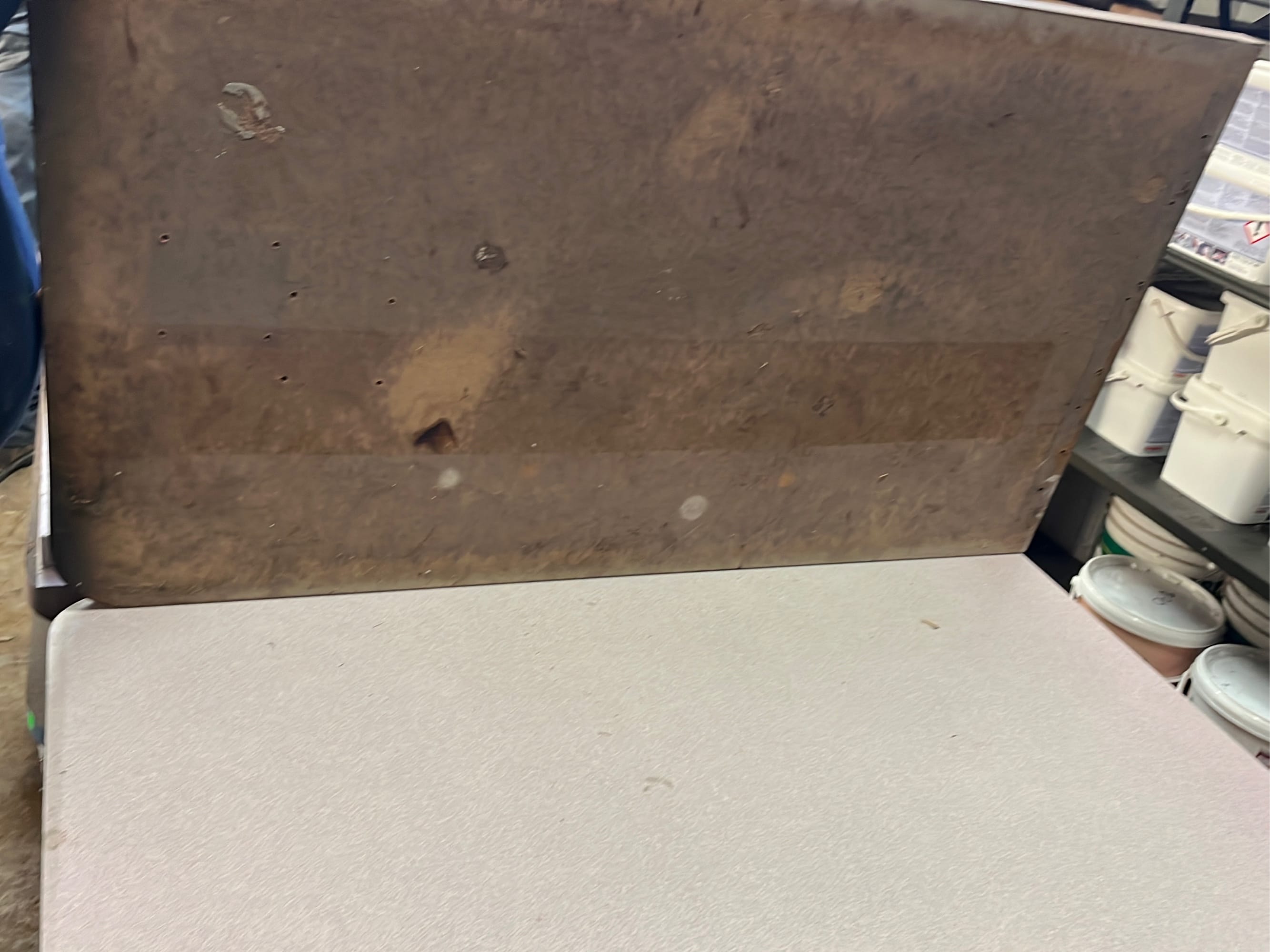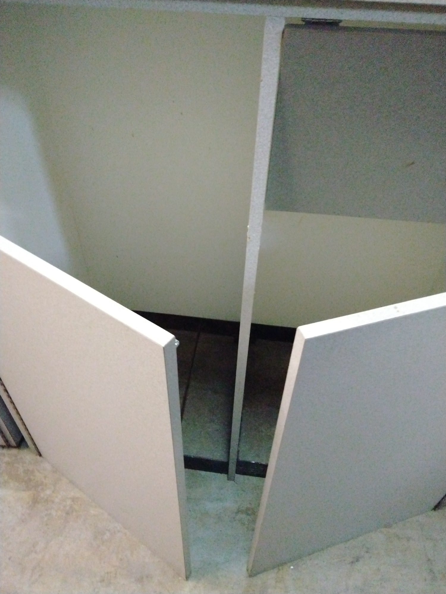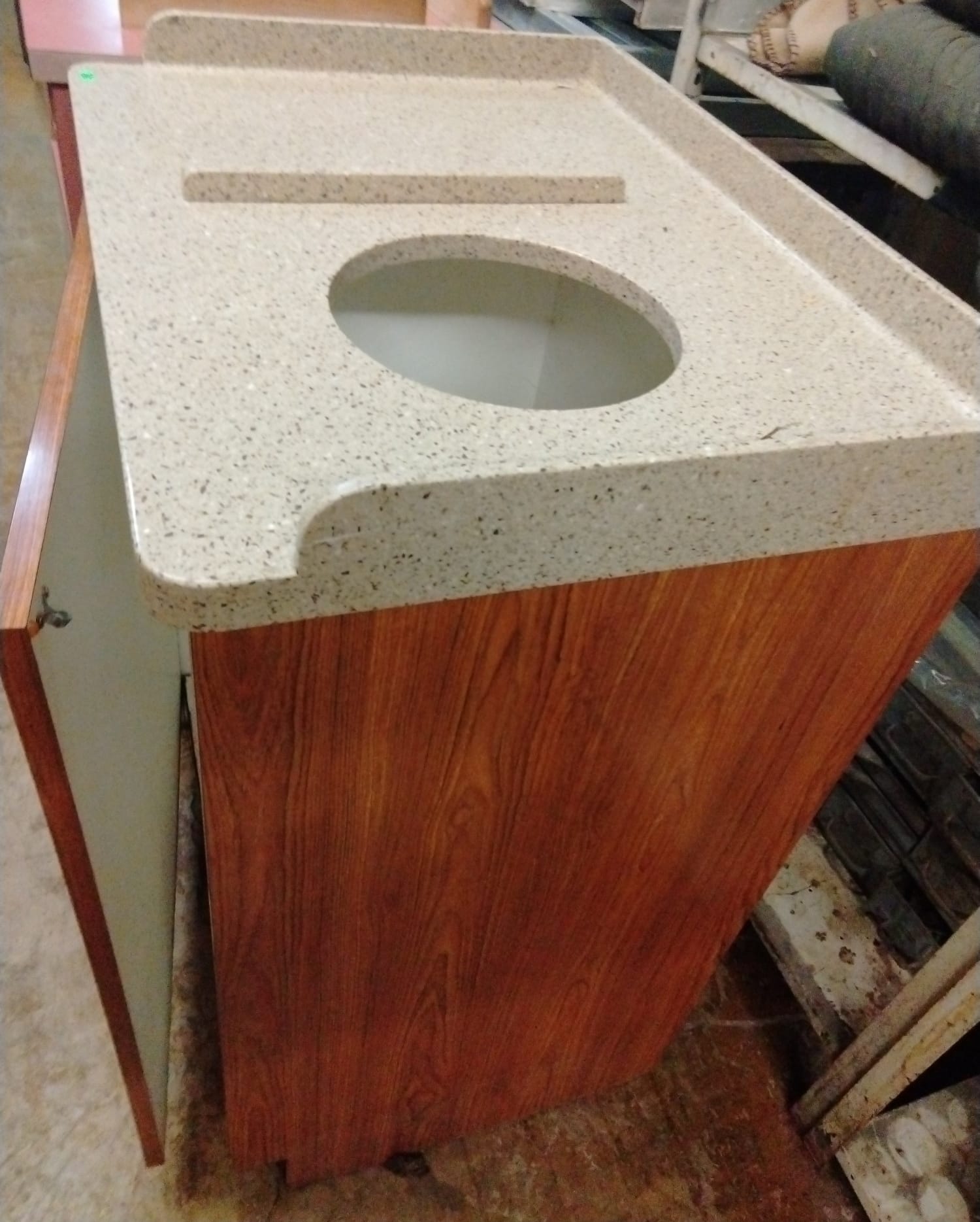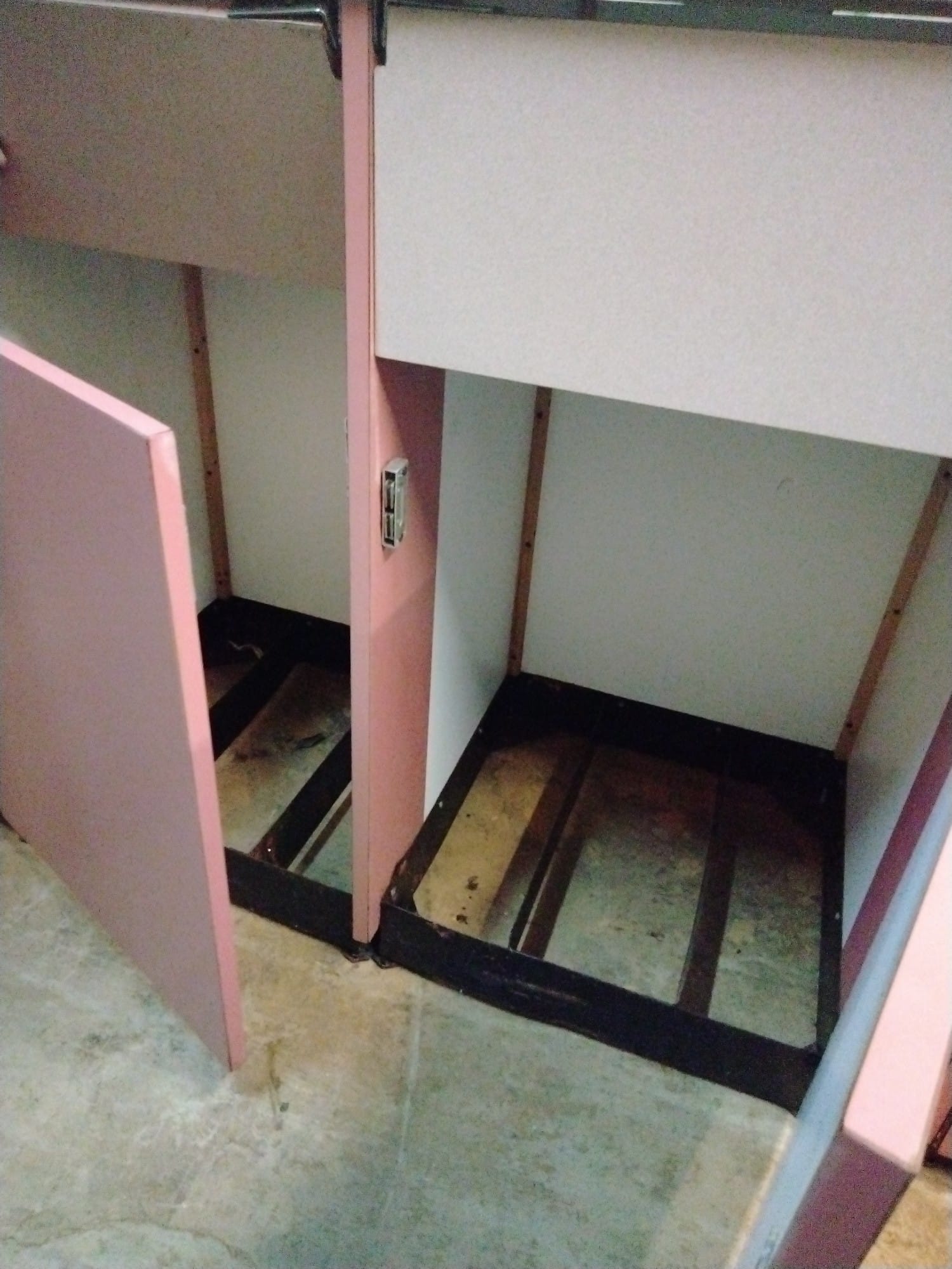 107 Tray counter with trash receptacles 24x47x47 door needs repaired