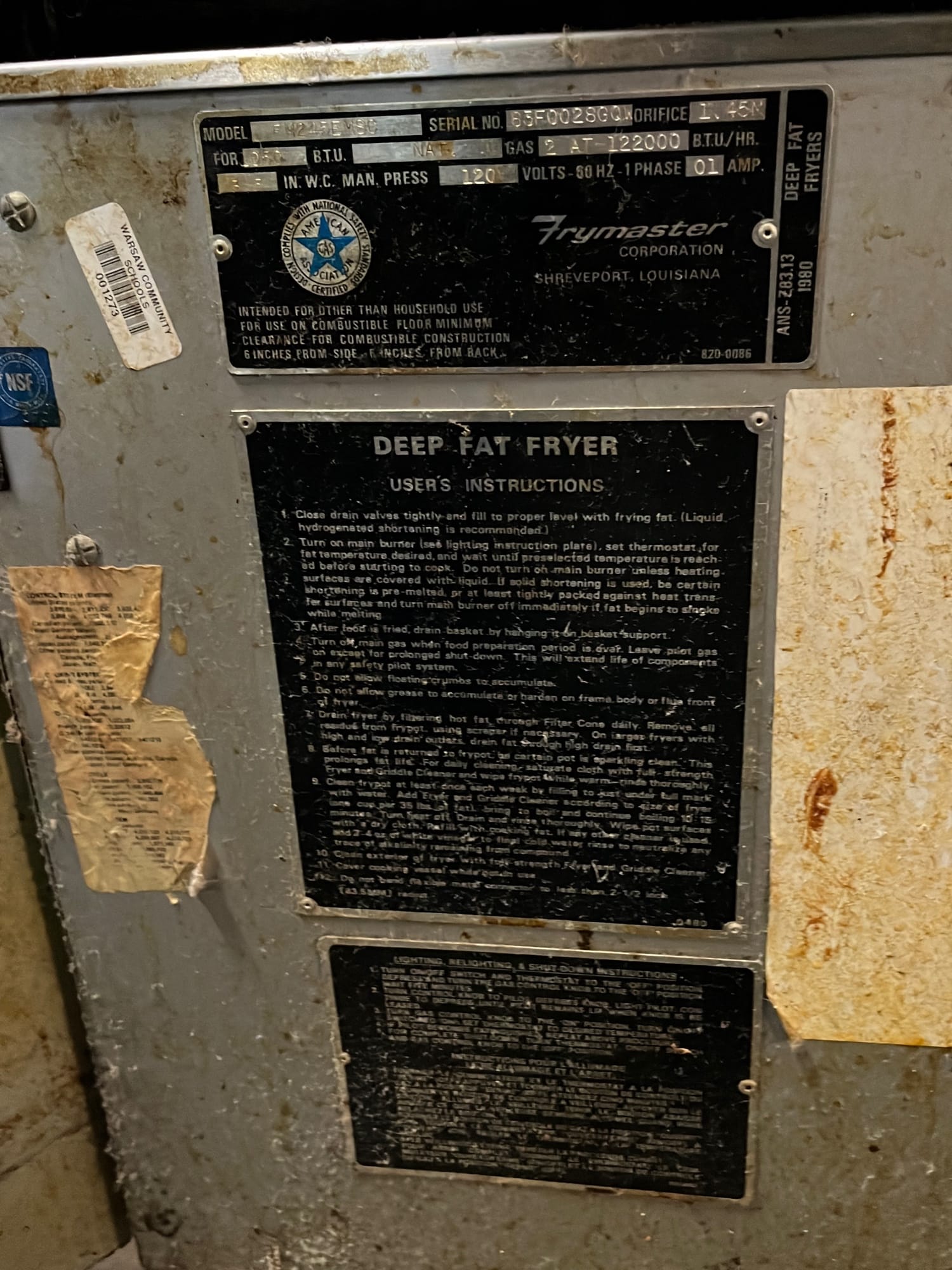 155 Winston Chicken pressure fryer model collectramatic 20x28x46