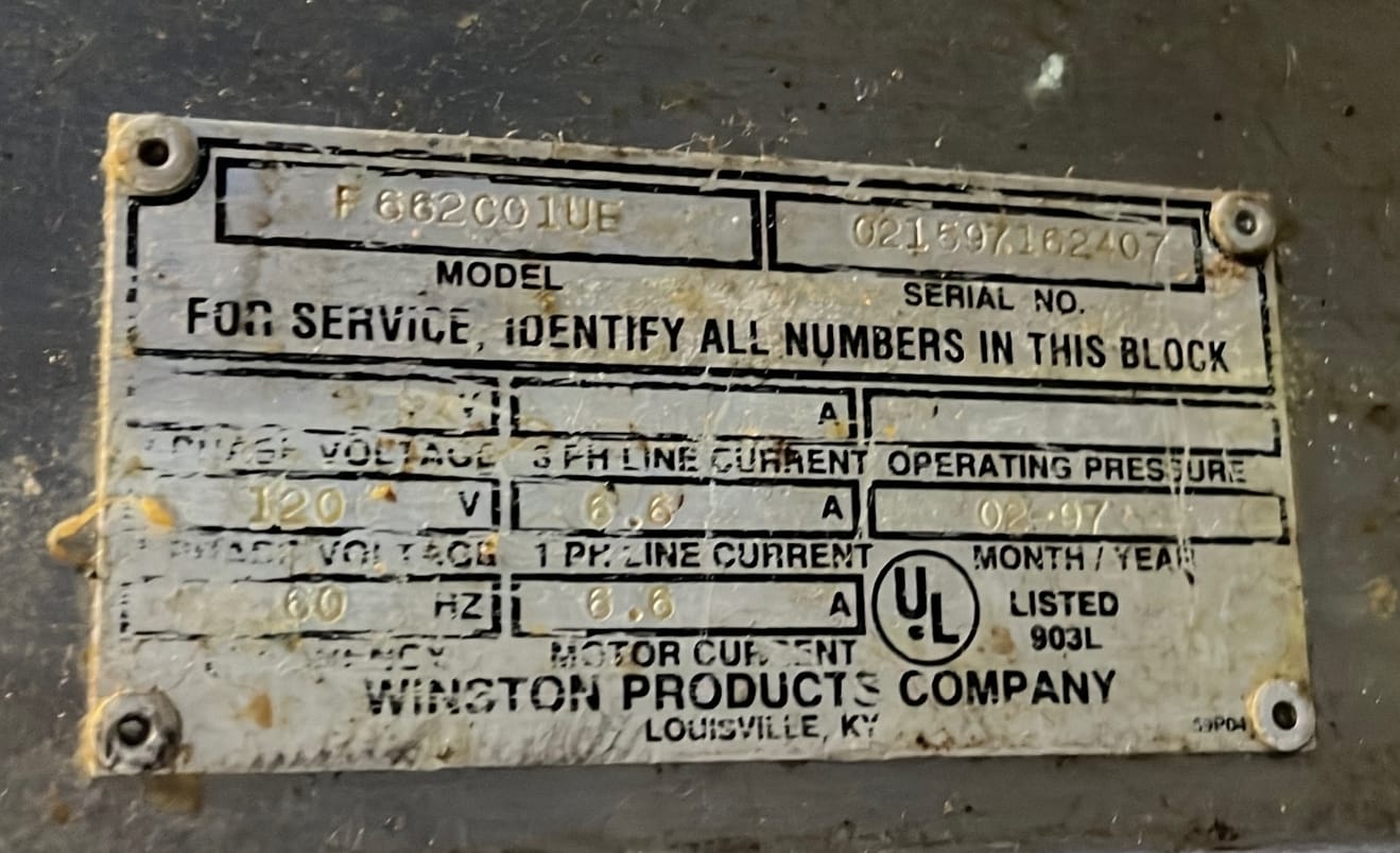 150 Winston Chicken pressure fryer model 8000 series 20x28x46