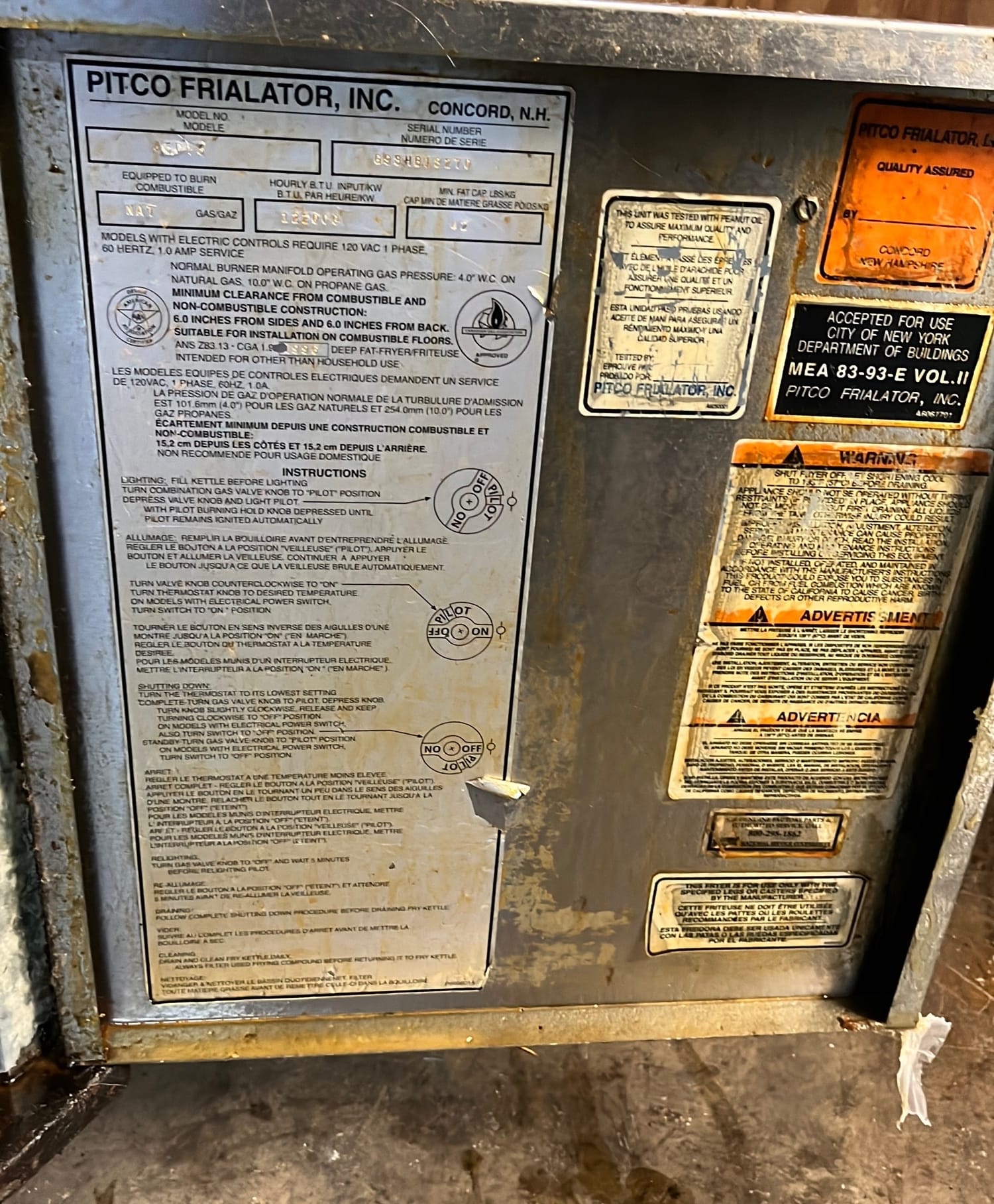 151 Winston Chicken pressure fryer model 8000 series 20x28x46