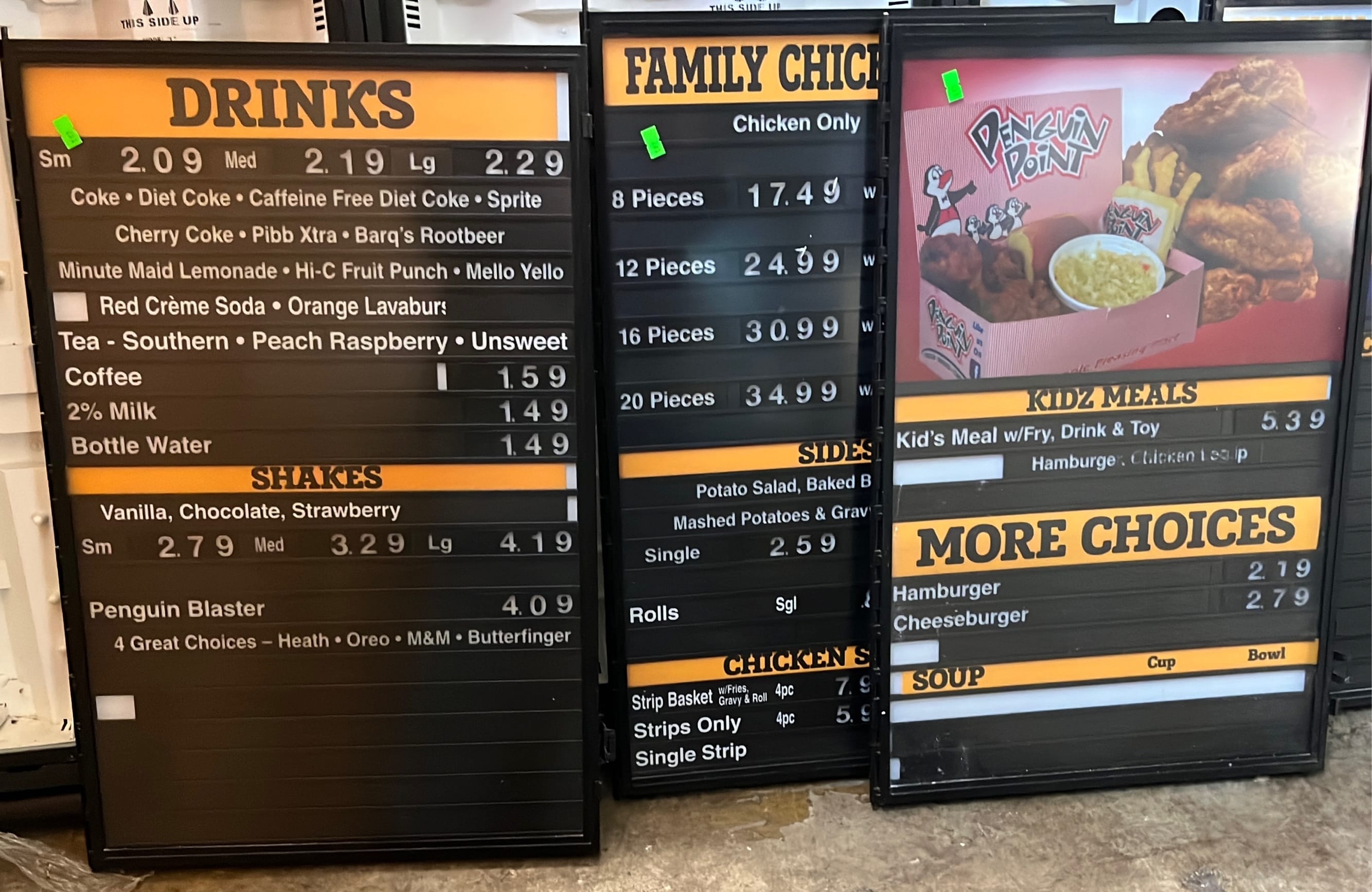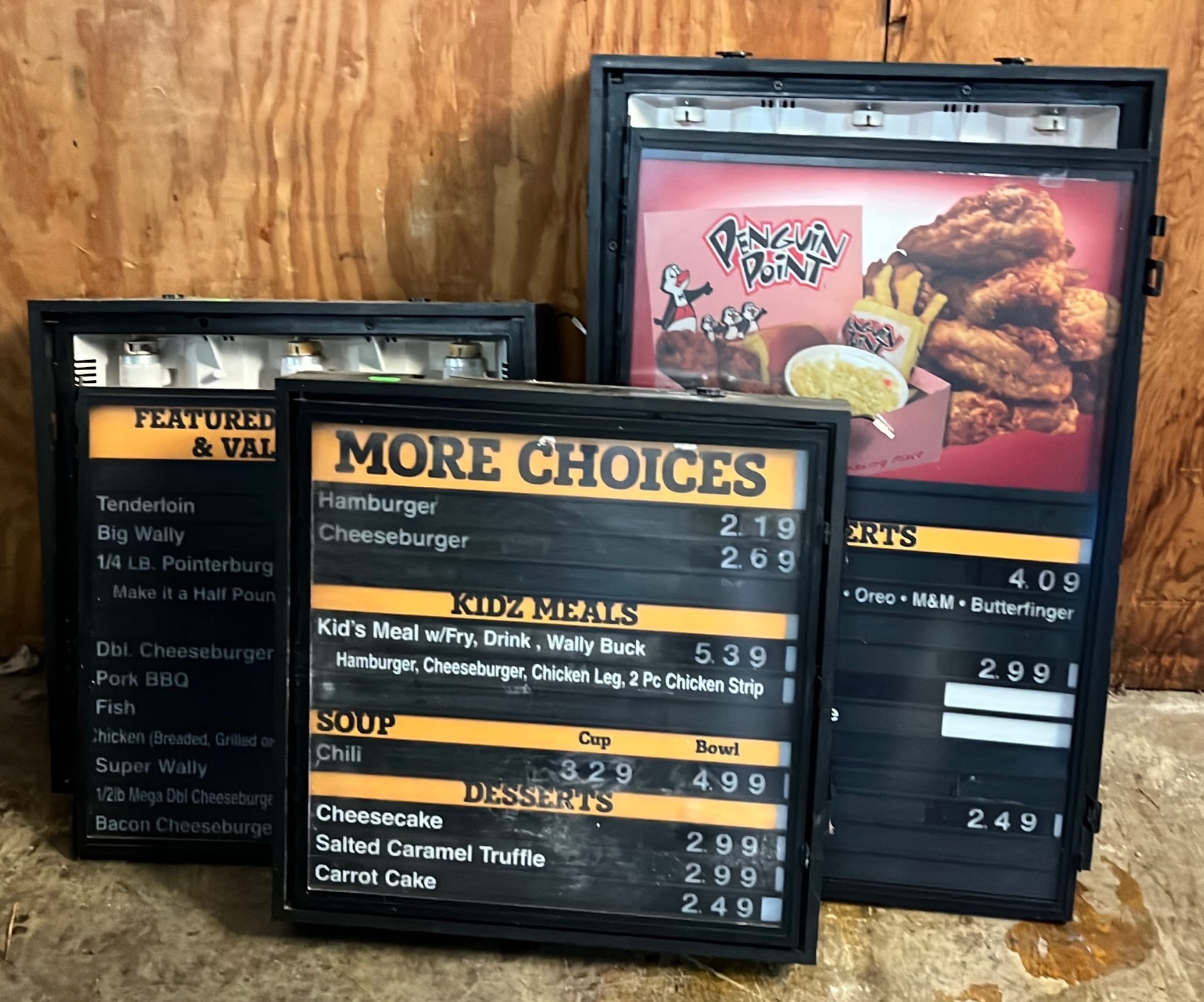 138 Interchangeable lighted menu boards 2-18x18, 1-18x27