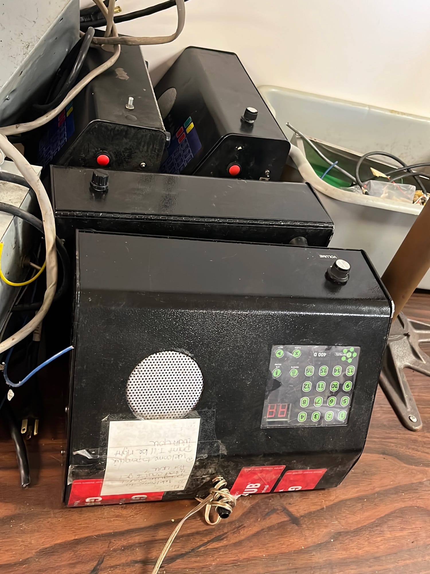 285 Drive up speaker boxes and power supplies as shown in pictures