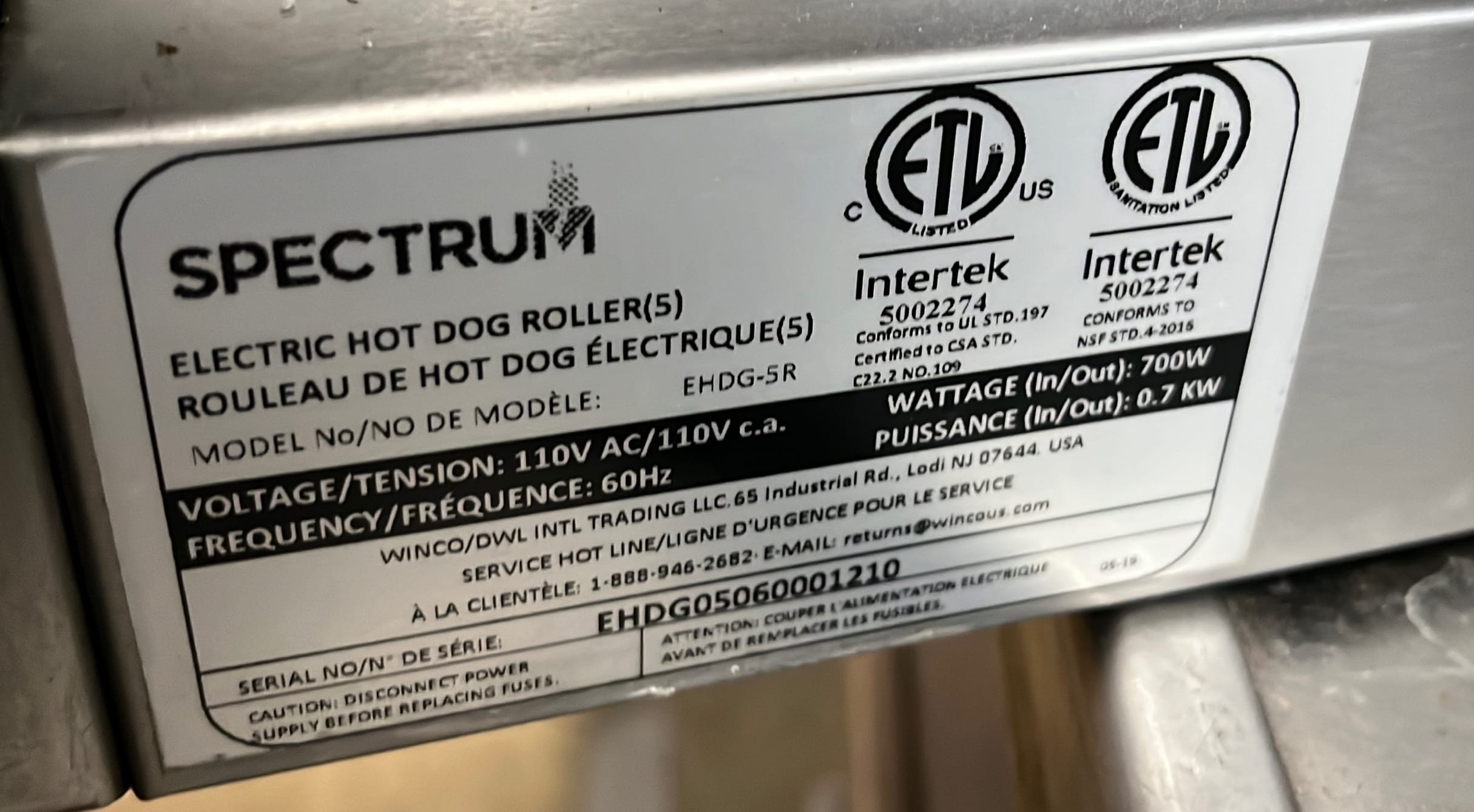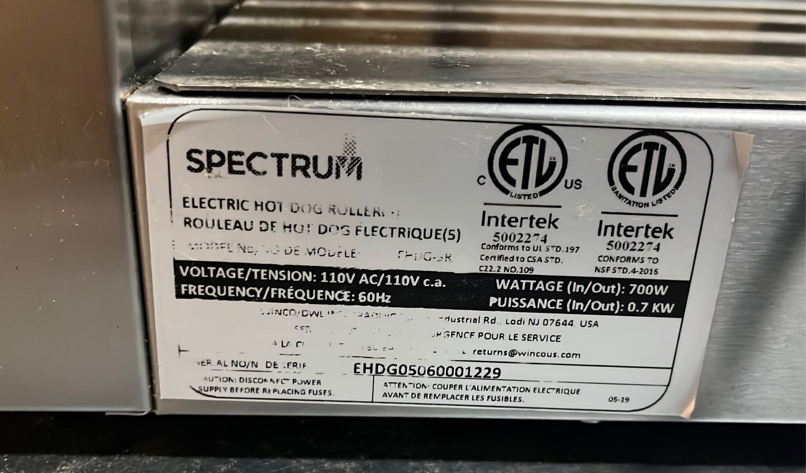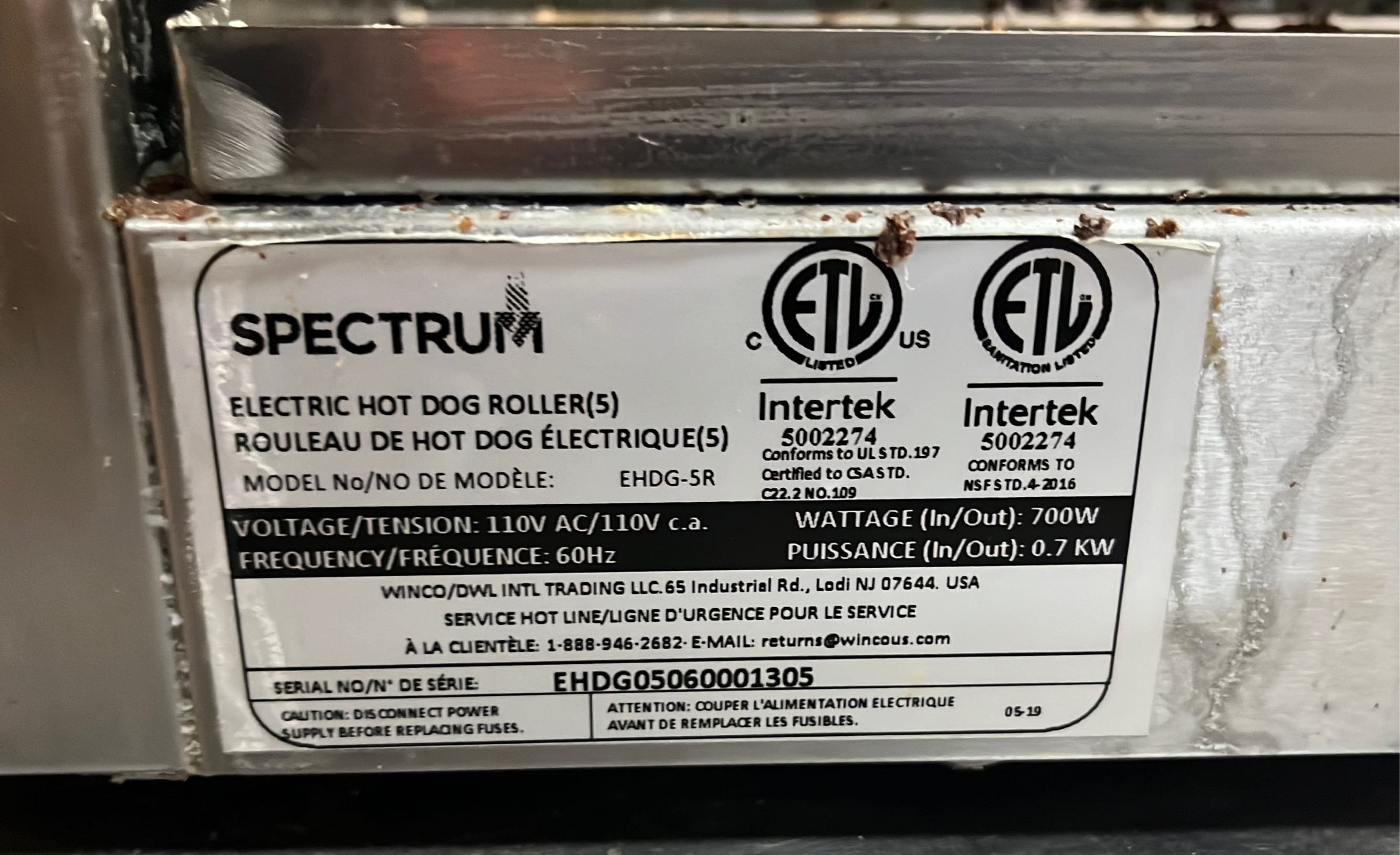 295 Spectrum Hot Dog Roller