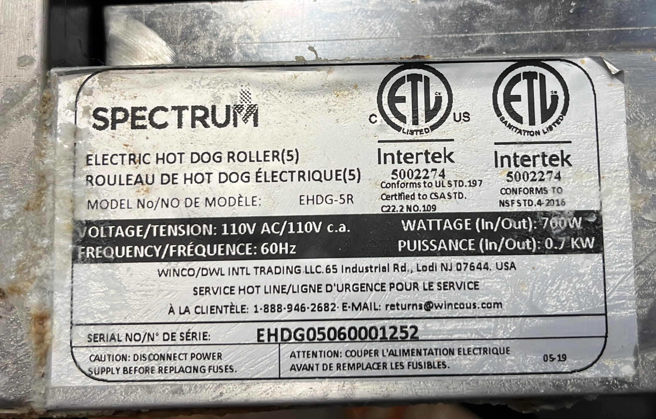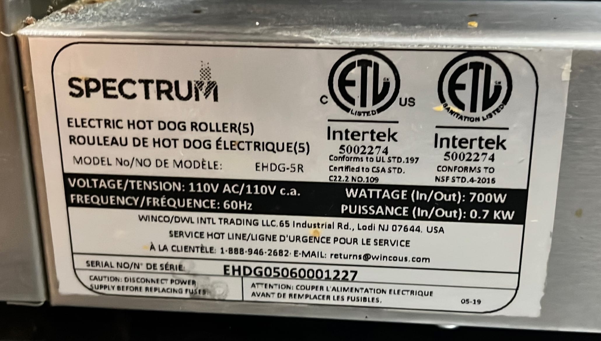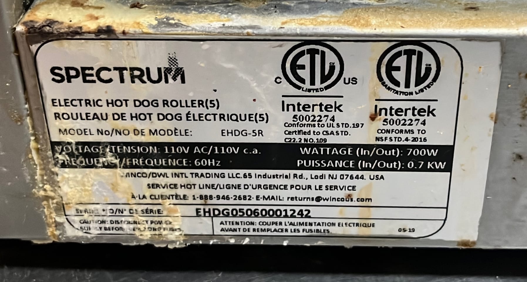 294 Spectrum Hot Dog Roller no cord