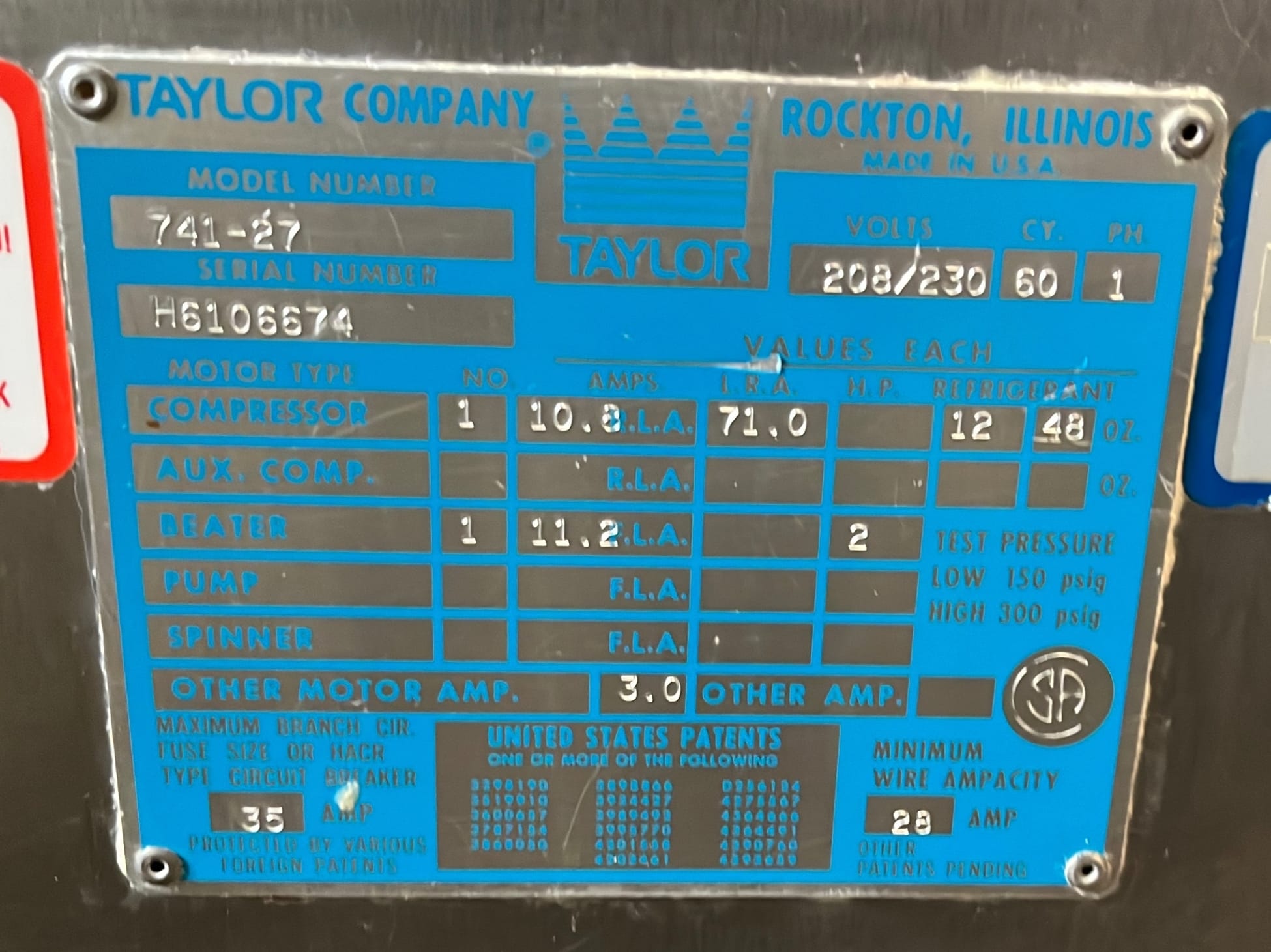 300 Taylor Ice cream machine model 741-27